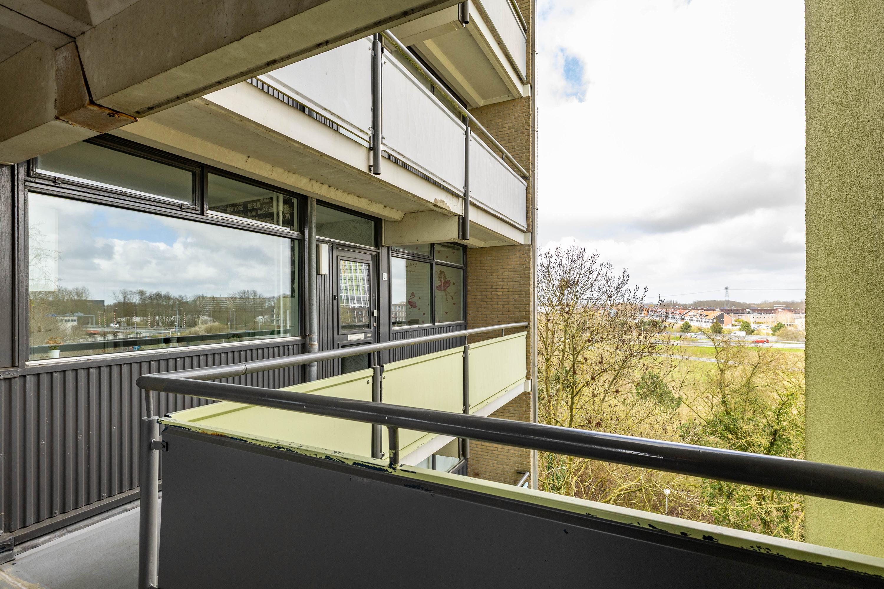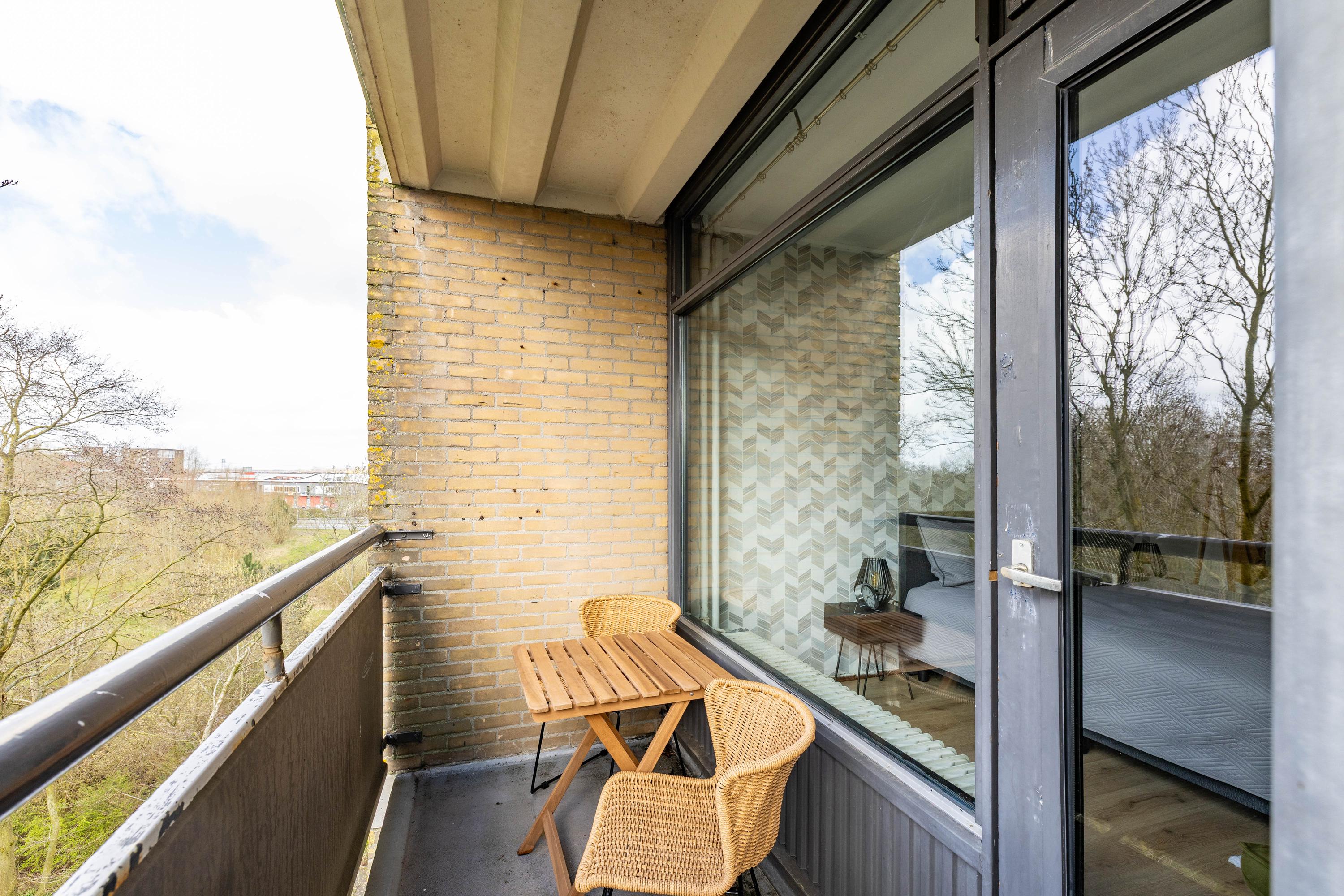 Vanuit de woning is het balkon op het westen bereikbaar: een fijne plek om in de middag en avond van de zon te genieten.
