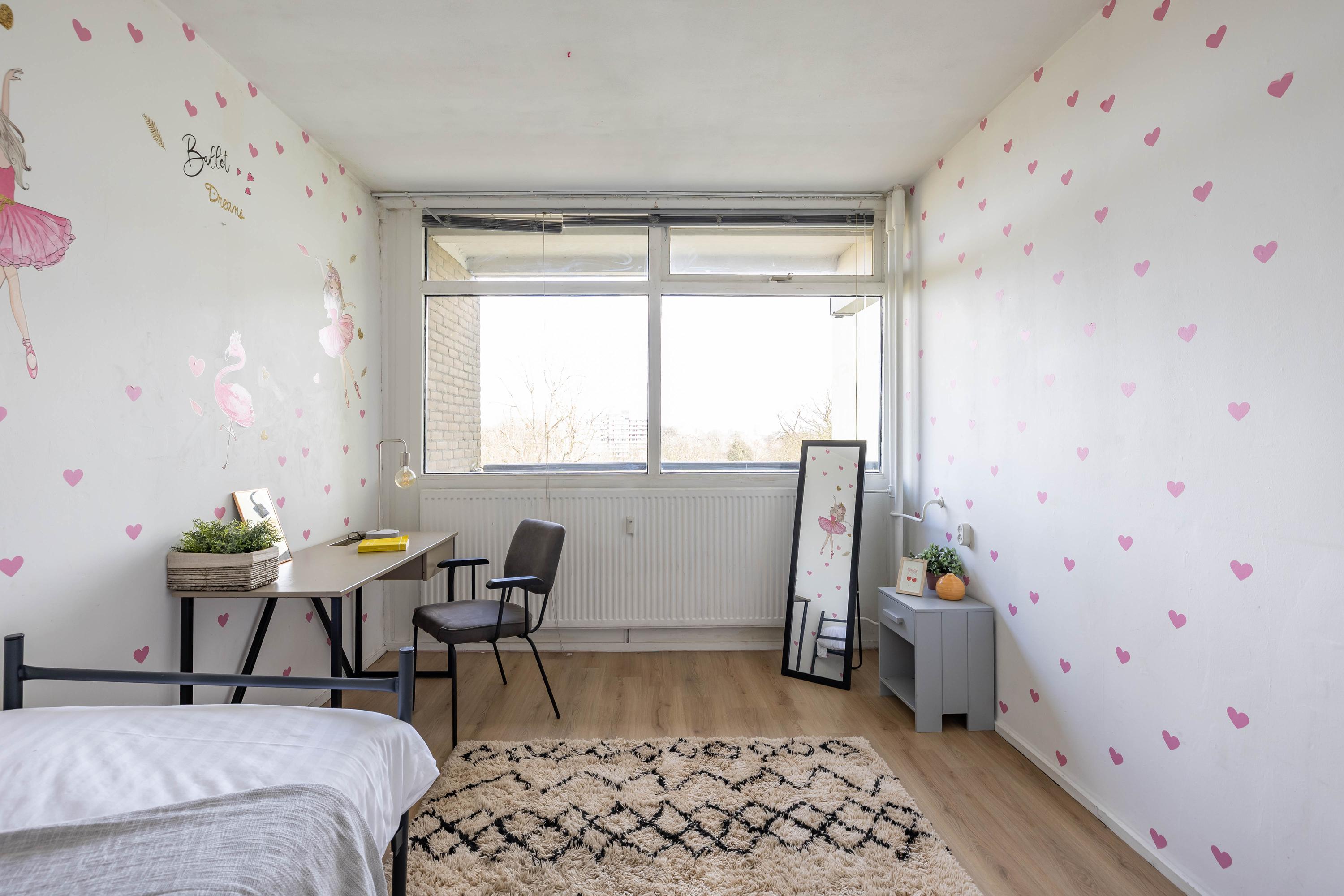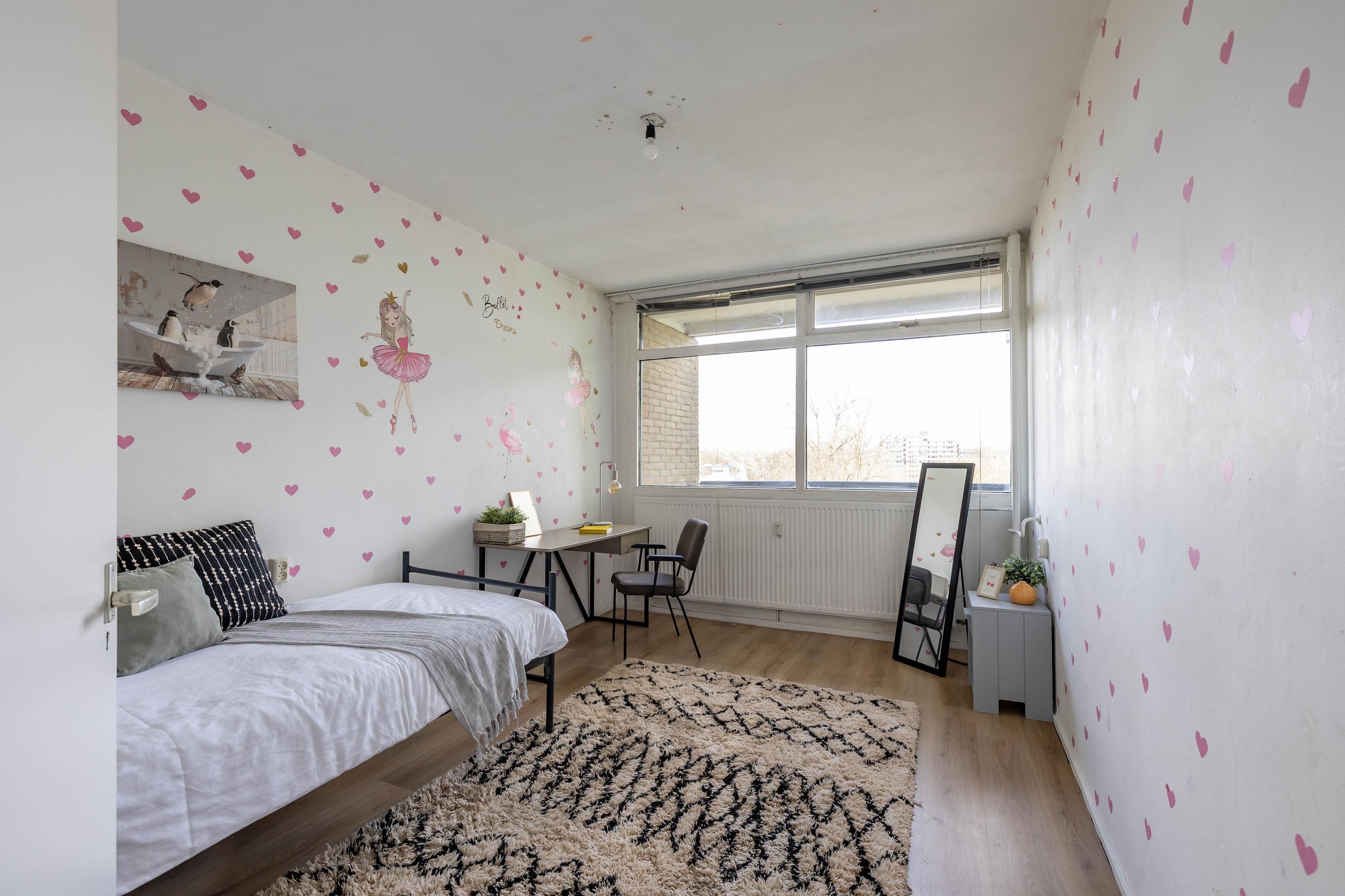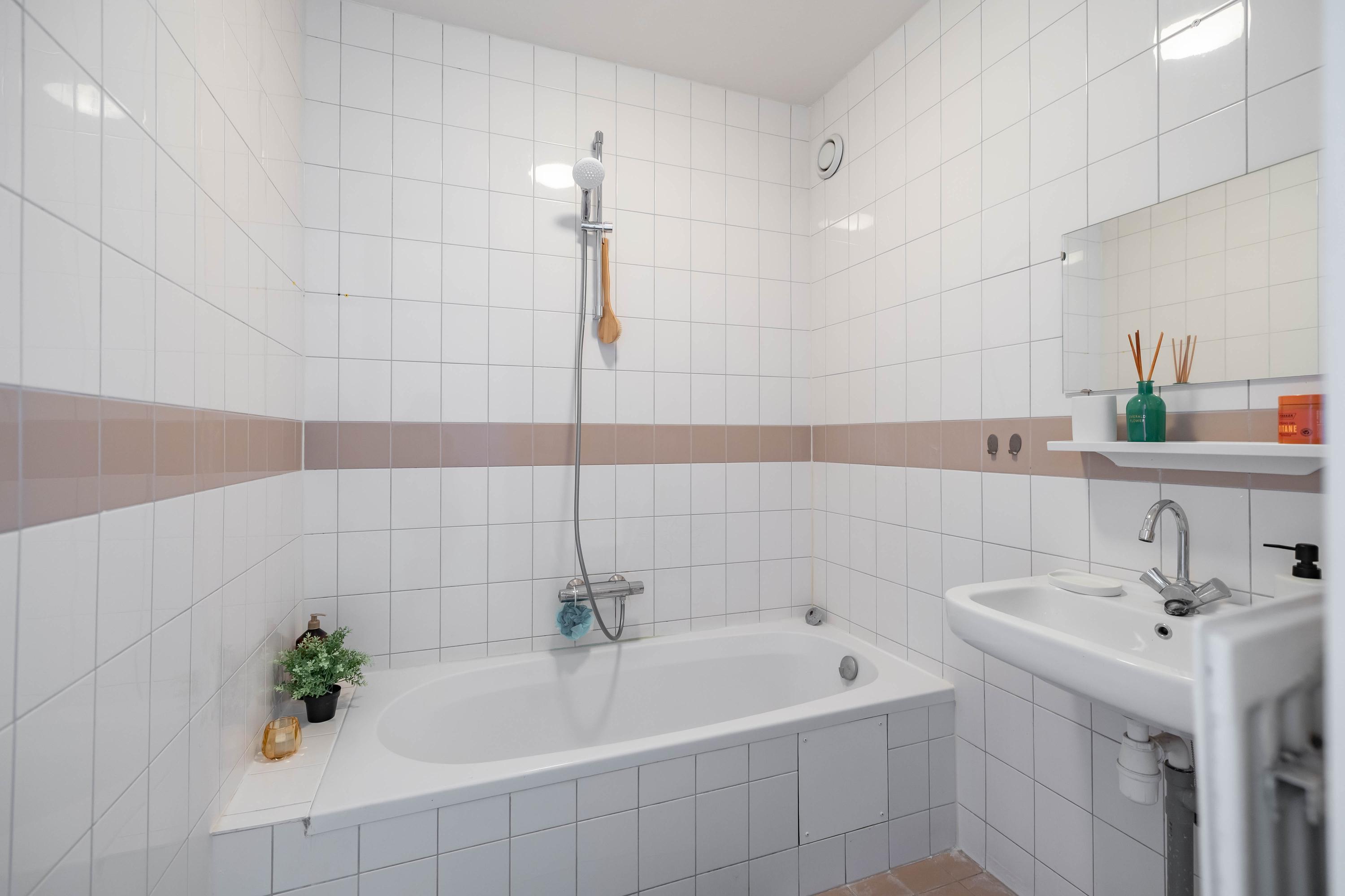 Het appartement beschikt over twee slaapkamers, beide van goed formaat en flexibel in gebruik – bijvoorbeeld als werk- of logeerkamer. De badkamer is eveneens eenvoudig en voorzien van de basisvoorzieningen.