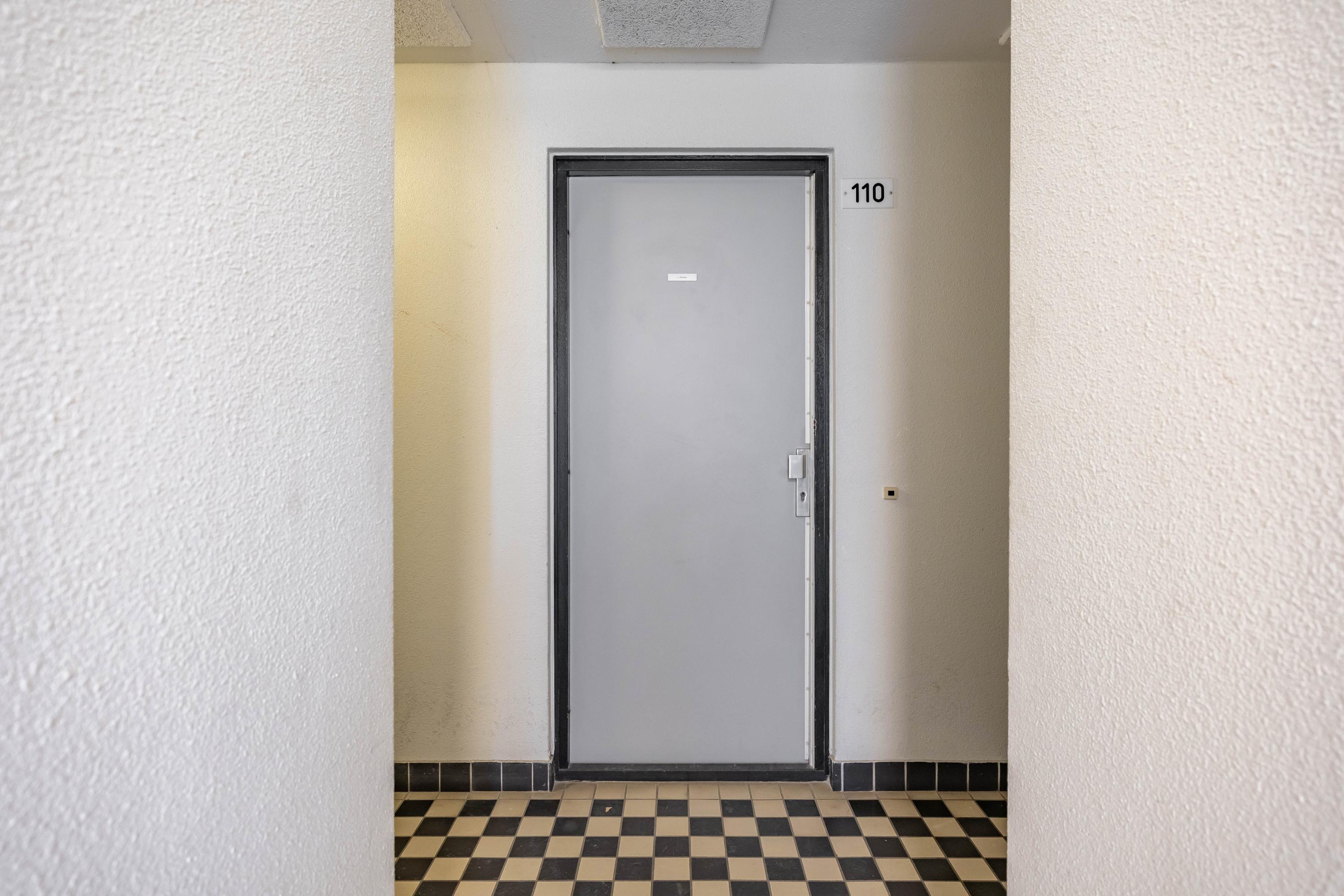 Indeling: entree, lift naar eerste woonlaag, entree appartement, gang met toilet, badkamer, twee slaapkamers, keuken, woonkamer met toegang tot balkon. Op de begane grond is een fietsenberging.