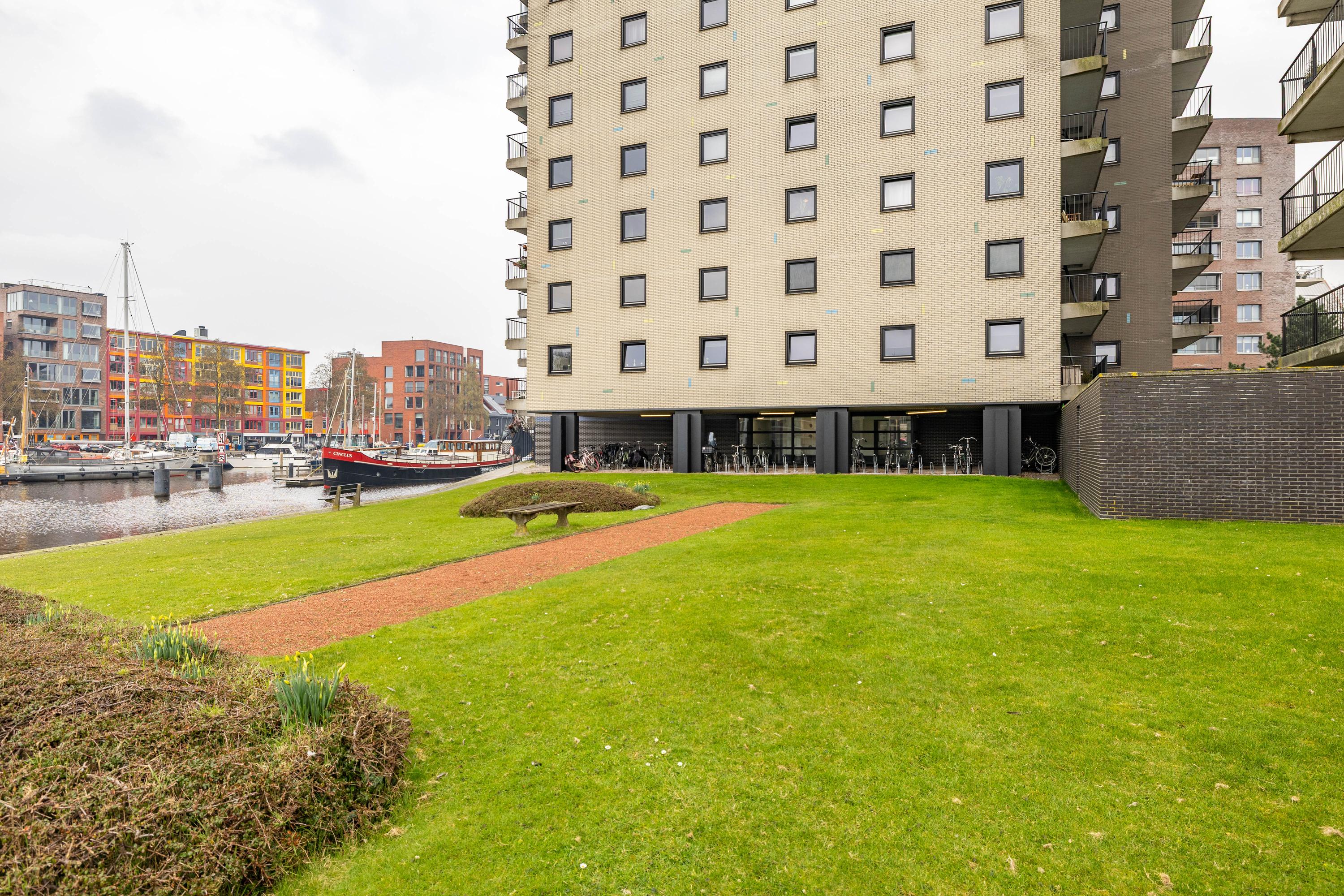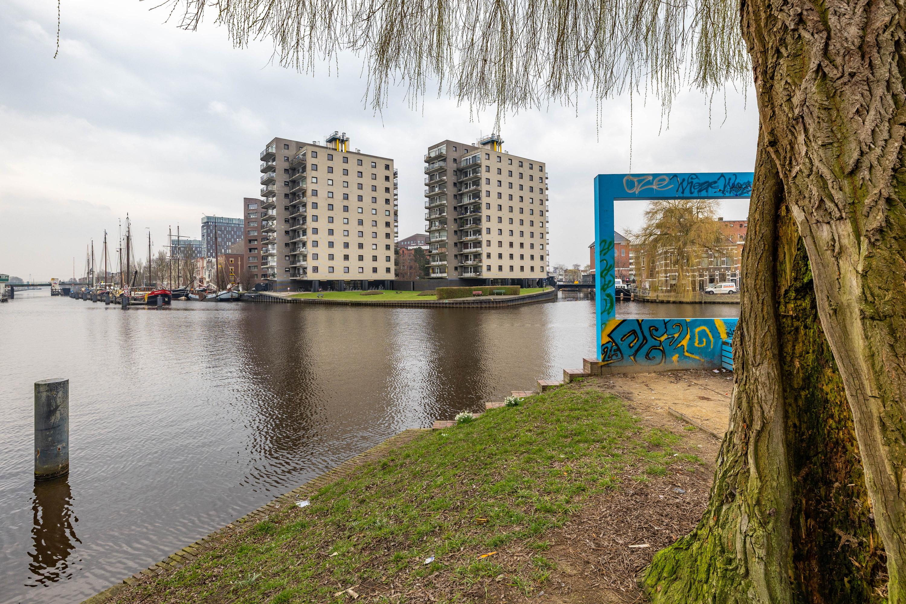 Dankzij de unieke centrale ligging in combinatie met het prachtige uitzicht staat dit appartement garant voor optimaal woonplezier. Het appartement maakt onderdeel uit van De Brinkflats, in de jaren '80 gerealiseerd naar ontwerp van architect Rem Koolhaas. Beide torens liggen aan een kruispunt van waterwegen. De bewoners maken volop gebruik van de gemeenschappelijke groenstrook aan de kade van het winschoterdiep/eemskanaal.
