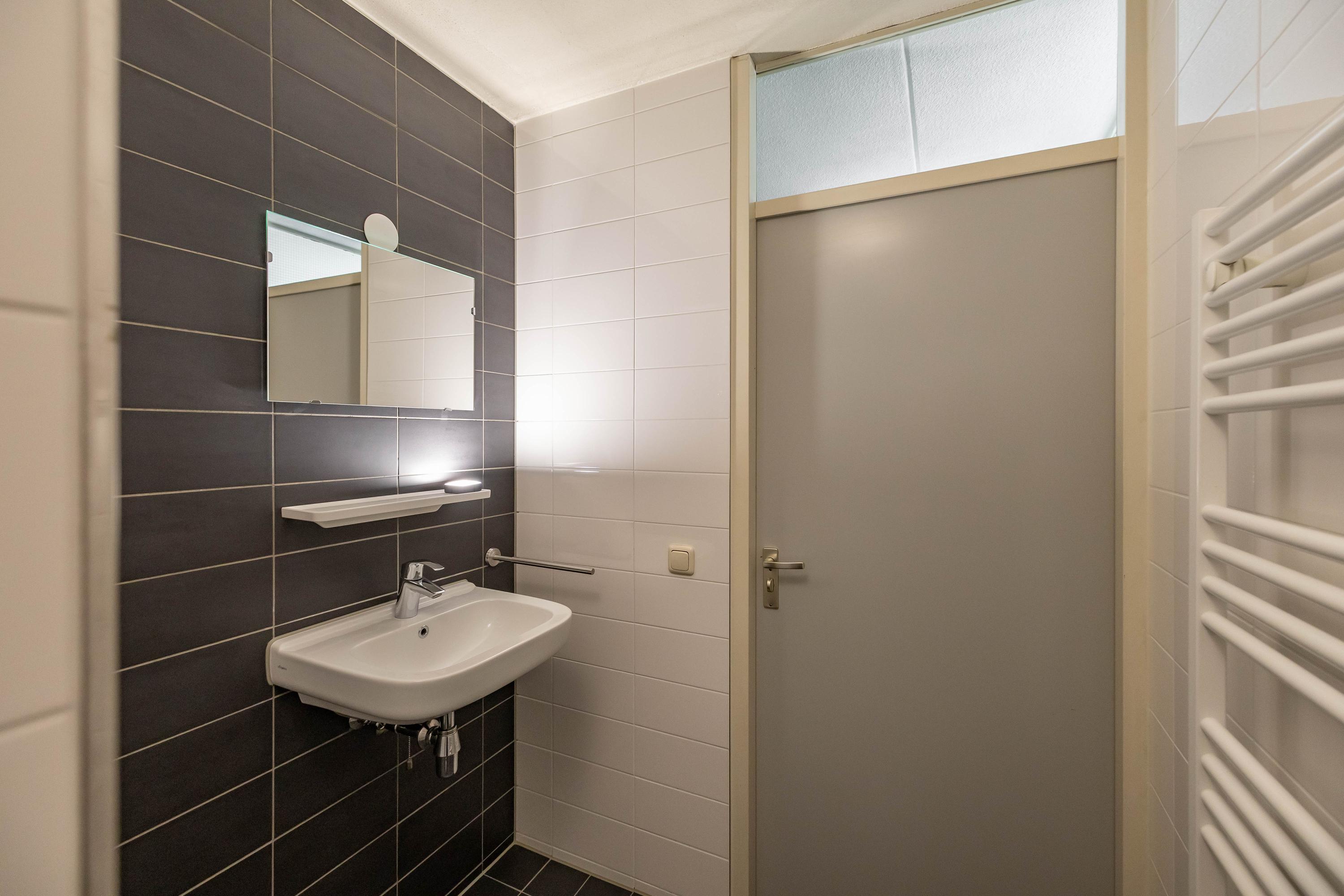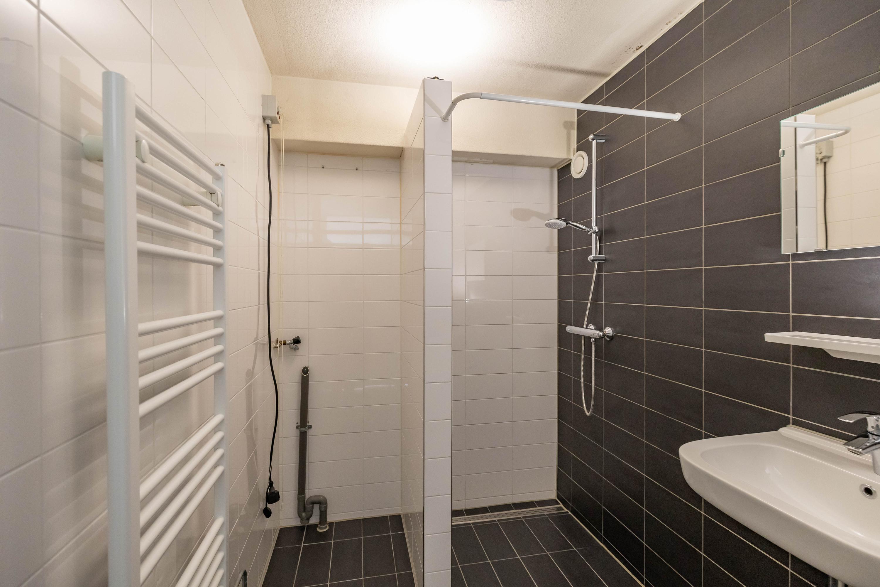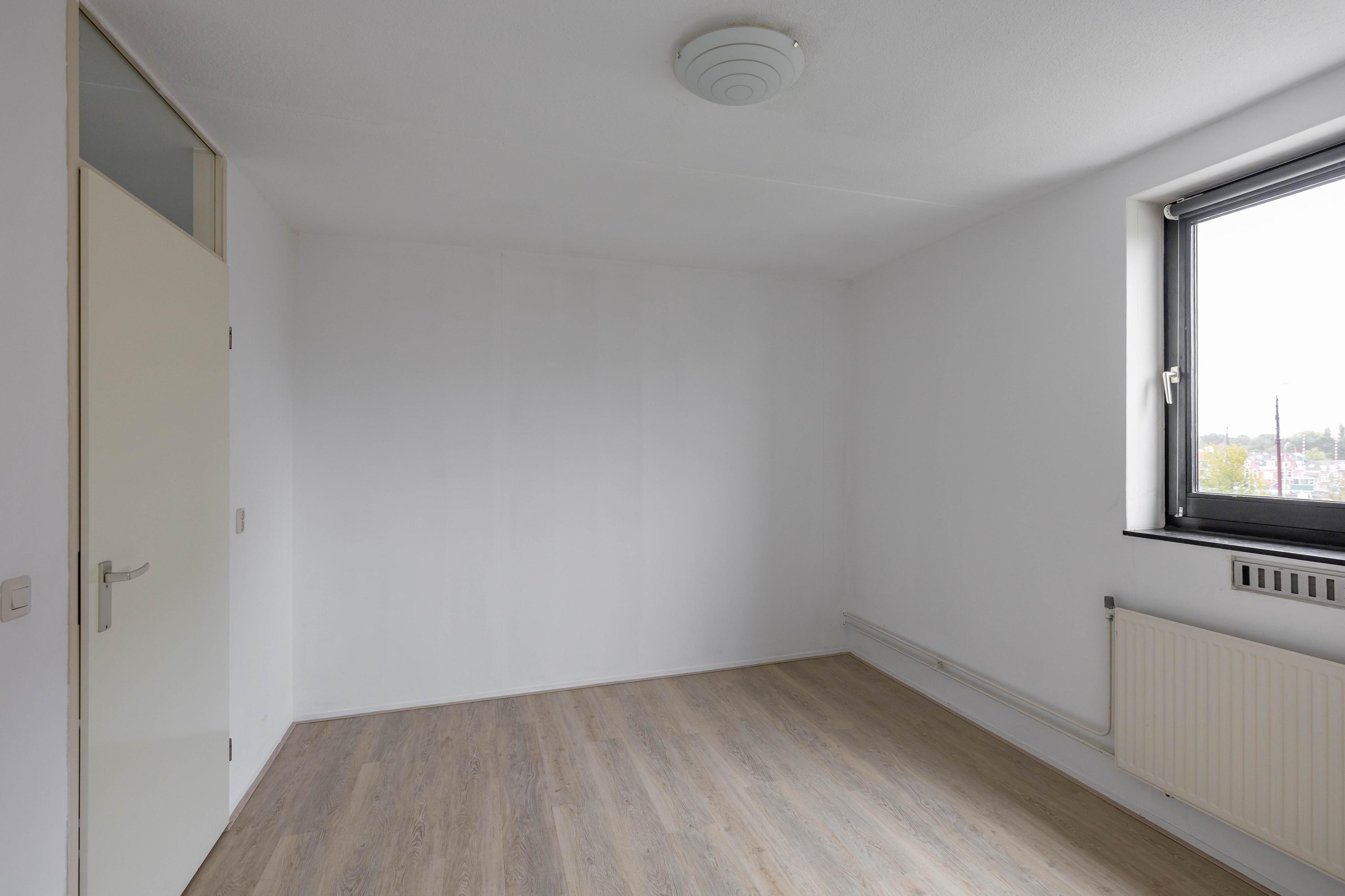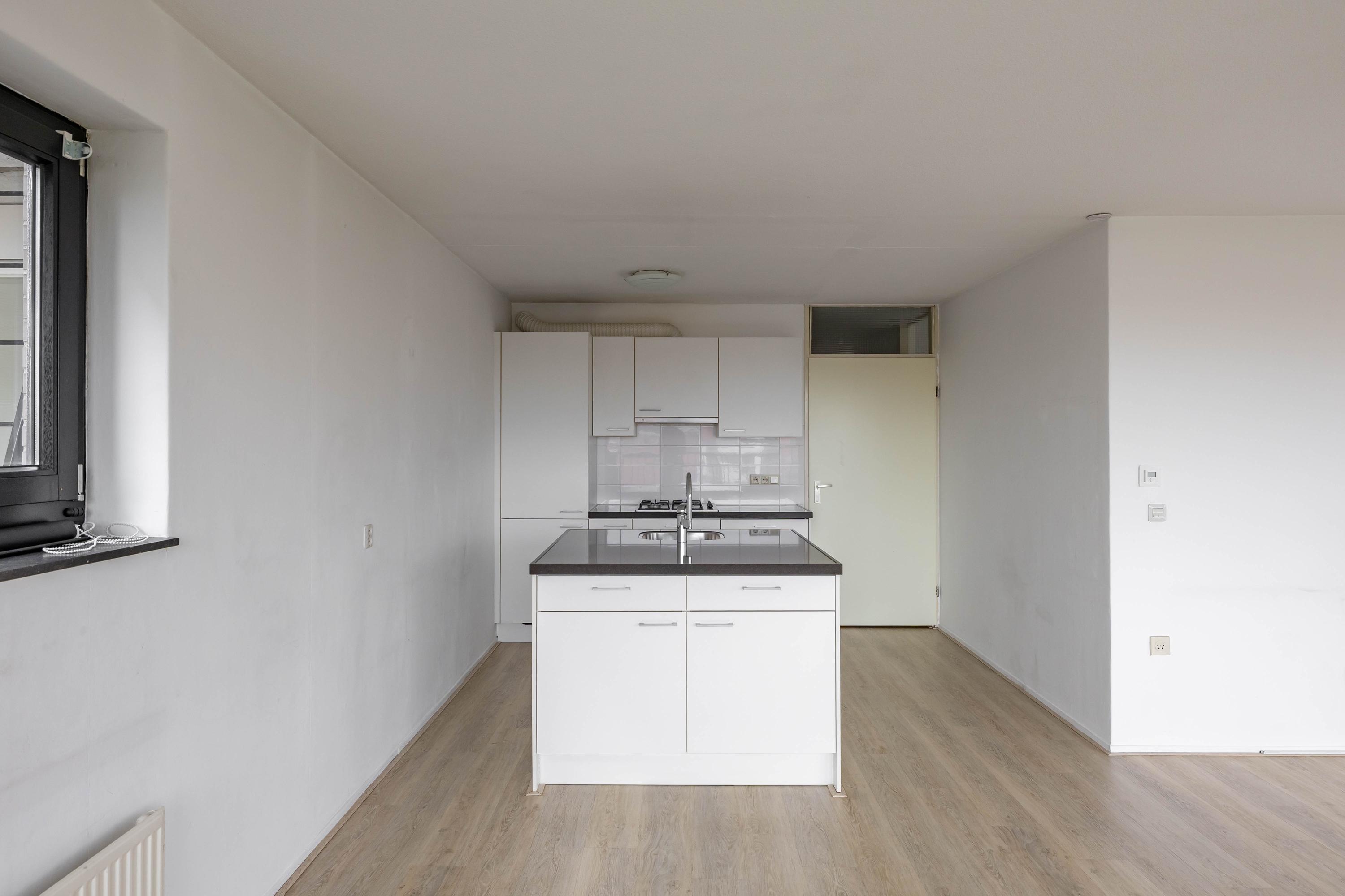 Indeling: entree, lift naar vijfde woonlaag, entree appartement, gang met toilet, badkamer, twee slaapkamers woonkamer met open keuken, toegang tot balkon. Op de begane grond is een fietsenberging.