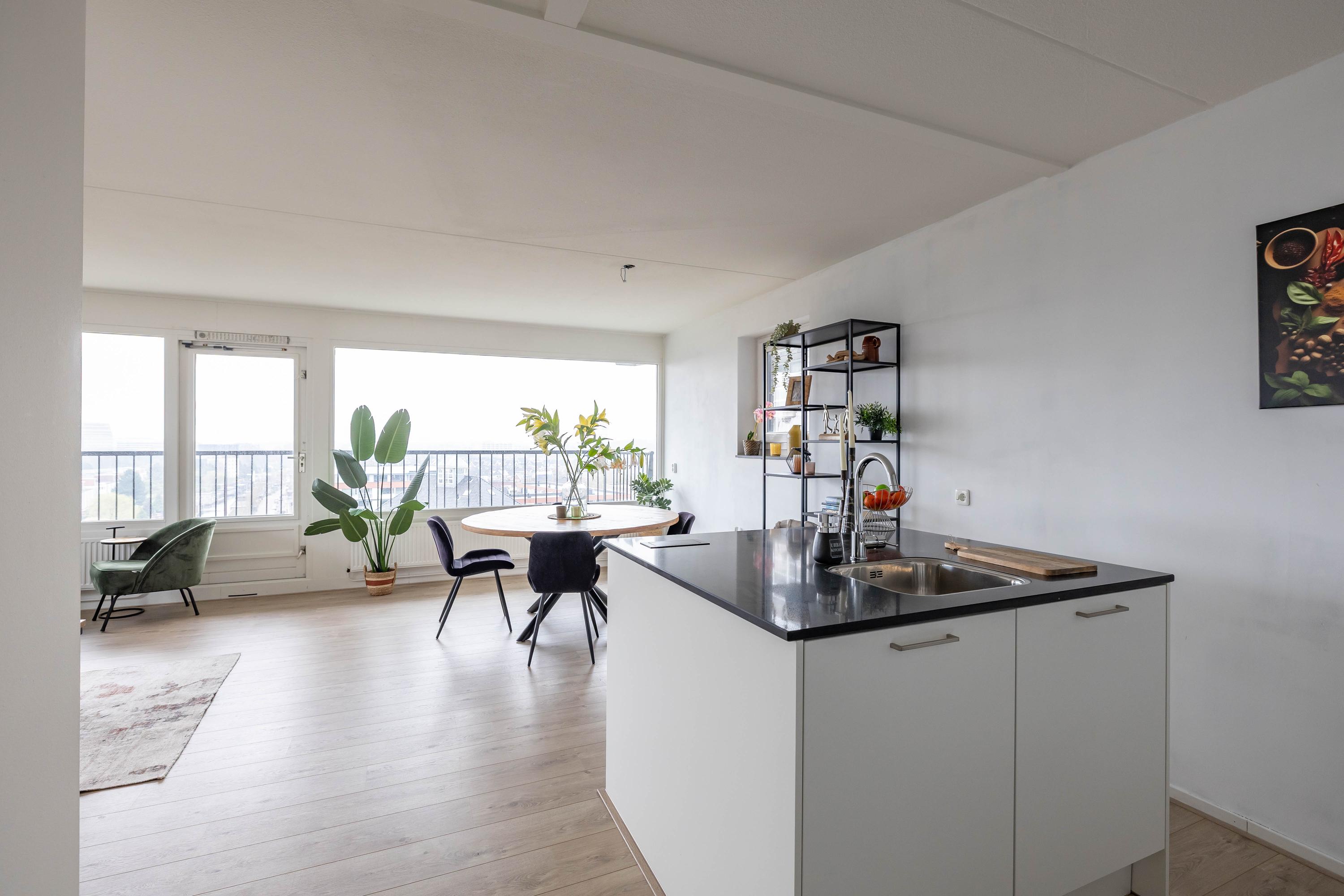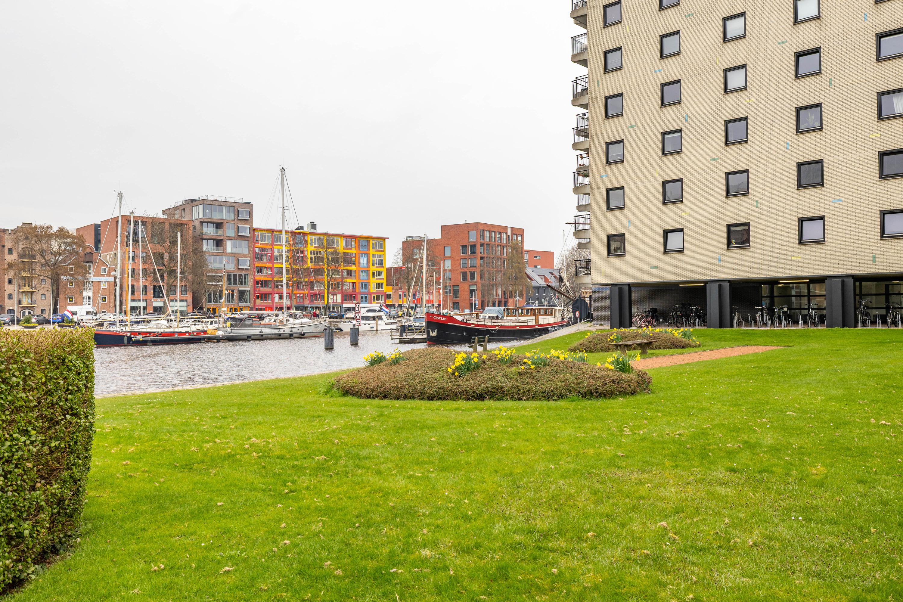 Dankzij de unieke centrale ligging in combinatie met het prachtige uitzicht staat dit appartement garant voor optimaal woonplezier. Het appartement maakt onderdeel uit van De Brinkflats, in de jaren '80 gerealiseerd naar ontwerp van architect Rem Koolhaas. Beide torens liggen aan een kruispunt van waterwegen. De bewoners maken volop gebruik van de gemeenschappelijke groenstrook aan de kade van het winschoterdiep/eemskanaal.