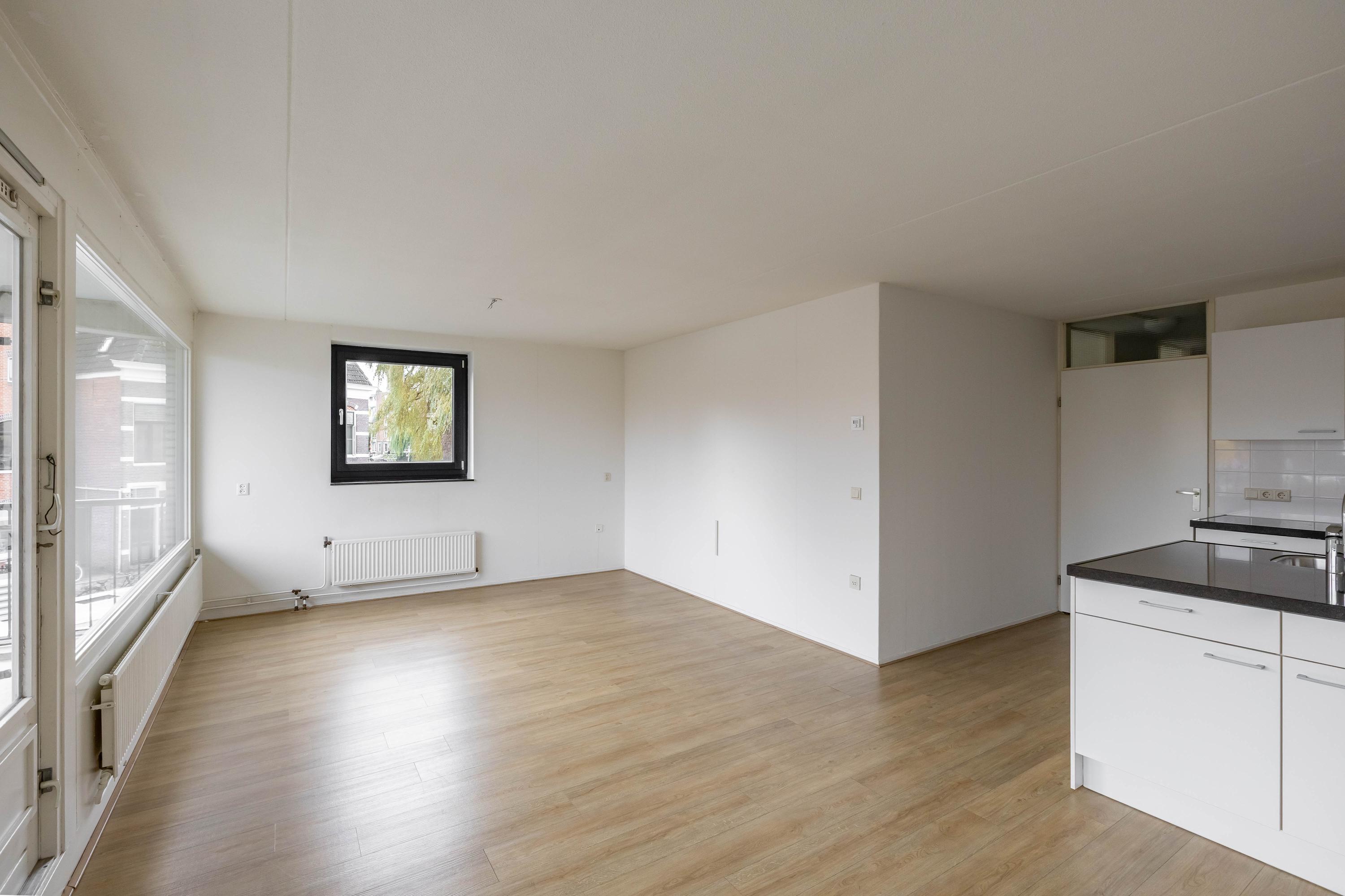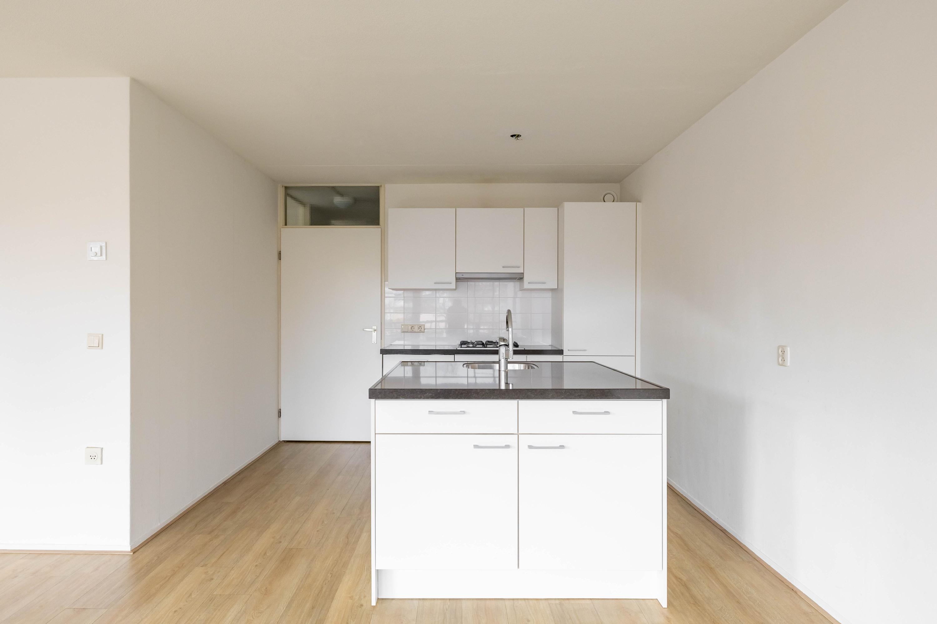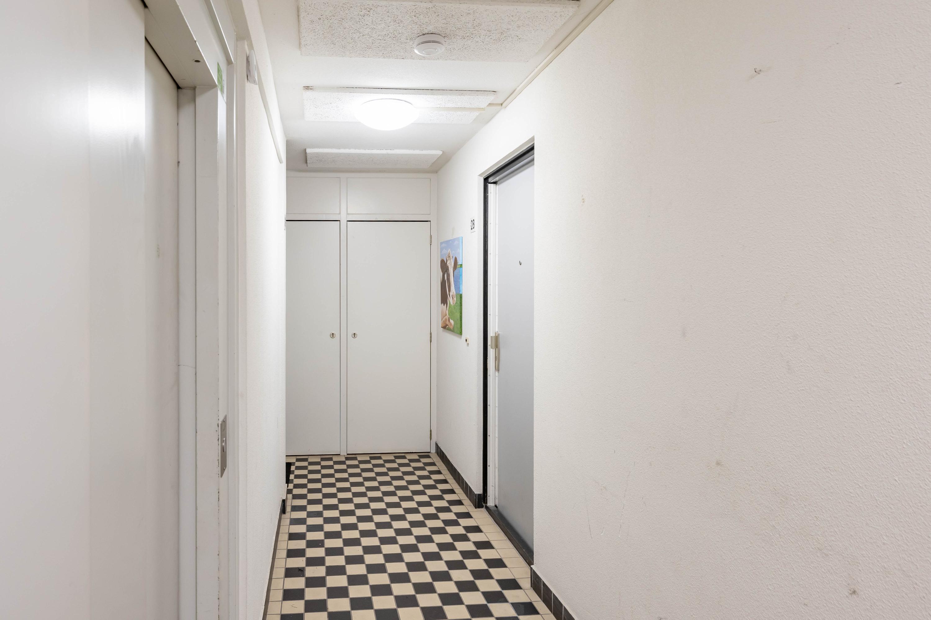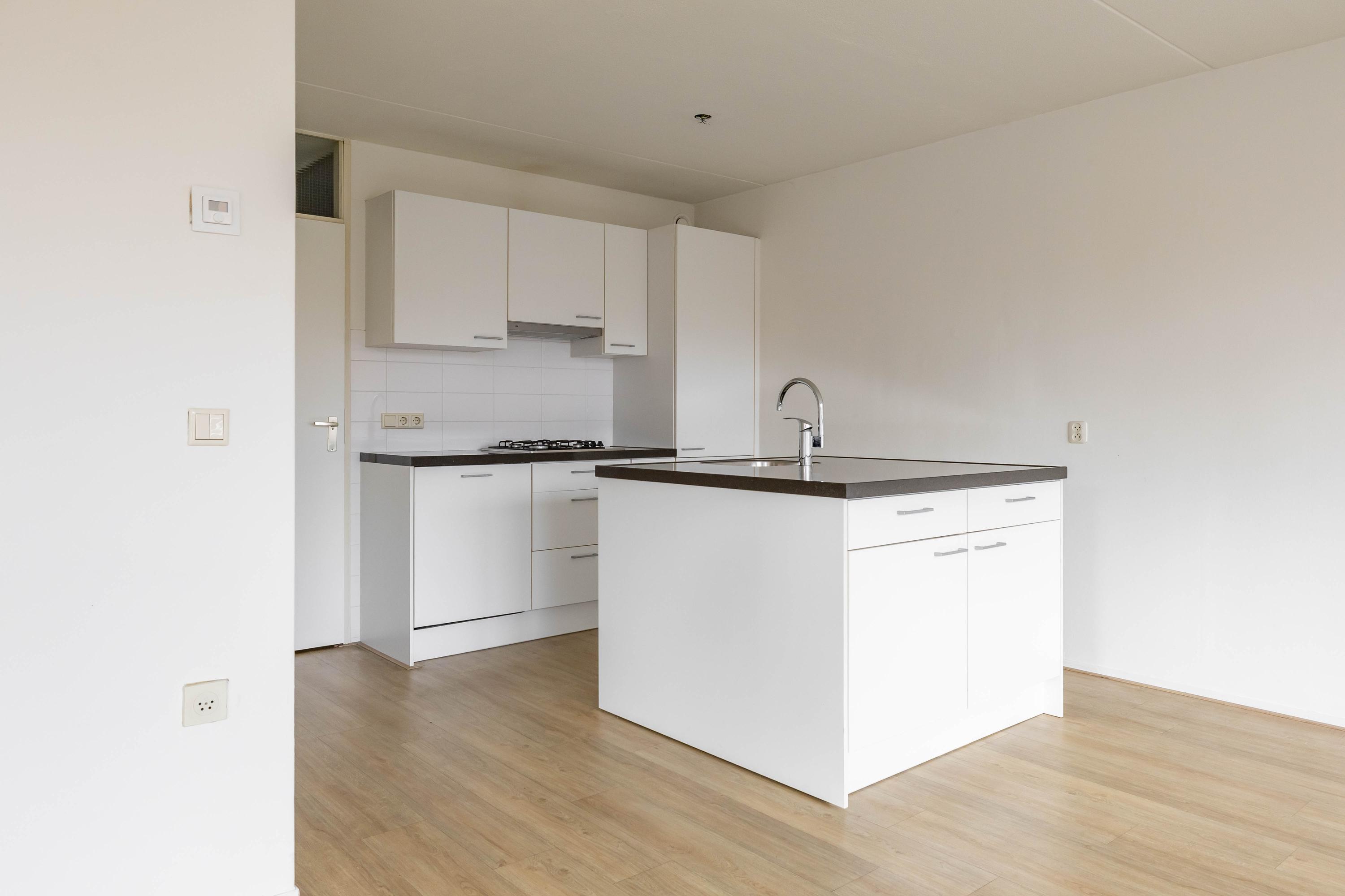 Indeling: entree, trap of lift naar de eerste woonlaag, entree appartement, gang met toilet, badkamer, twee slaapkamers woonkamer met open keuken, toegang tot balkon. Op de begane grond is een fietsenberging.