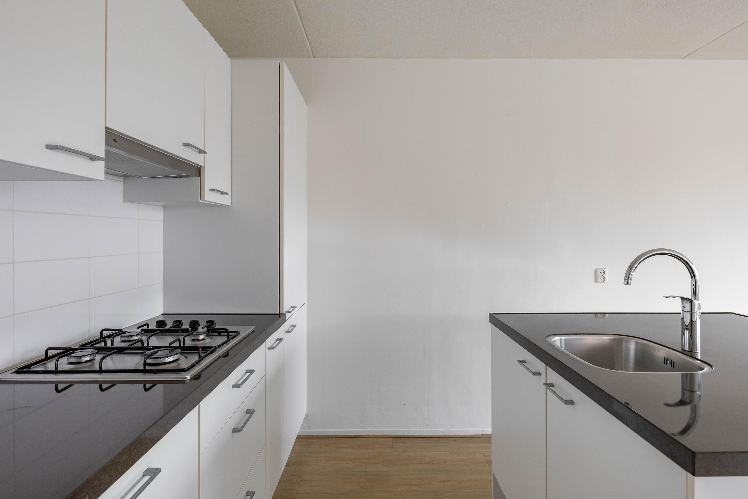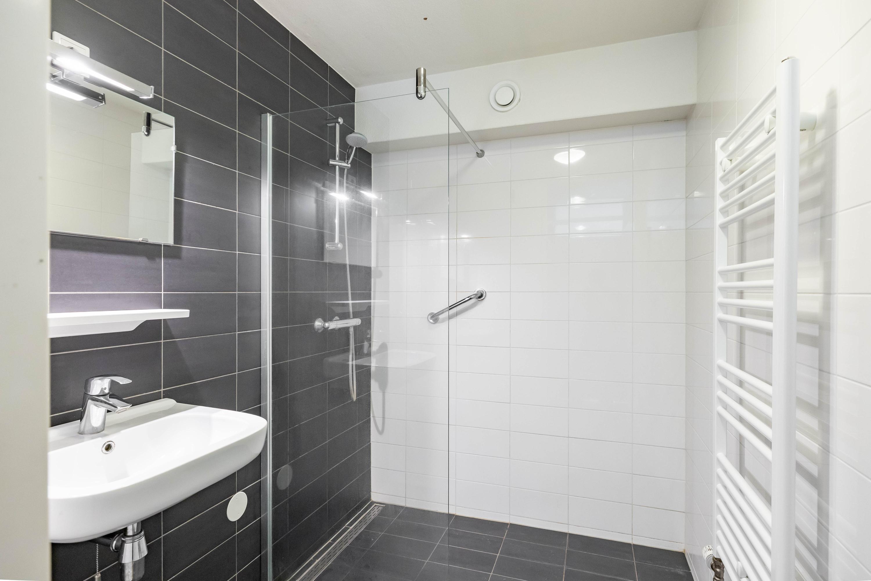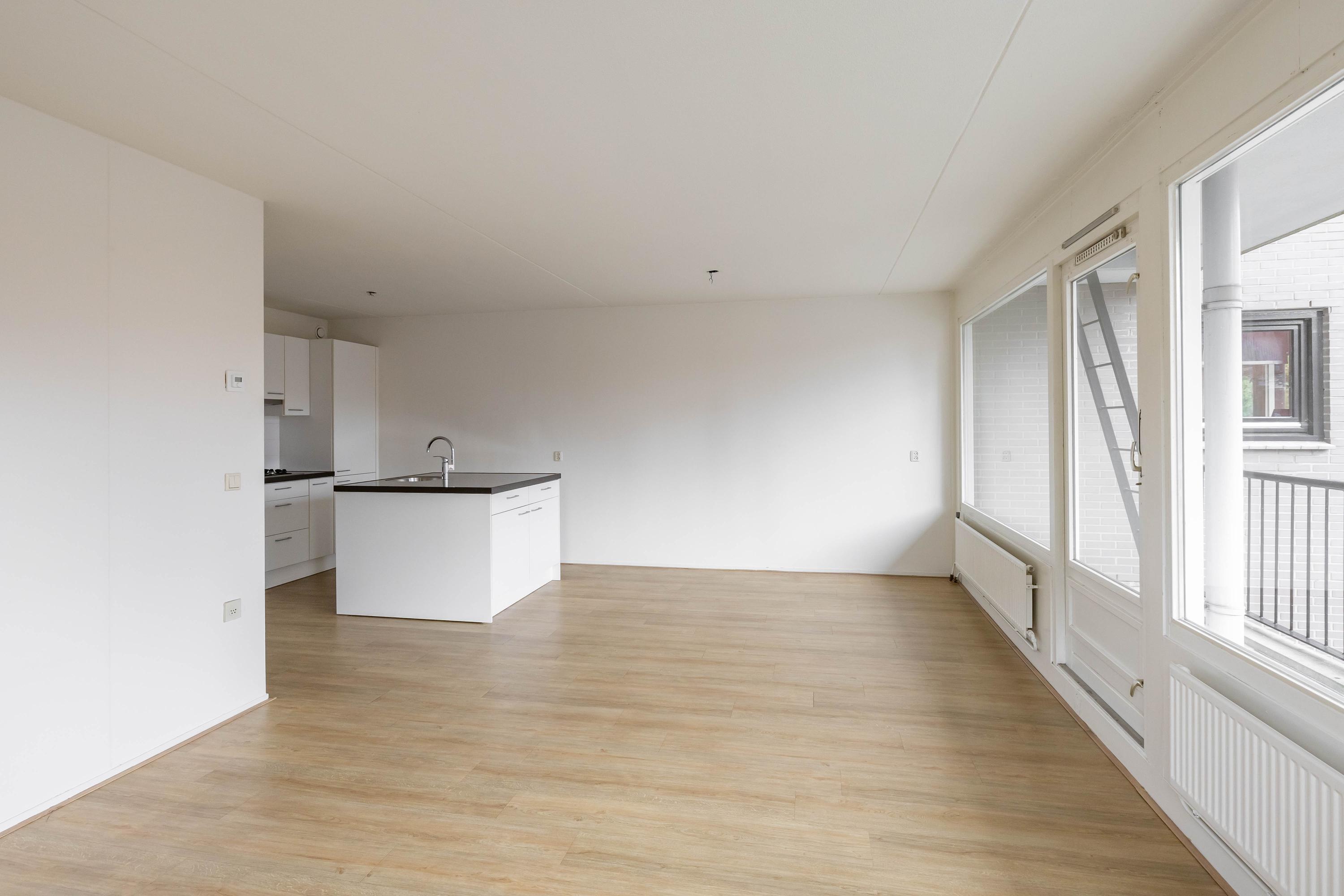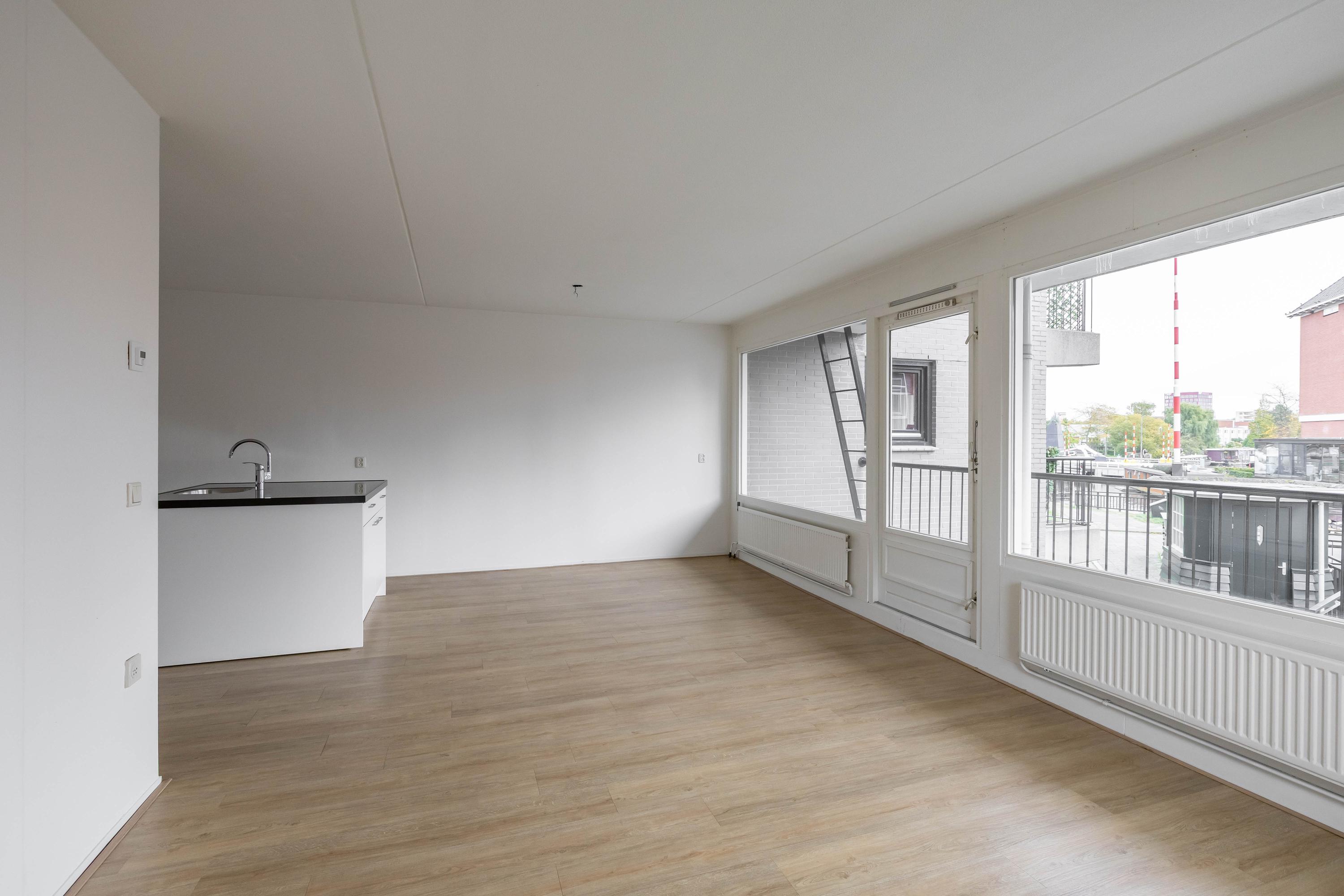 Indeling: entree, trap of lift naar de eerste woonlaag, entree appartement, gang met toilet, badkamer, twee slaapkamers woonkamer met open keuken, toegang tot balkon. Op de begane grond is een fietsenberging.