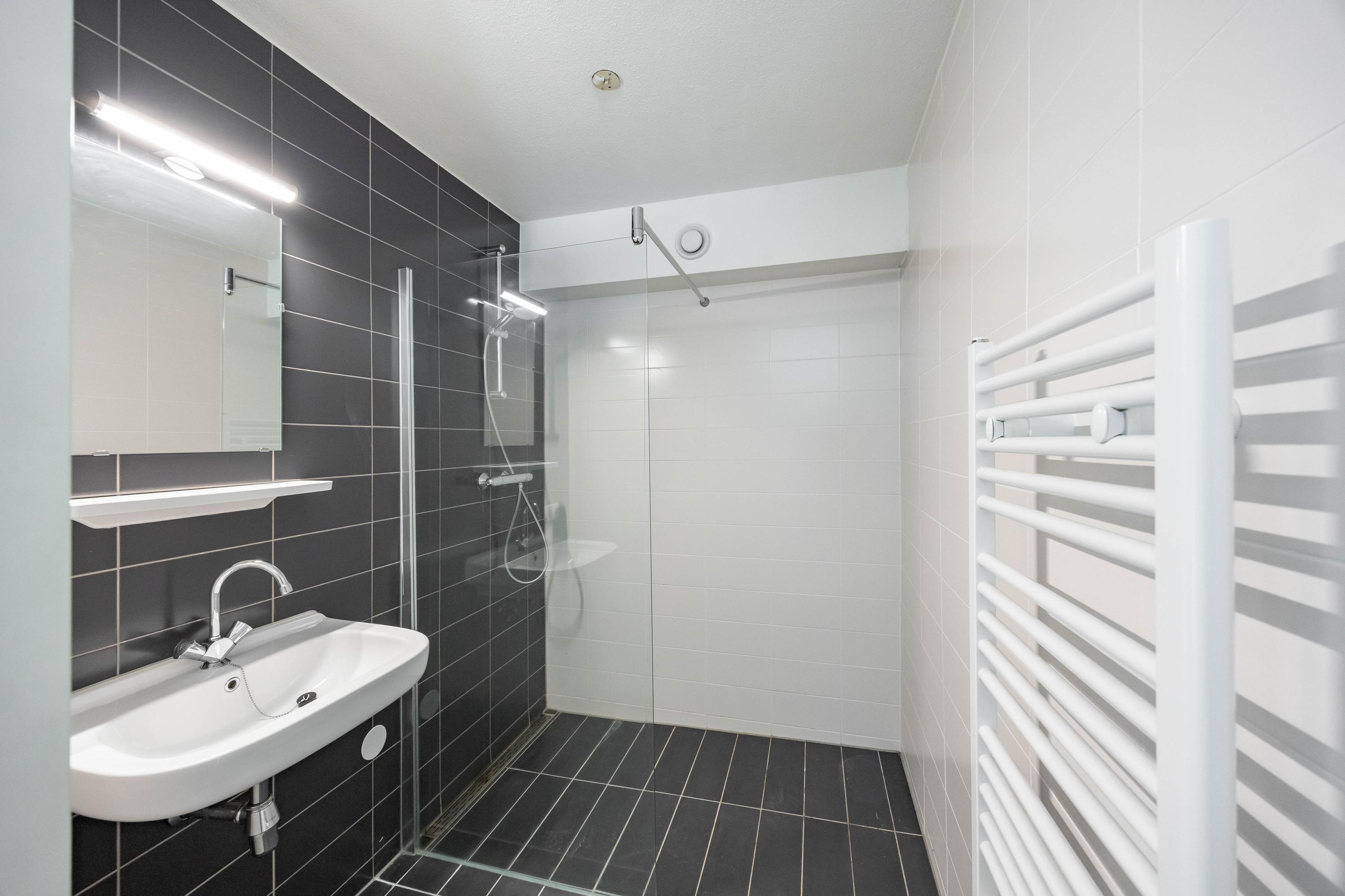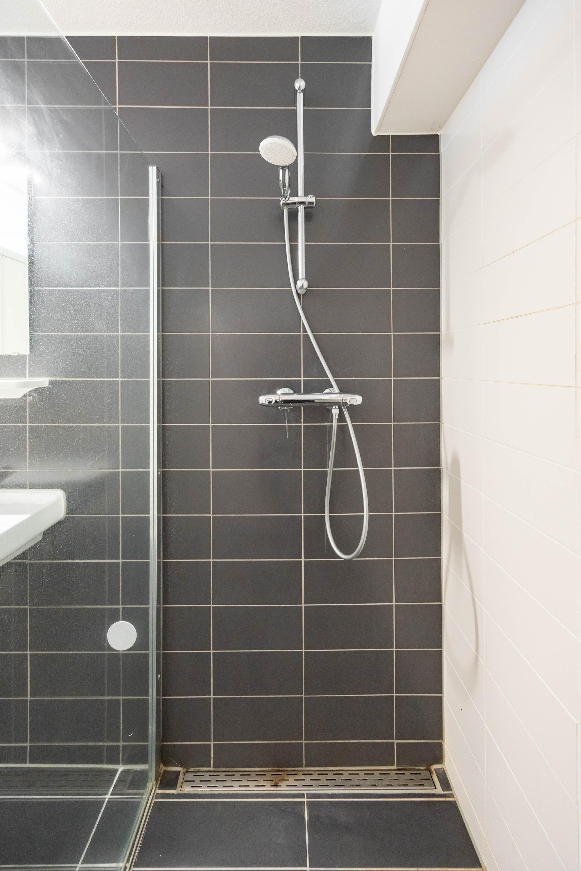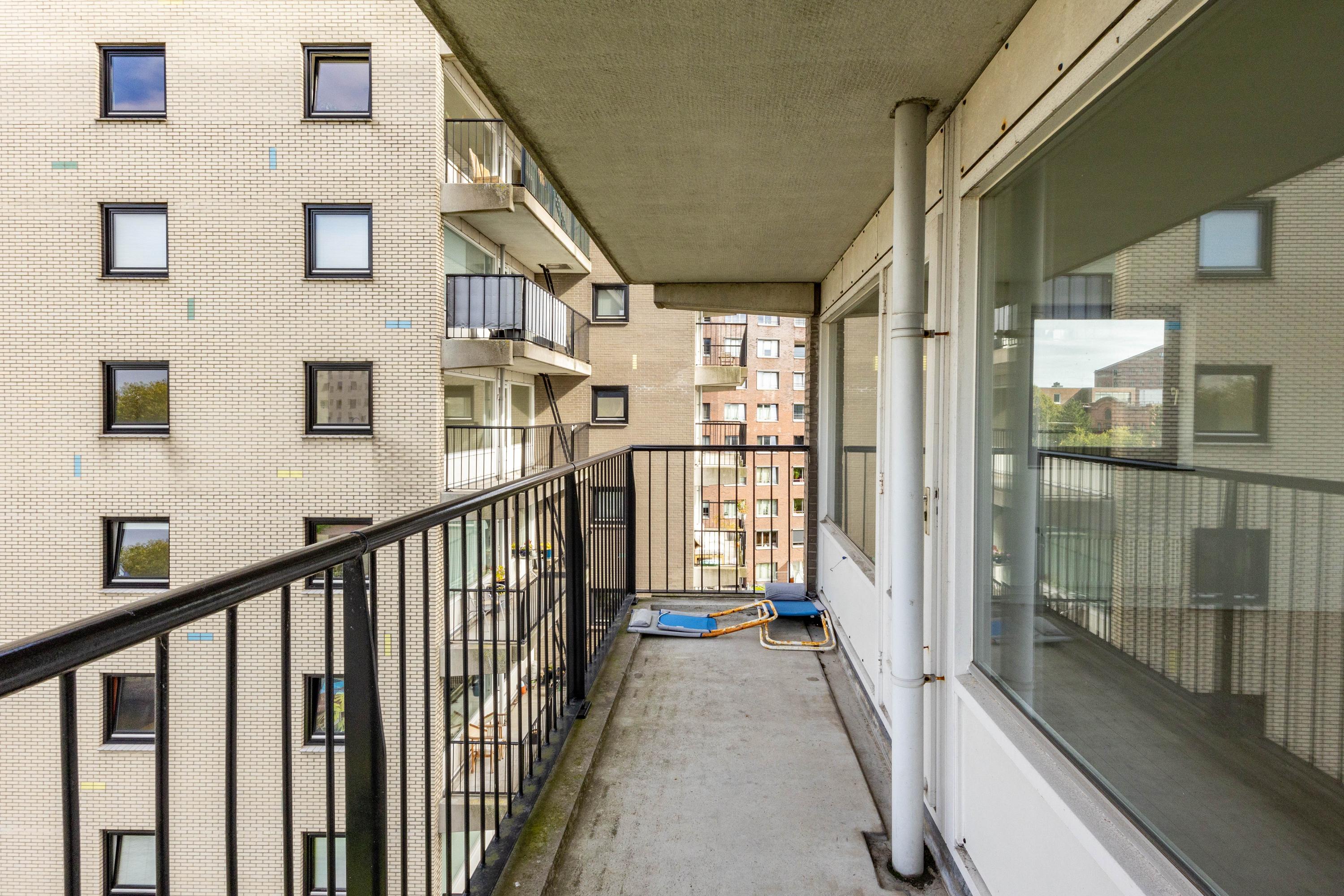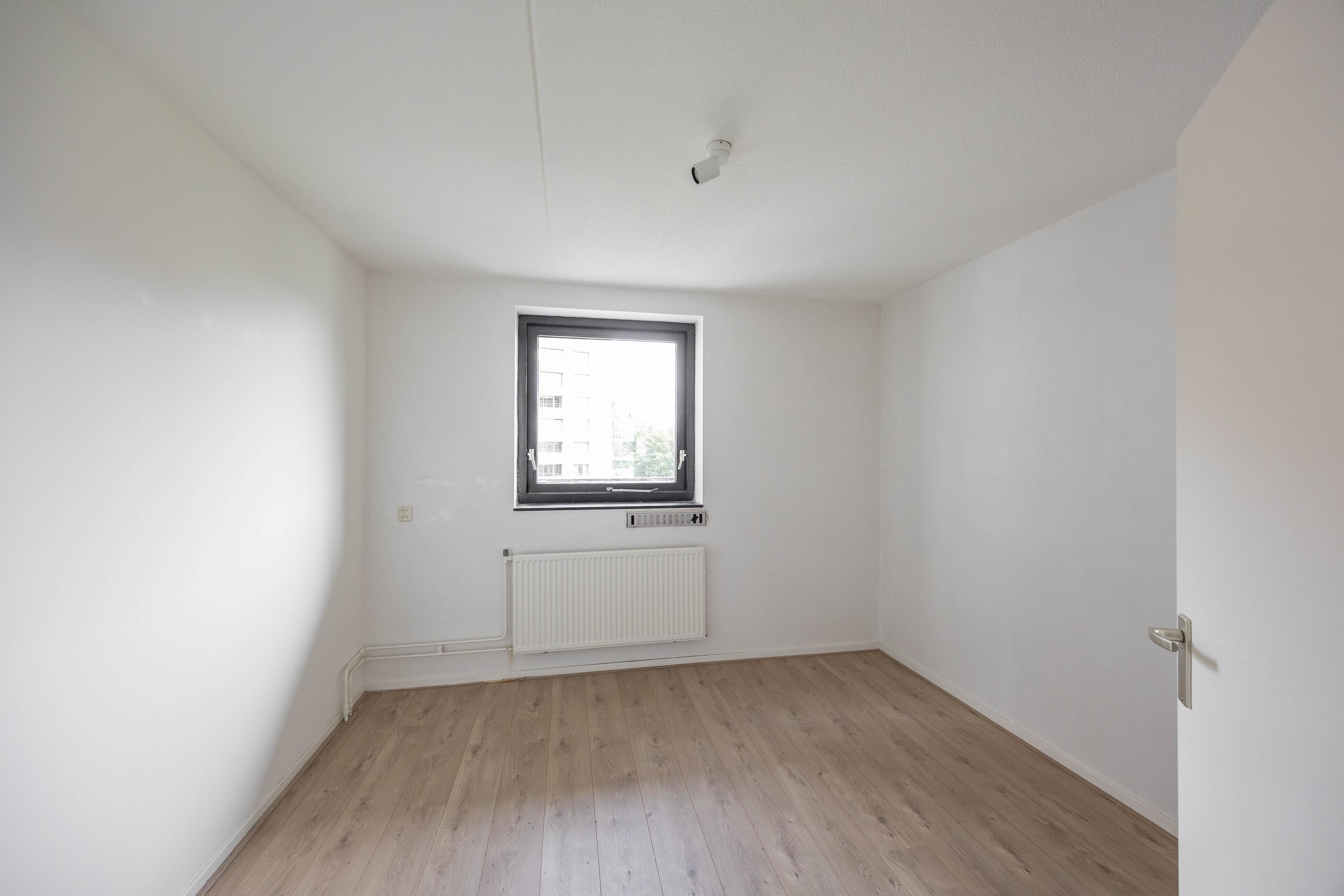 Indeling: entree, lift naar vijfde woonlaag, entree appartement, gang met toilet, badkamer, twee slaapkamers woonkamer met open keuken, toegang tot balkon. Op de begane grond is een fietsenberging.
