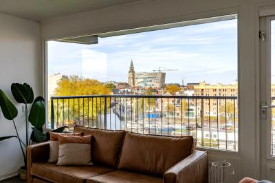 Dankzij de unieke centrale ligging in combinatie met het prachtige uitzicht staat dit appartement garant voor optimaal woonplezier. Het appartement maakt onderdeel uit van De Brinkflats, in de jaren '80 gerealiseerd naar ontwerp van architect Rem Koolhaas. Beide torens liggen aan een kruispunt van waterwegen. De bewoners maken volop gebruik van de gemeenschappelijke groenstrook aan de kade van het winschoterdiep/eemskanaal.