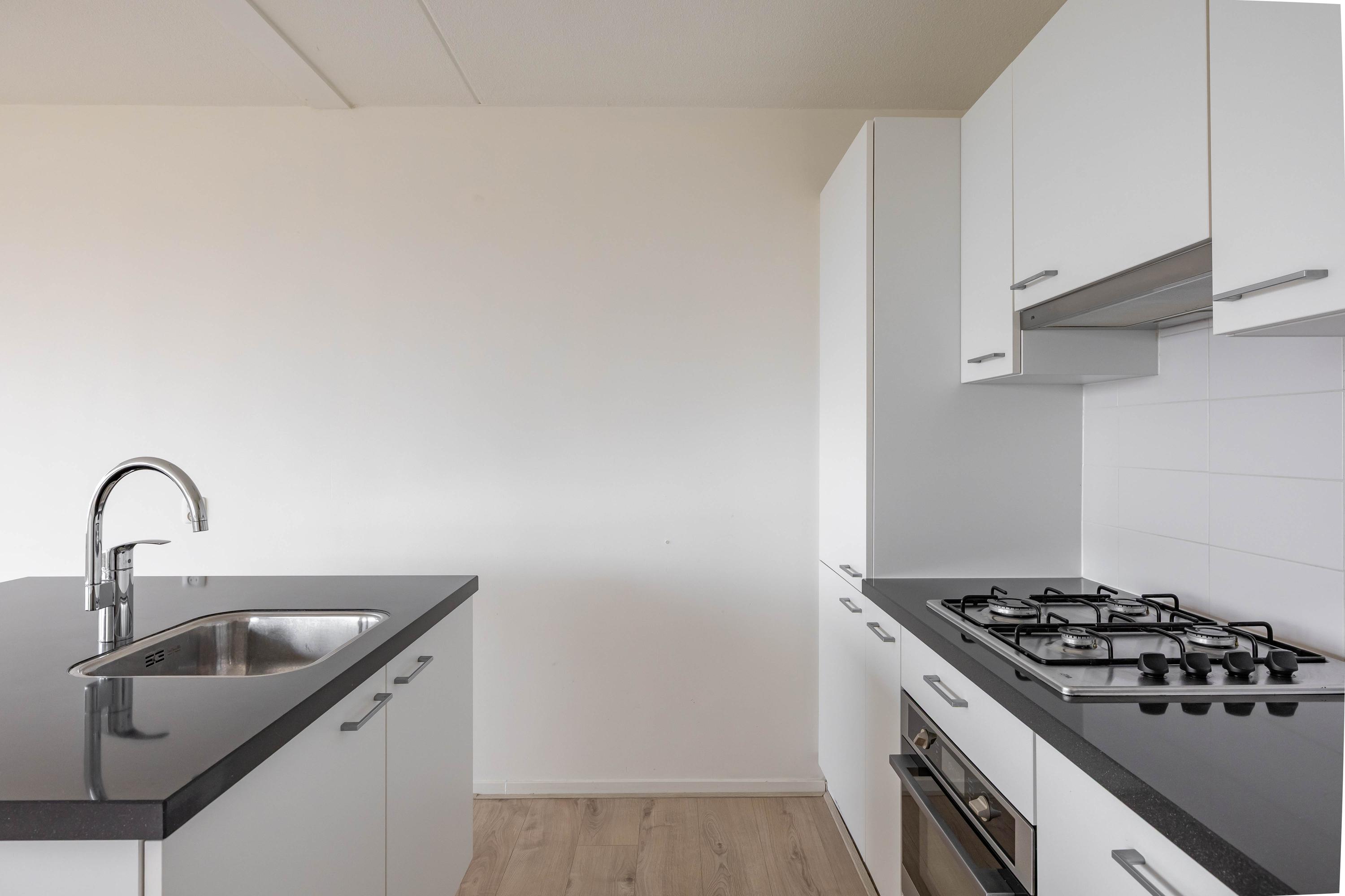 Indeling: entree, lift naar derde woonlaag, entree appartement, gang met toilet, badkamer, twee slaapkamers woonkamer met open keuken, toegang tot balkon. Op de begane grond is een fietsenberging.