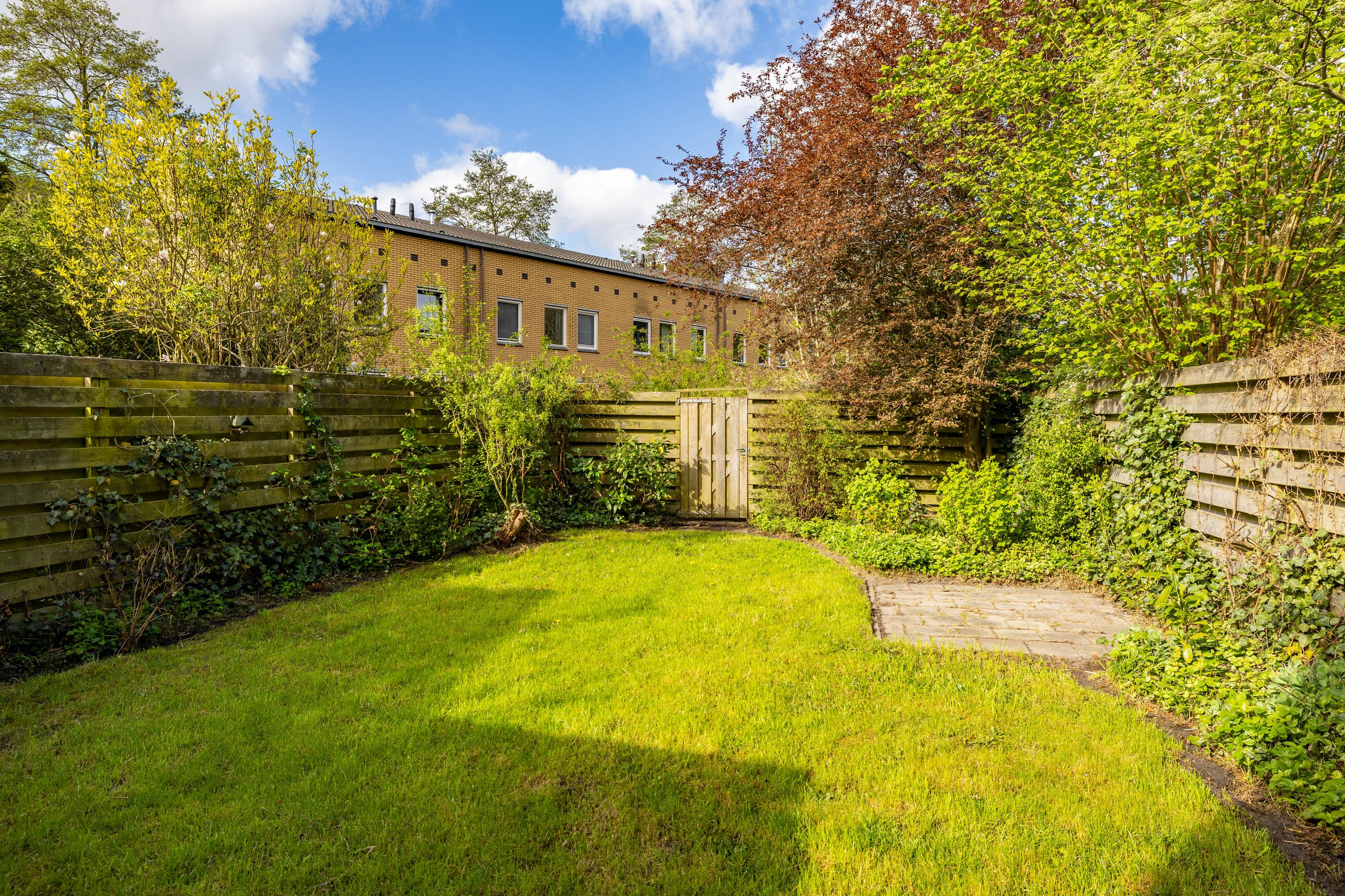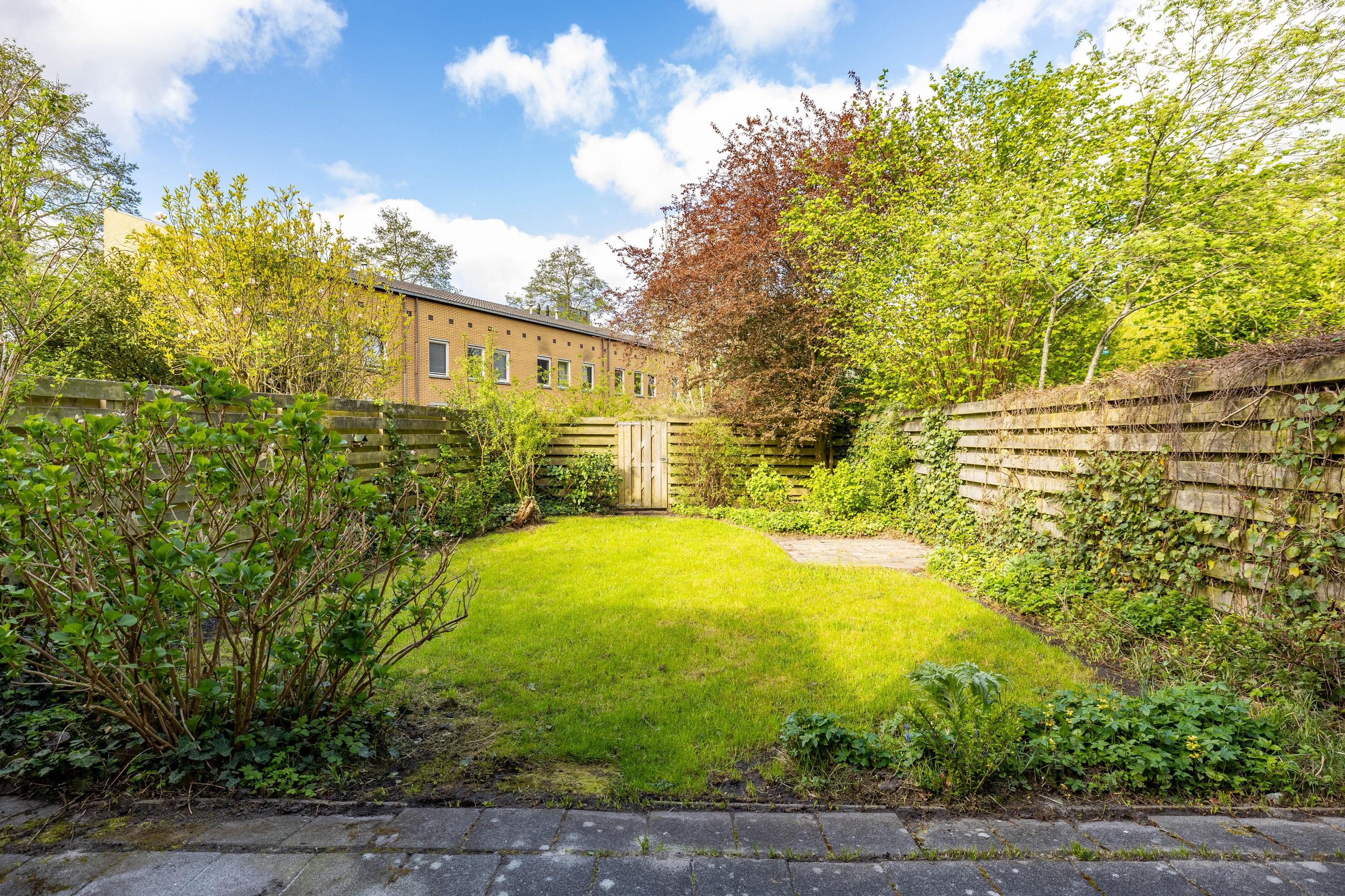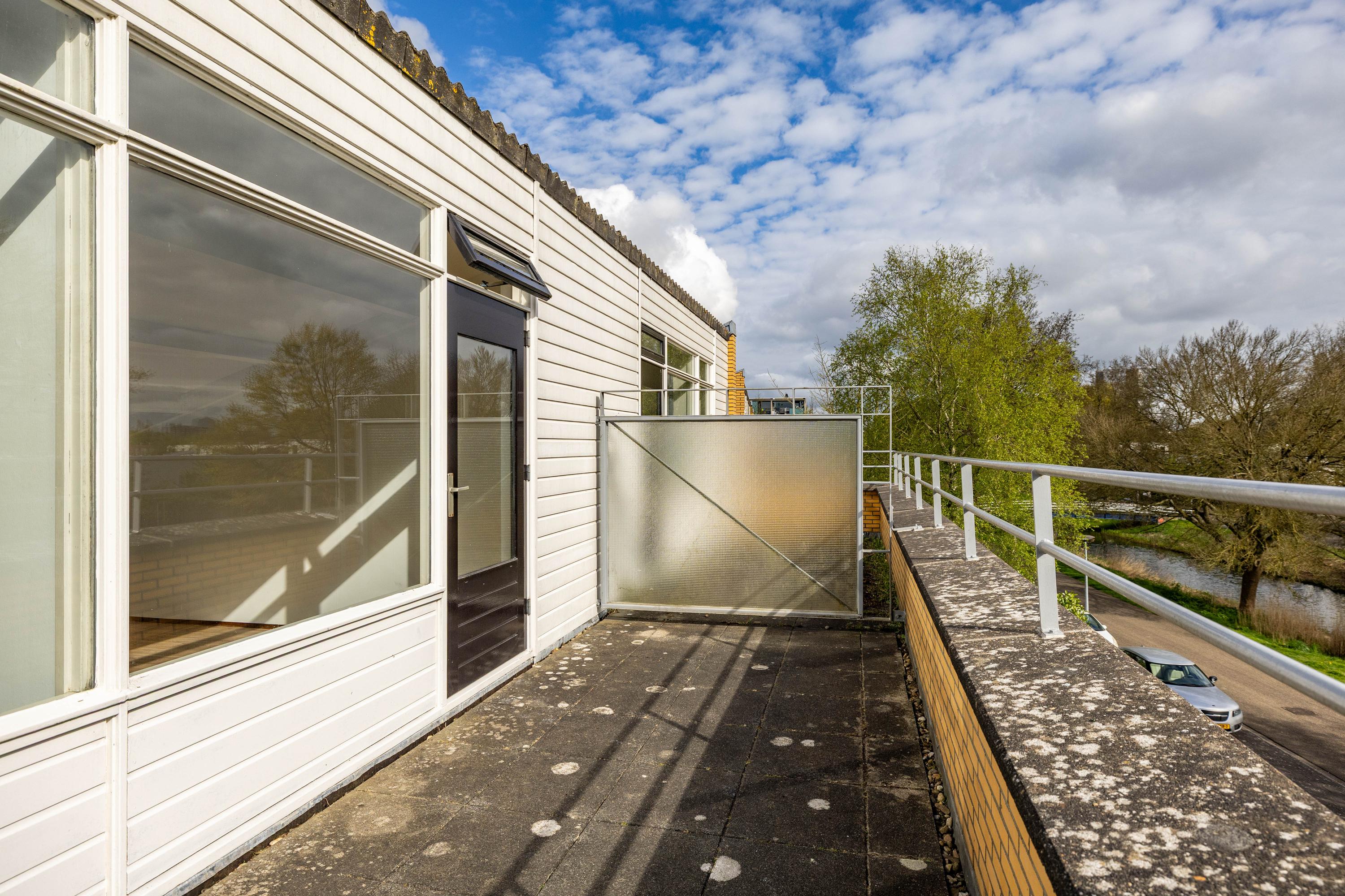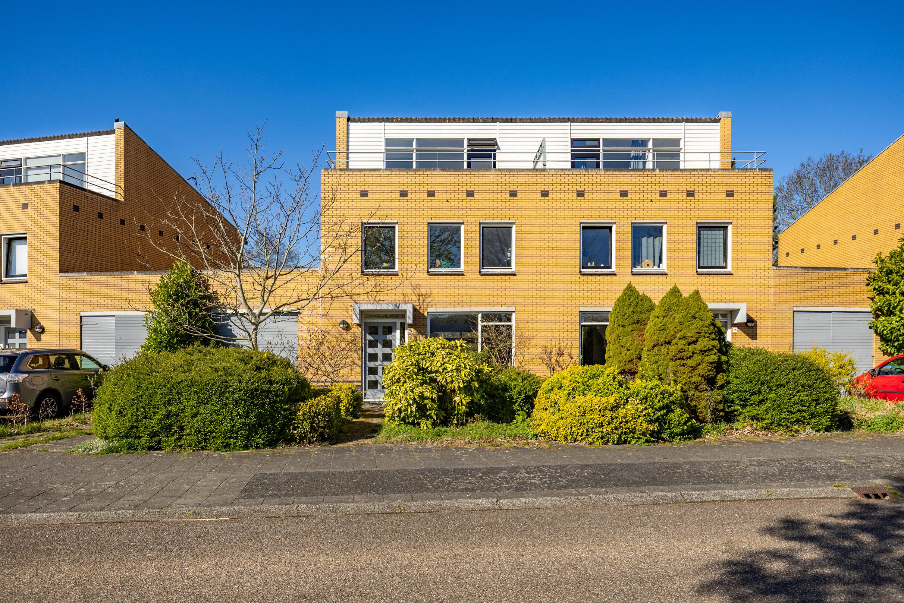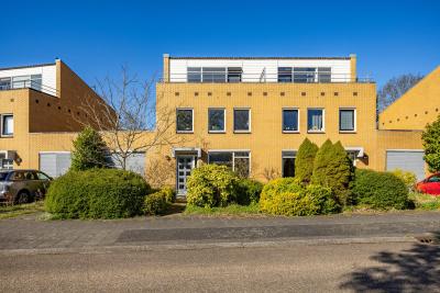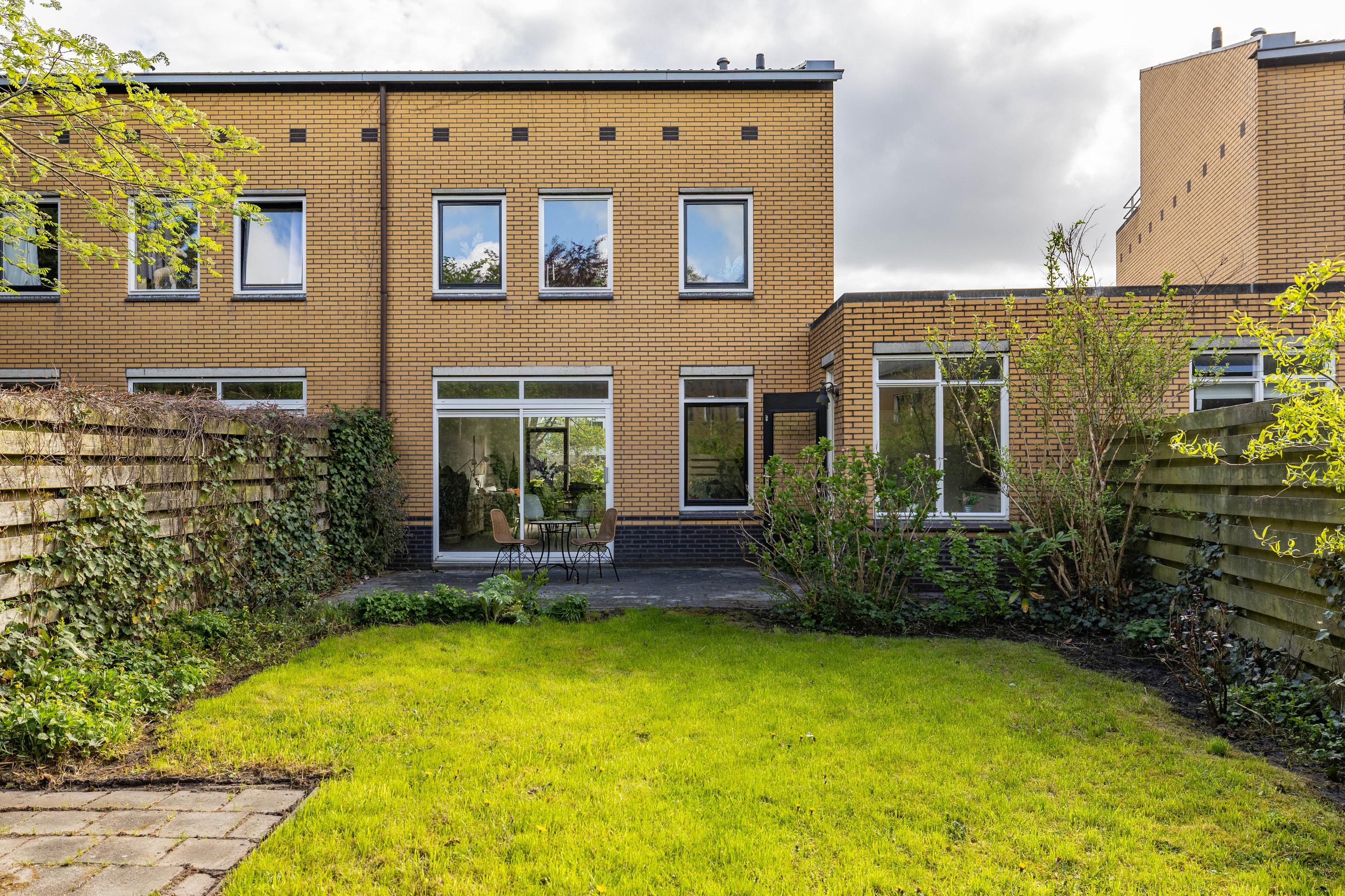 Aan de voorzijde van de woning geniet je van een mooie, vrije ligging met uitzicht over een groenstrook, wat zorgt voor een ruimtelijk gevoel en extra privacy.