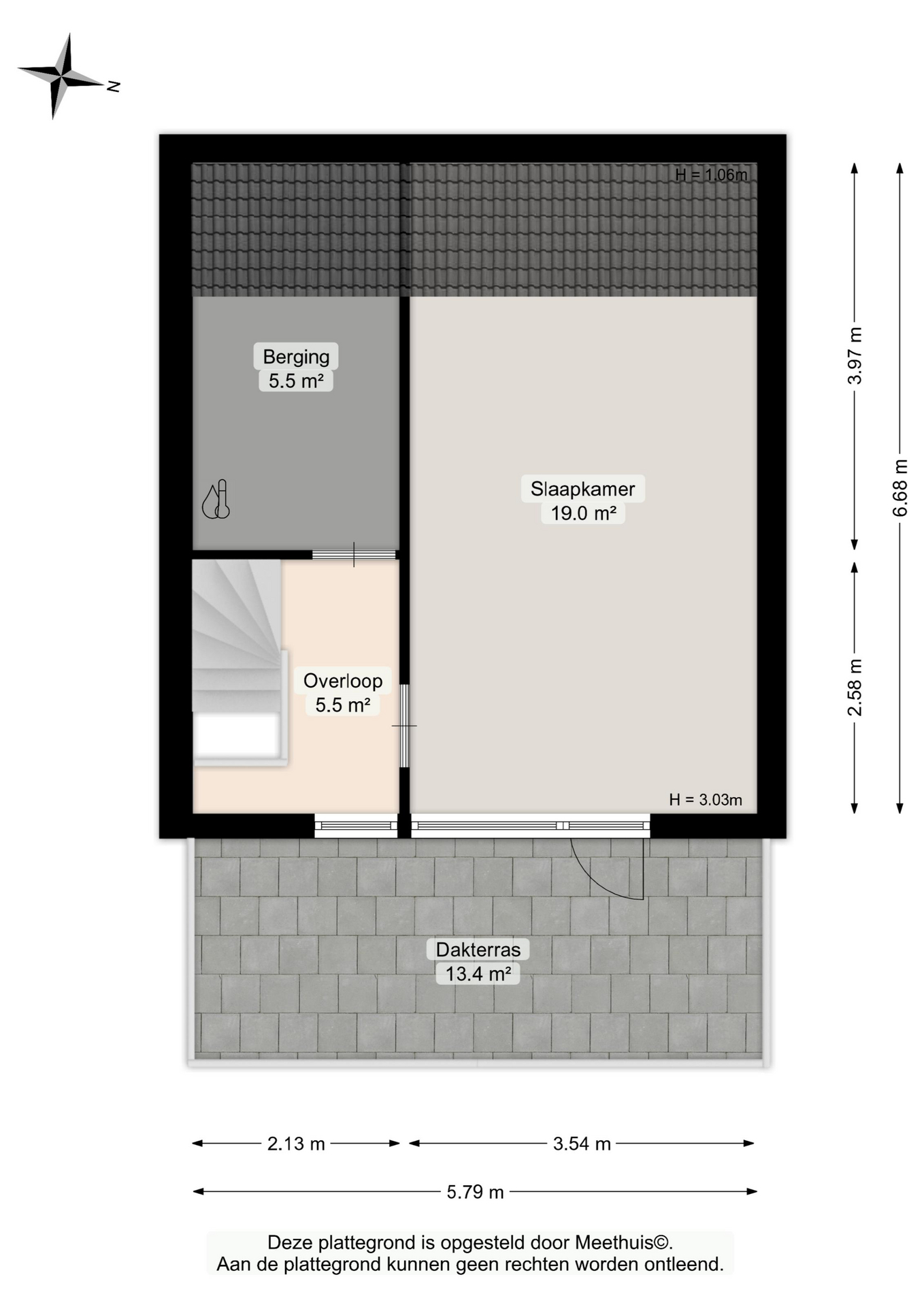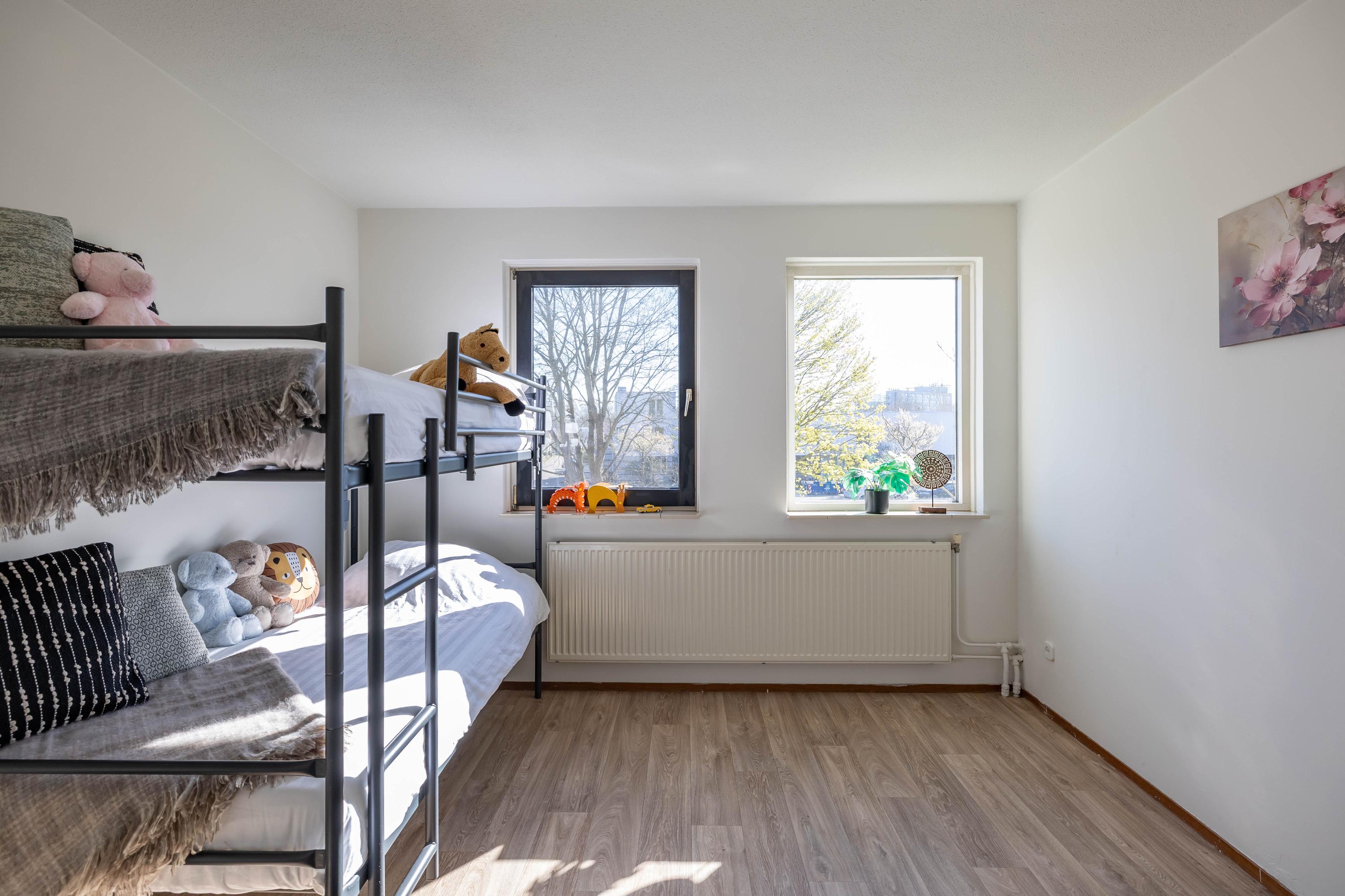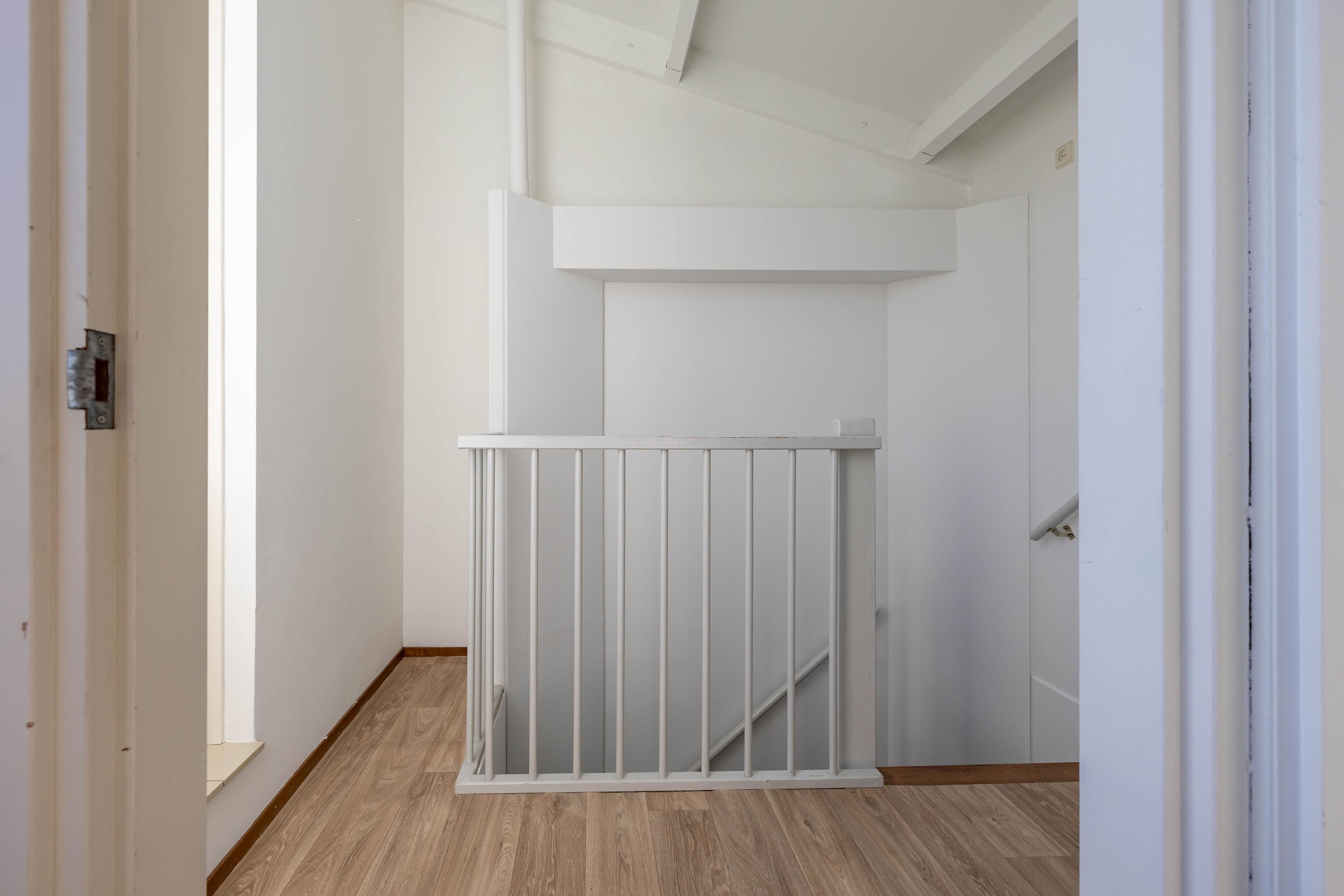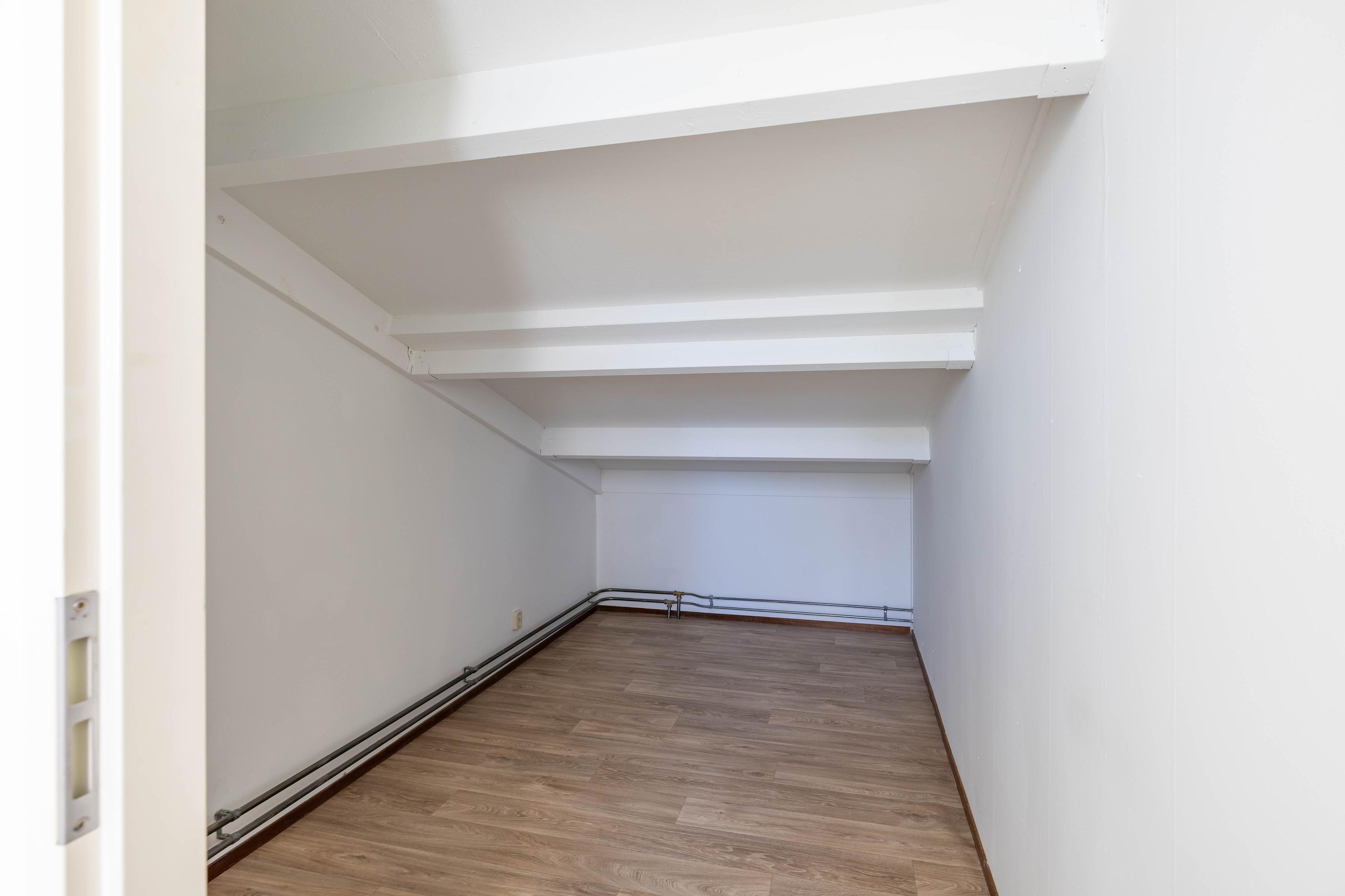 De tweede verdieping biedt extra bergruimte in een aparte berging met de cv-installatie. Daarnaast vind je hier een vierde slaapkamer met toegang tot een heerlijk dakterras, een ideale plek om in alle rust van buiten te genieten.