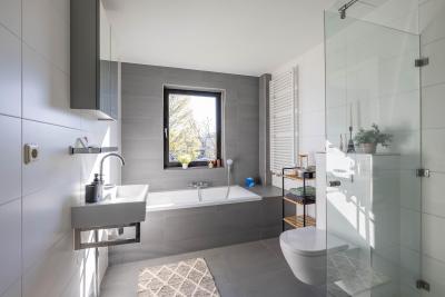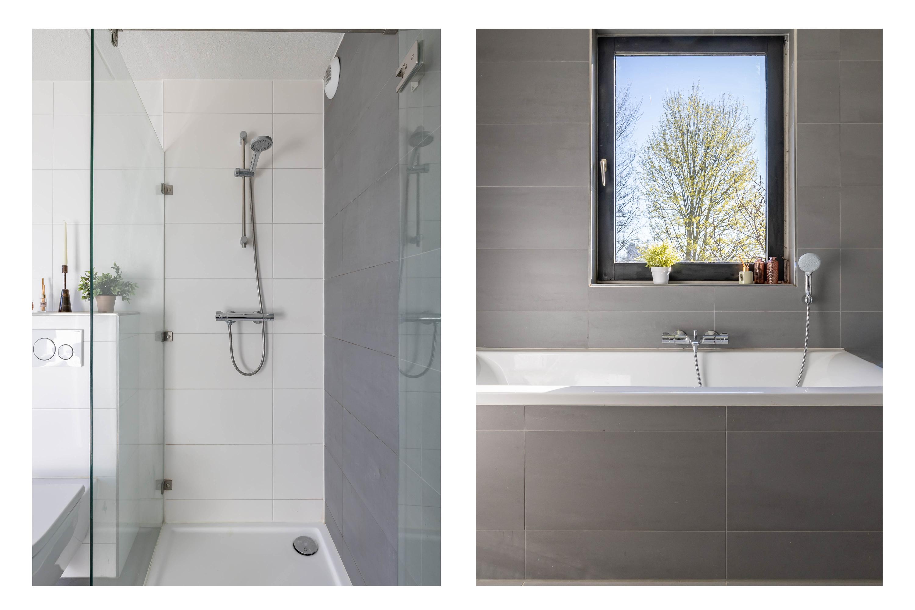 De eerste verdieping beschikt over drie goed bemeten slaapkamers en een moderne badkamer, voorzien van een ligbad, inloopdouche en toilet. Een comfortabele en complete ruimte.