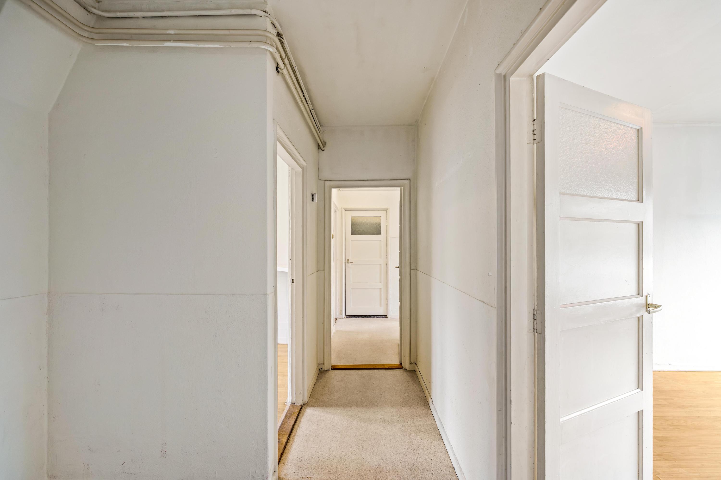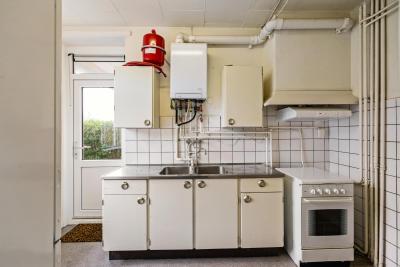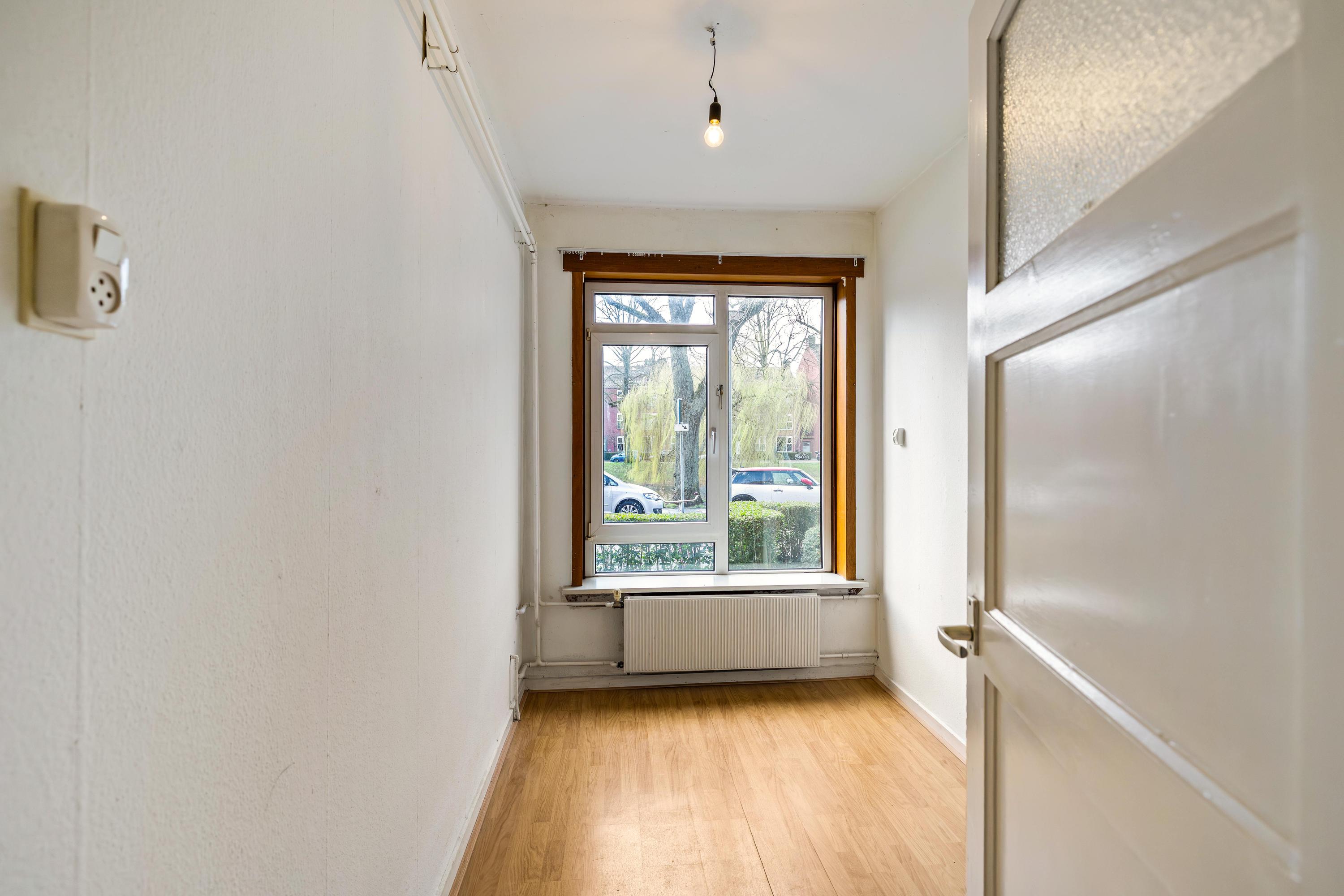 Bij binnenkomst via de entree kom je in de hal met toegang tot het toilet en de verschillende vertrekken. De woonkamer van circa 18 m² vormt een fijne, lichte leefruimte aan de voorzijde van de woning. De dichte keuken (circa 8 m²) bevindt zich aan de achterzijde en biedt toegang tot de bijkeuken en een praktische bergkast.