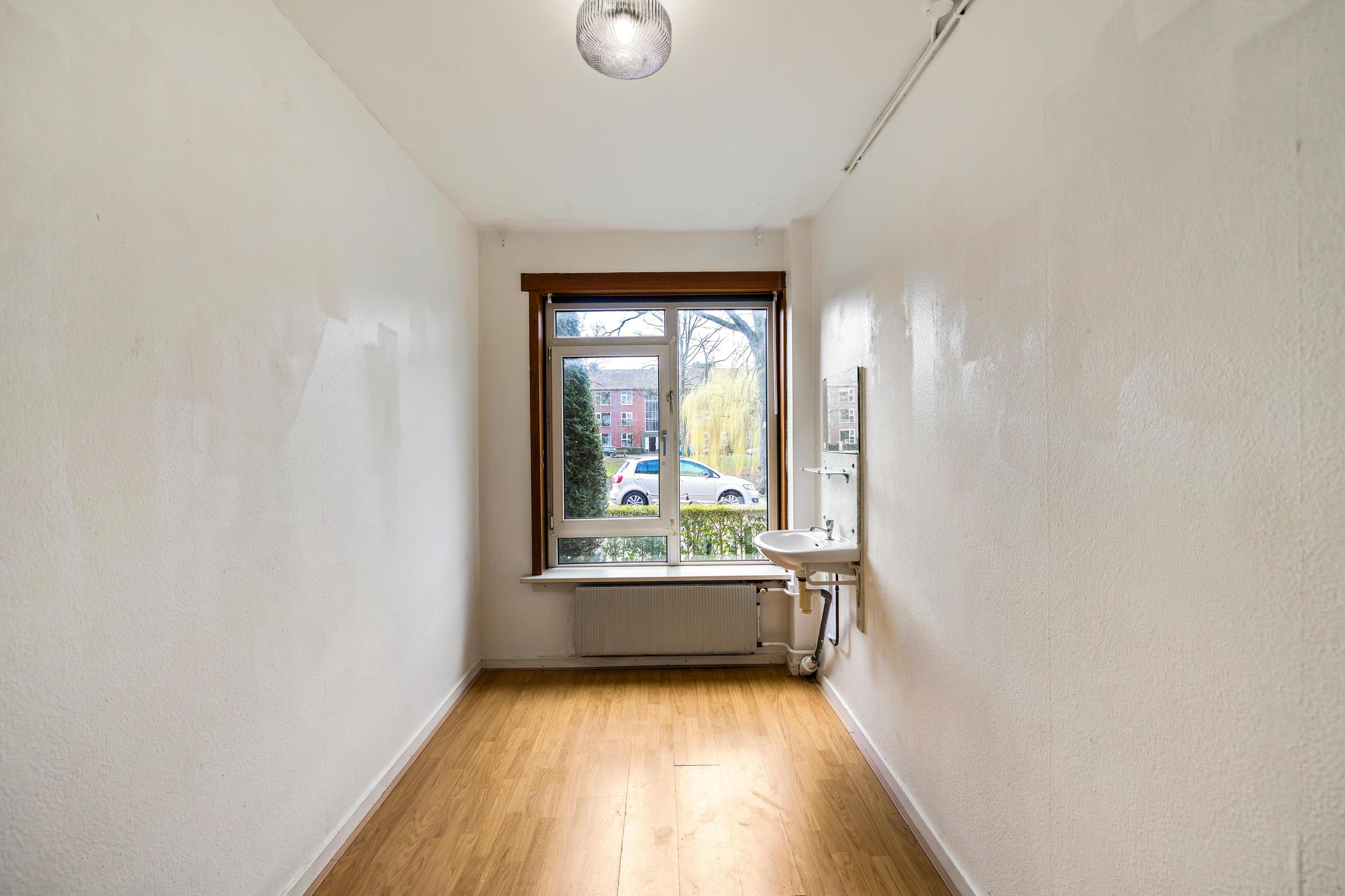 De woning beschikt over maar liefst vier slaapkamers van circa 10 m², 7 m², 8,5 m² en 10 m². Hierdoor zijn er volop mogelijkheden: drie slaapkamers en een extra werk- of hobbykamer, of juist vier slaapkamers voor verhuurdoeleinden (maximaal 3 studenten). De badkamer is voorzien van een douchehoek en wastafel.