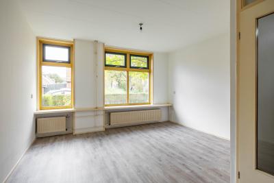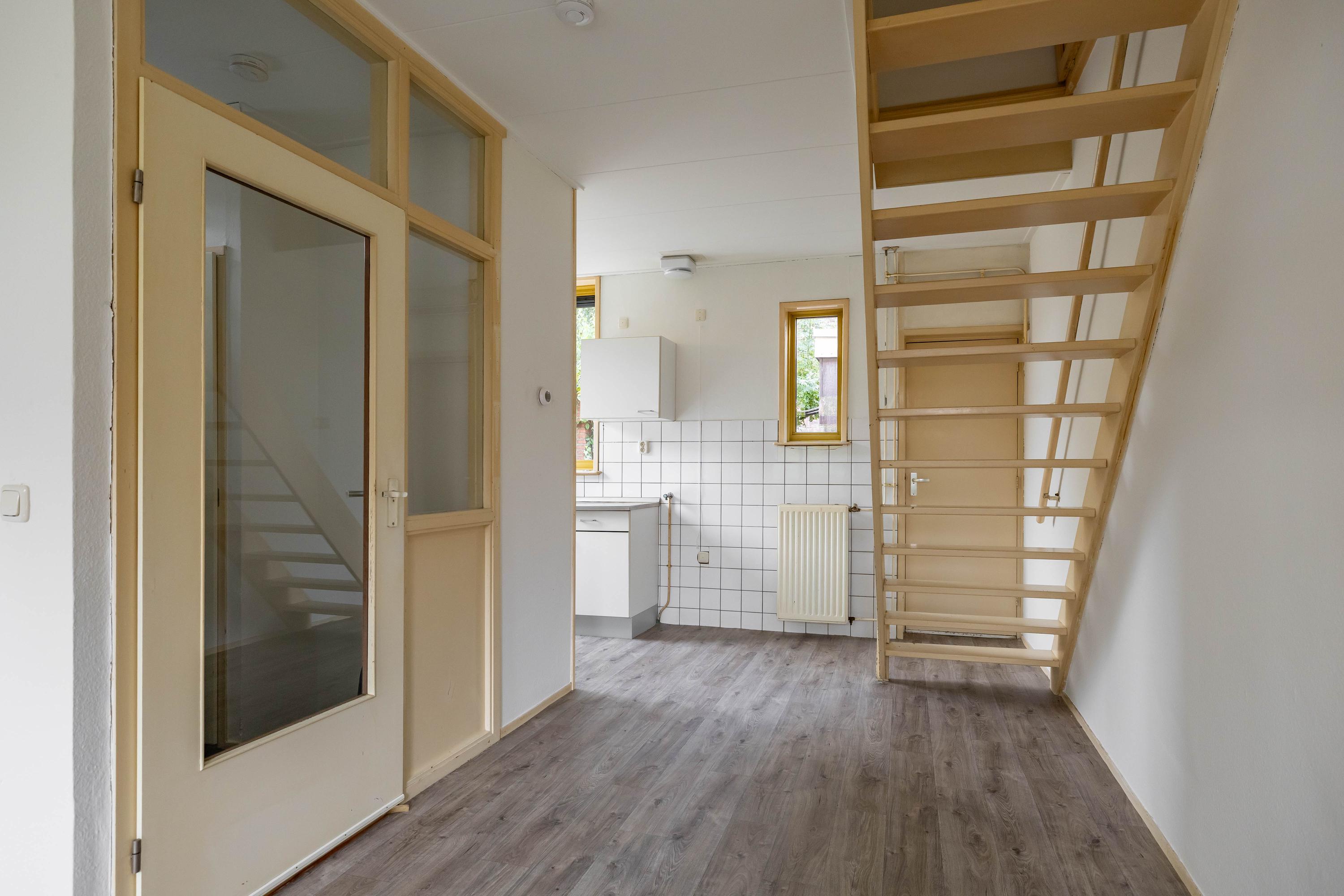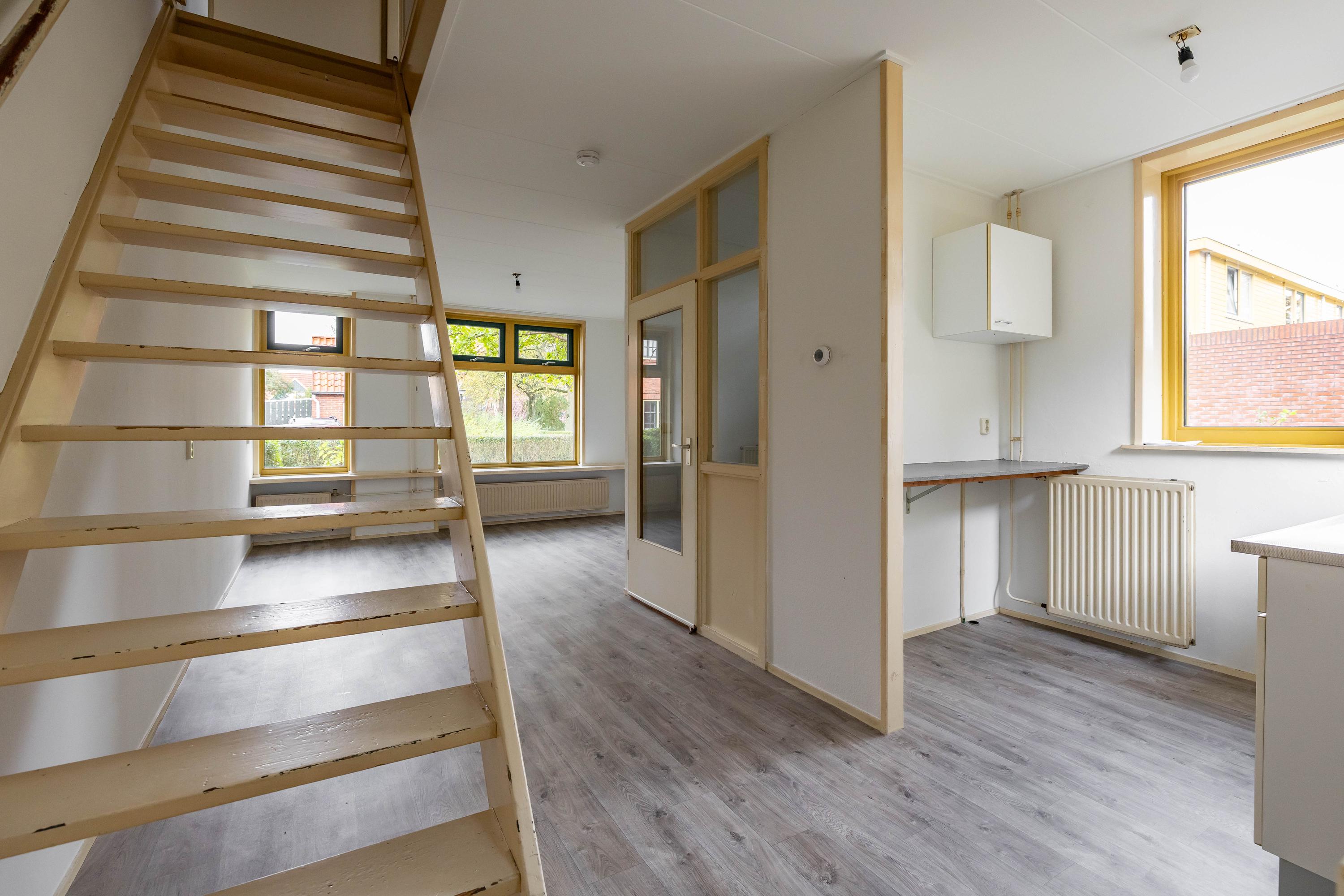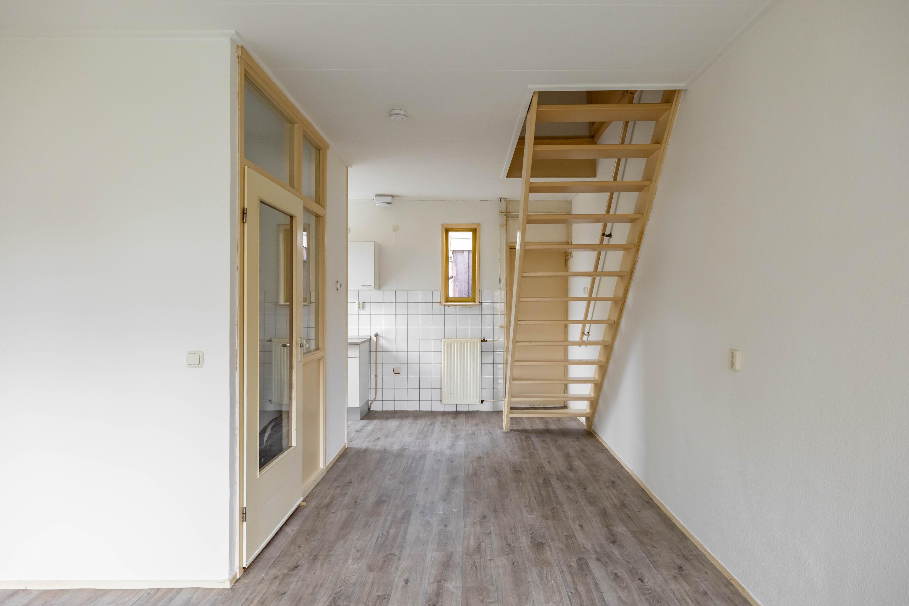 Indeling: entree, woonkamer met een open keuken v.v. toegang tot de tuin. Via een tussenhalletje toegang zij-ingang. Via de trap in de woonkamer naar de verdieping met overloop, slaapkamer en badkamer.
