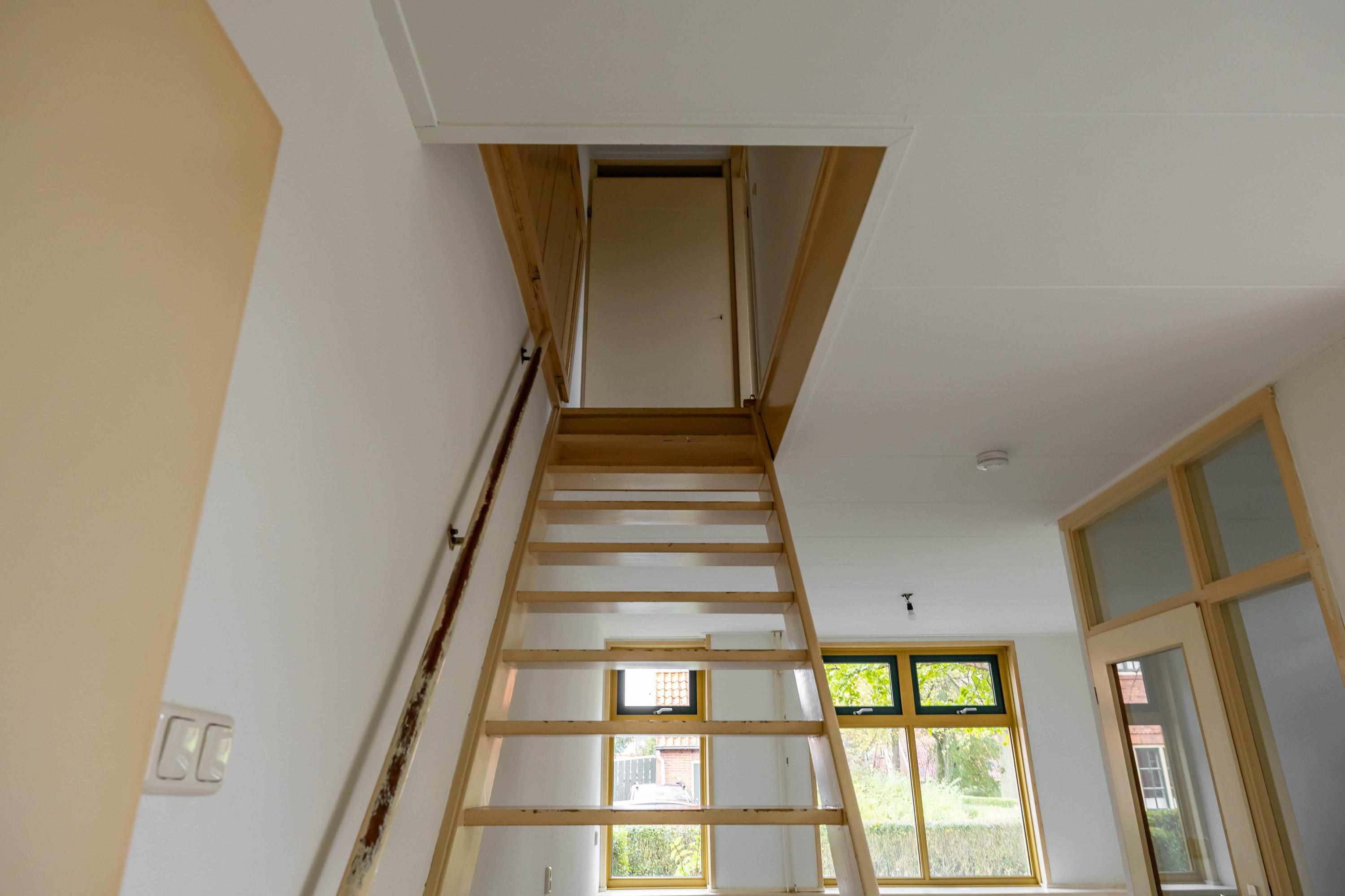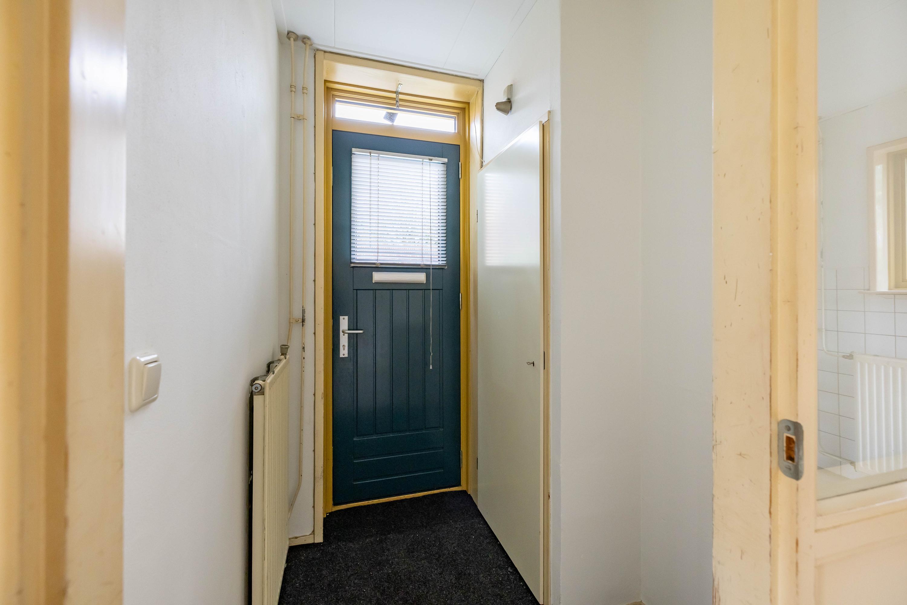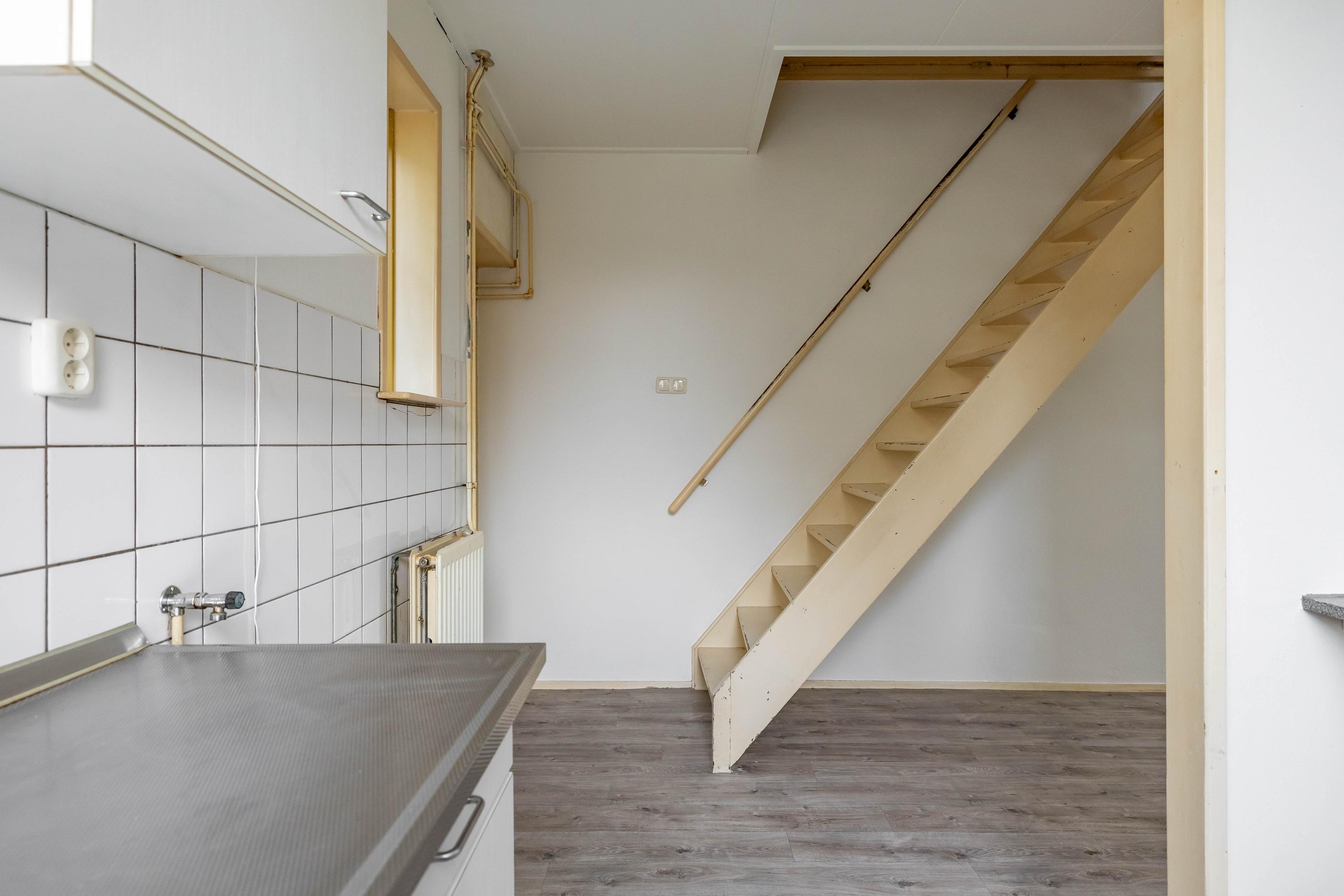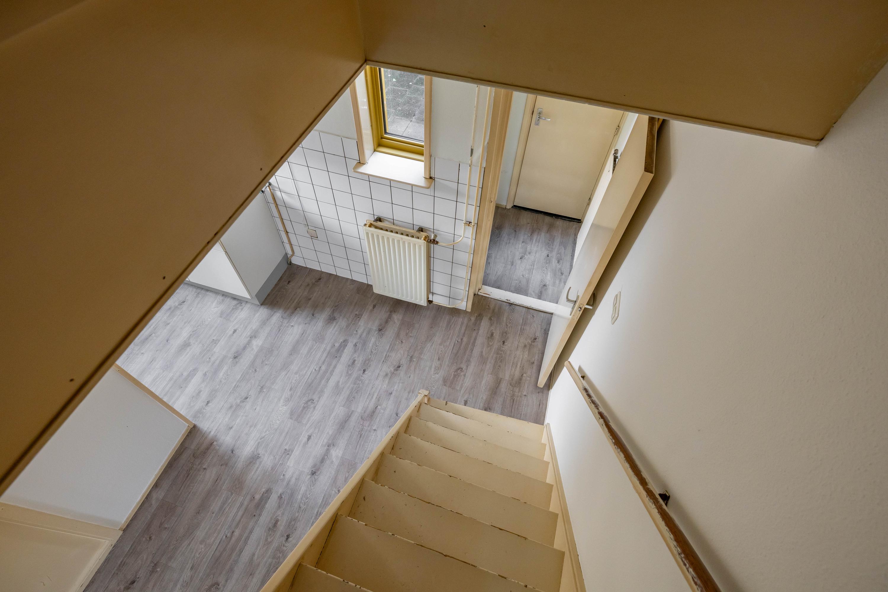 Indeling: entree, woonkamer met een open keuken v.v. toegang tot de tuin. Via een tussenhalletje toegang zij-ingang. Via de trap in de woonkamer naar de verdieping met overloop, slaapkamer en badkamer.
