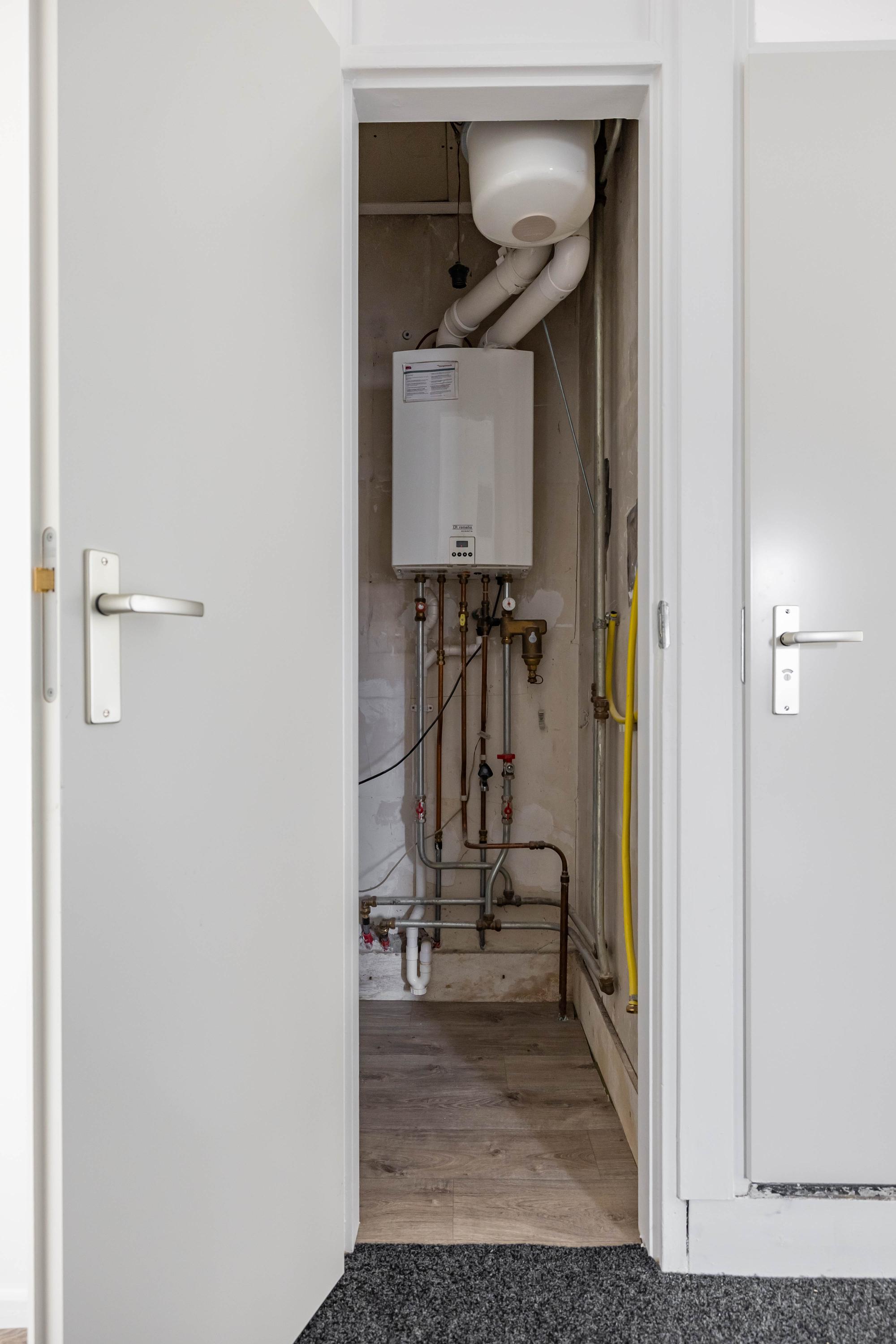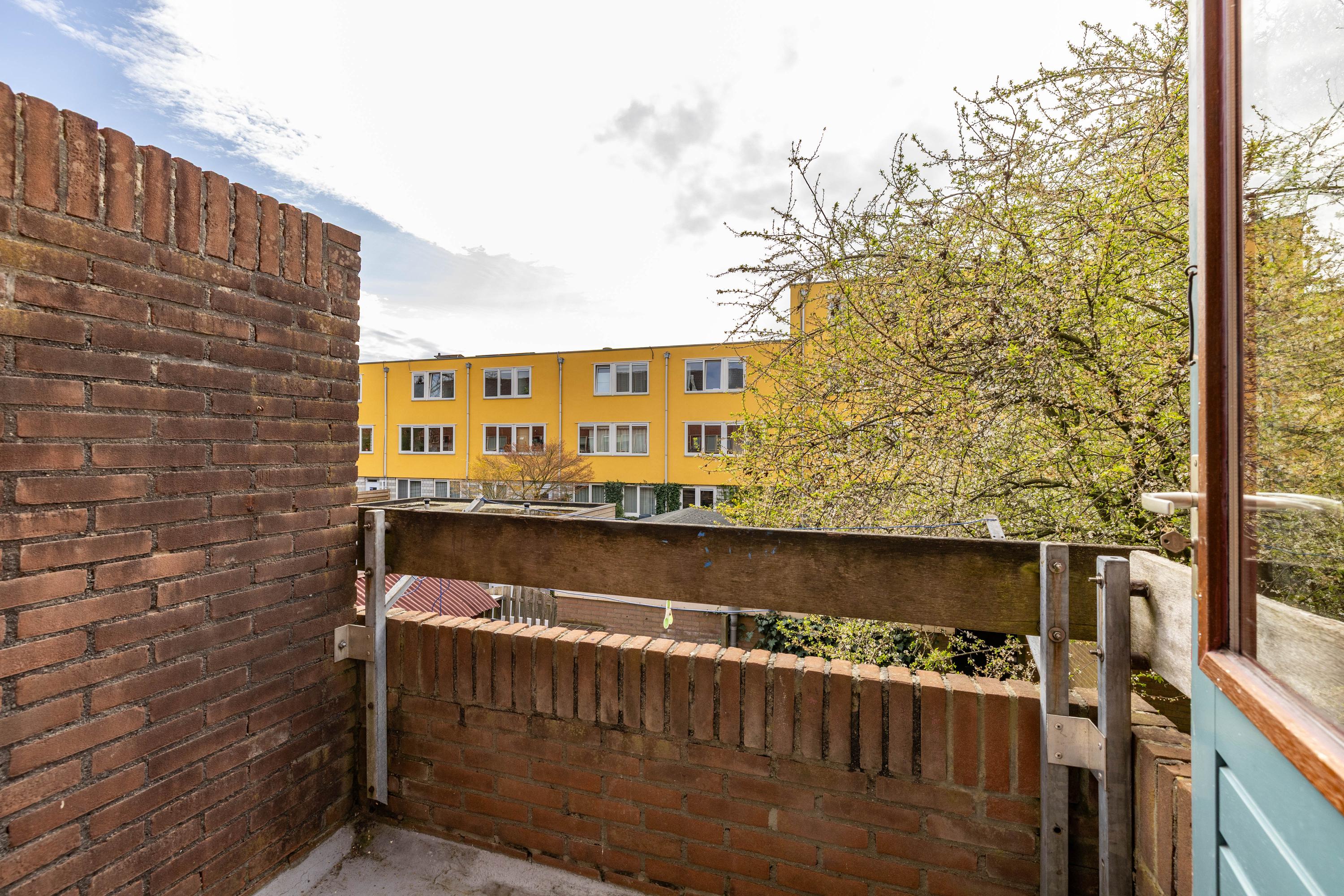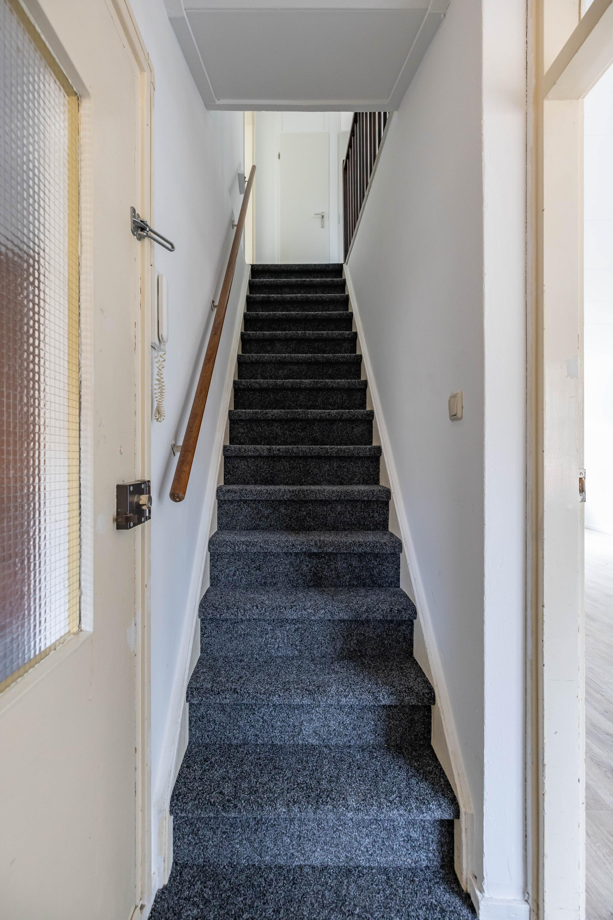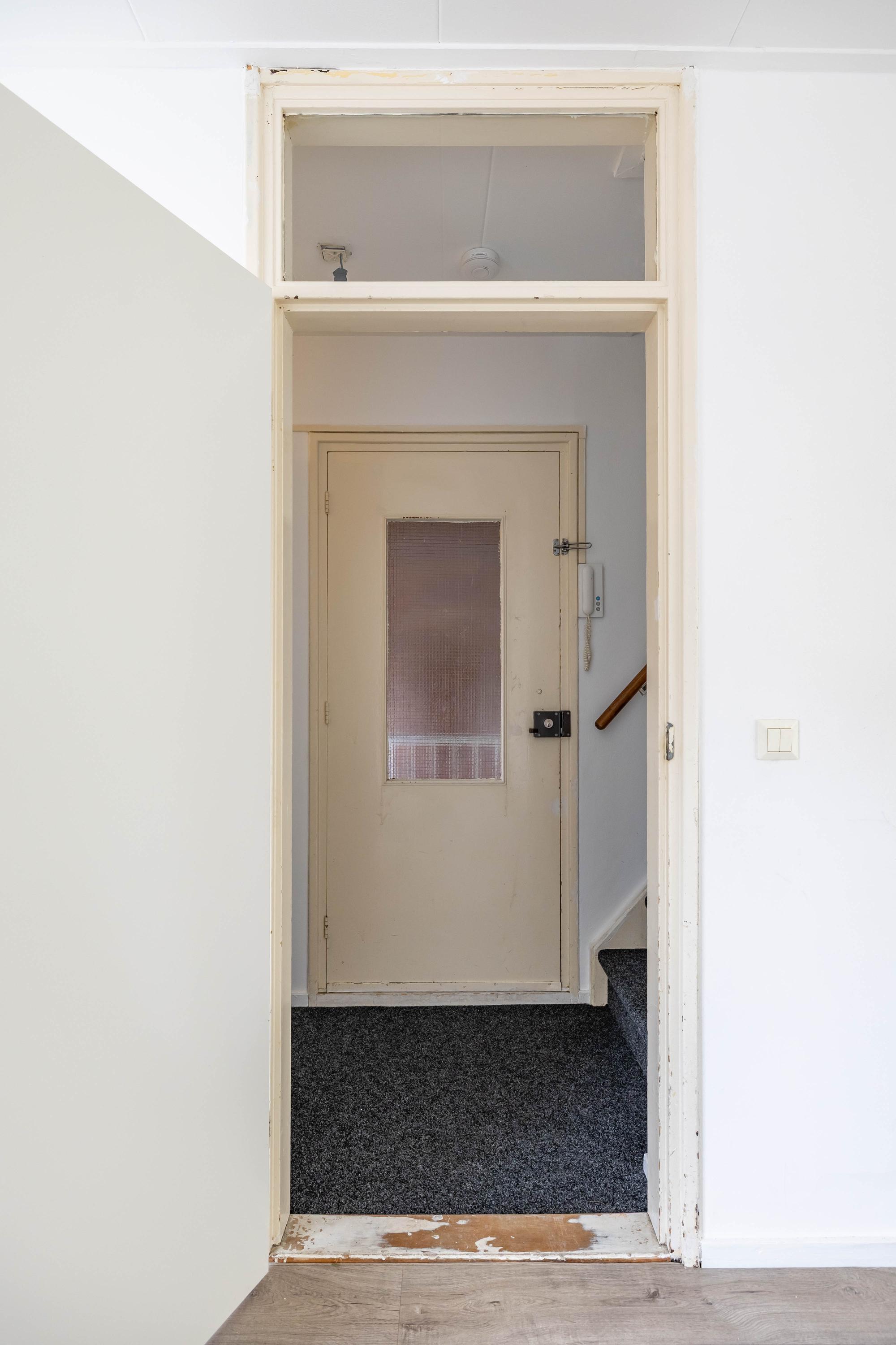 De woning is verdeeld over twee woonlagen. De trap bij de voordeur brengt je naar de eerste verdieping waar de lichte woonkamer, nette eenvoudige keuken, apart toilet, badkamer en het balkon (noord/west) zich begeven.