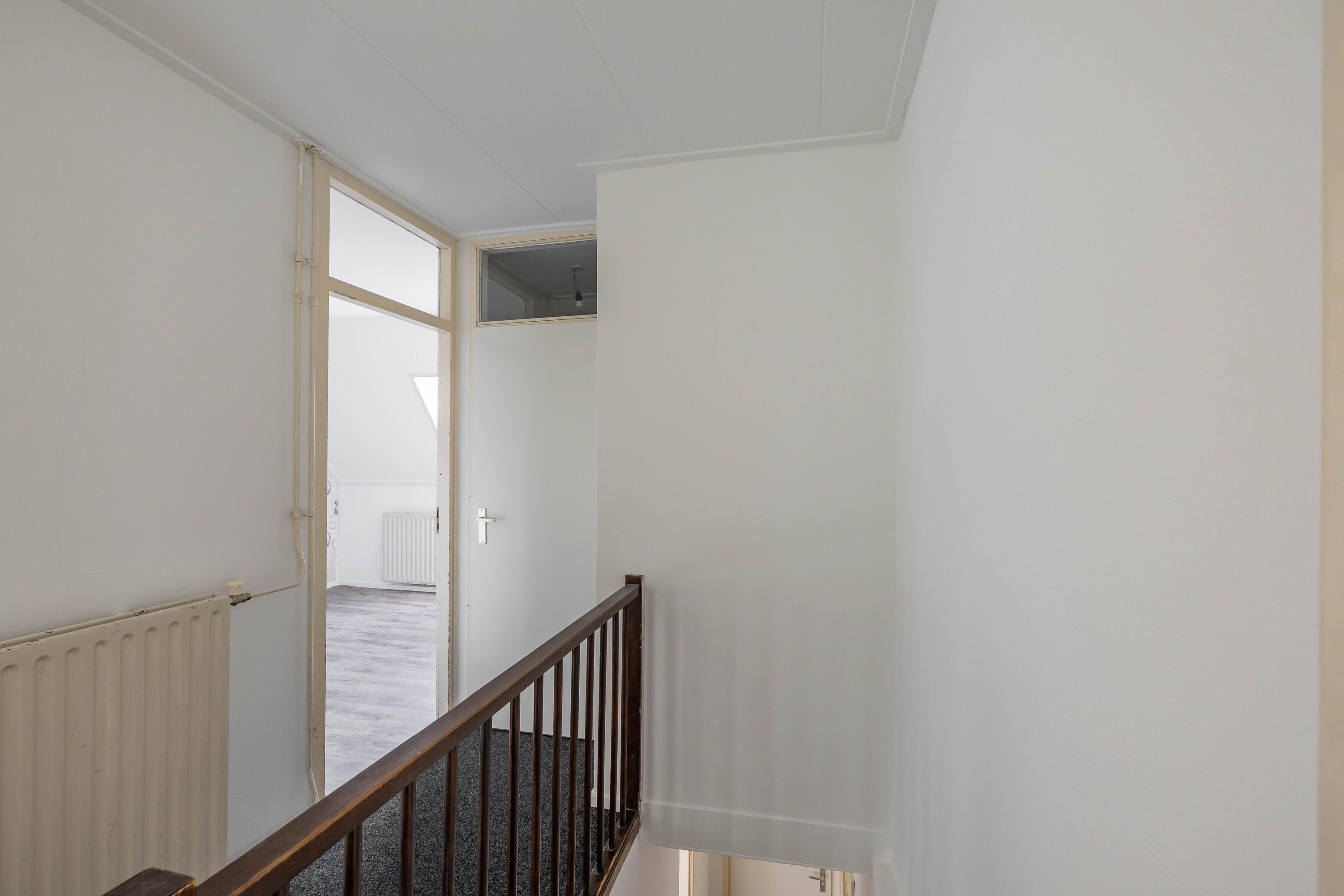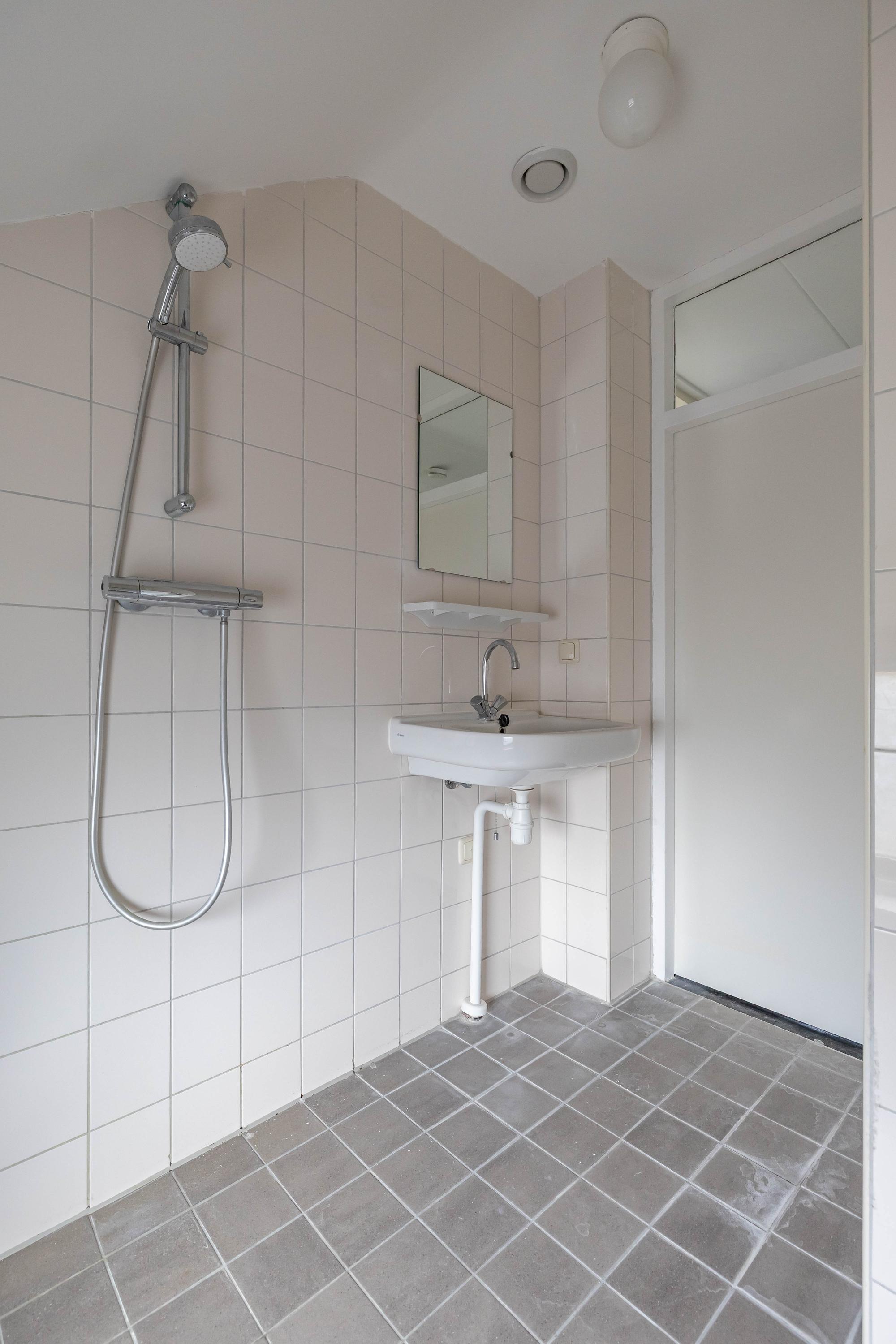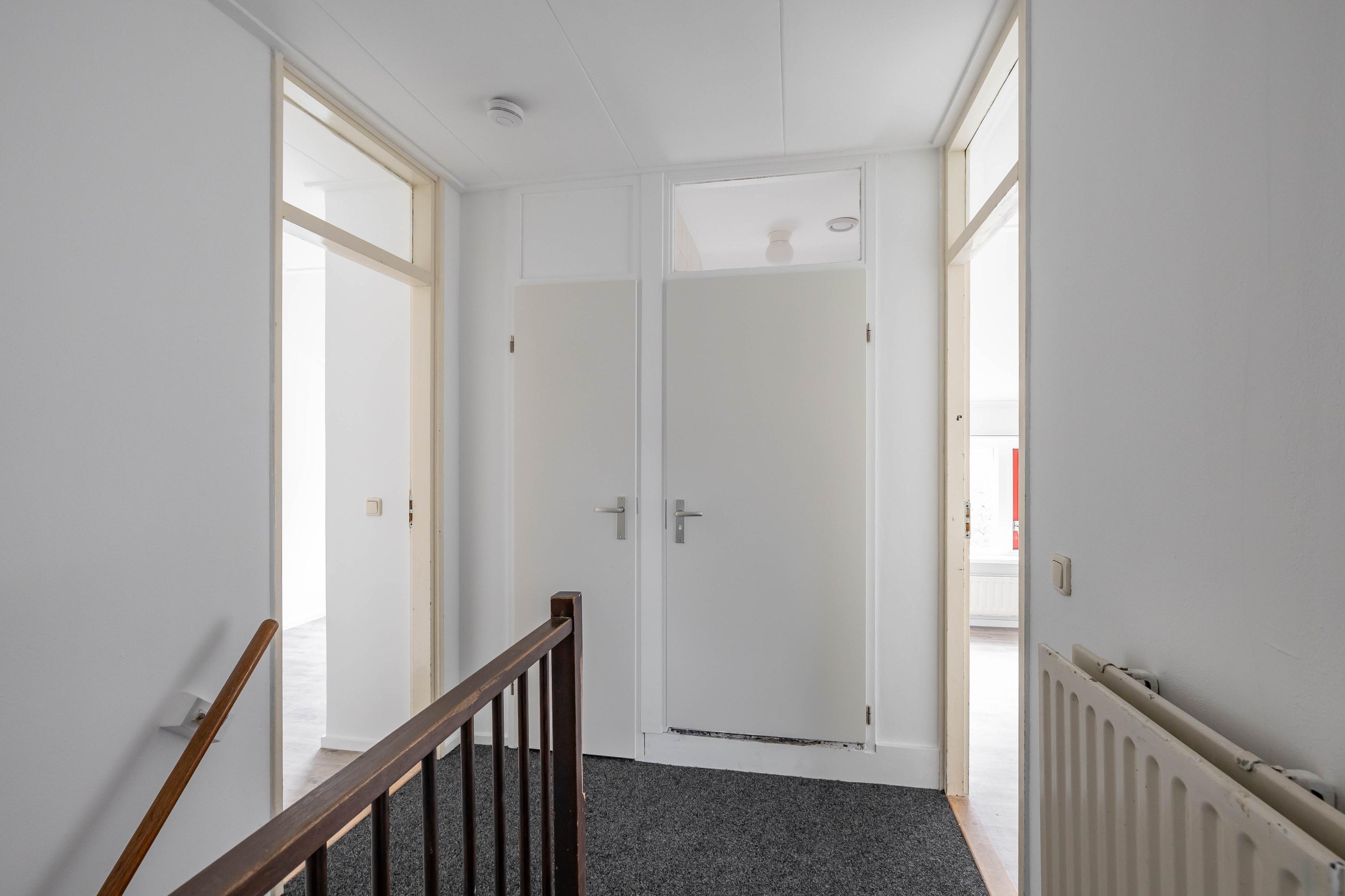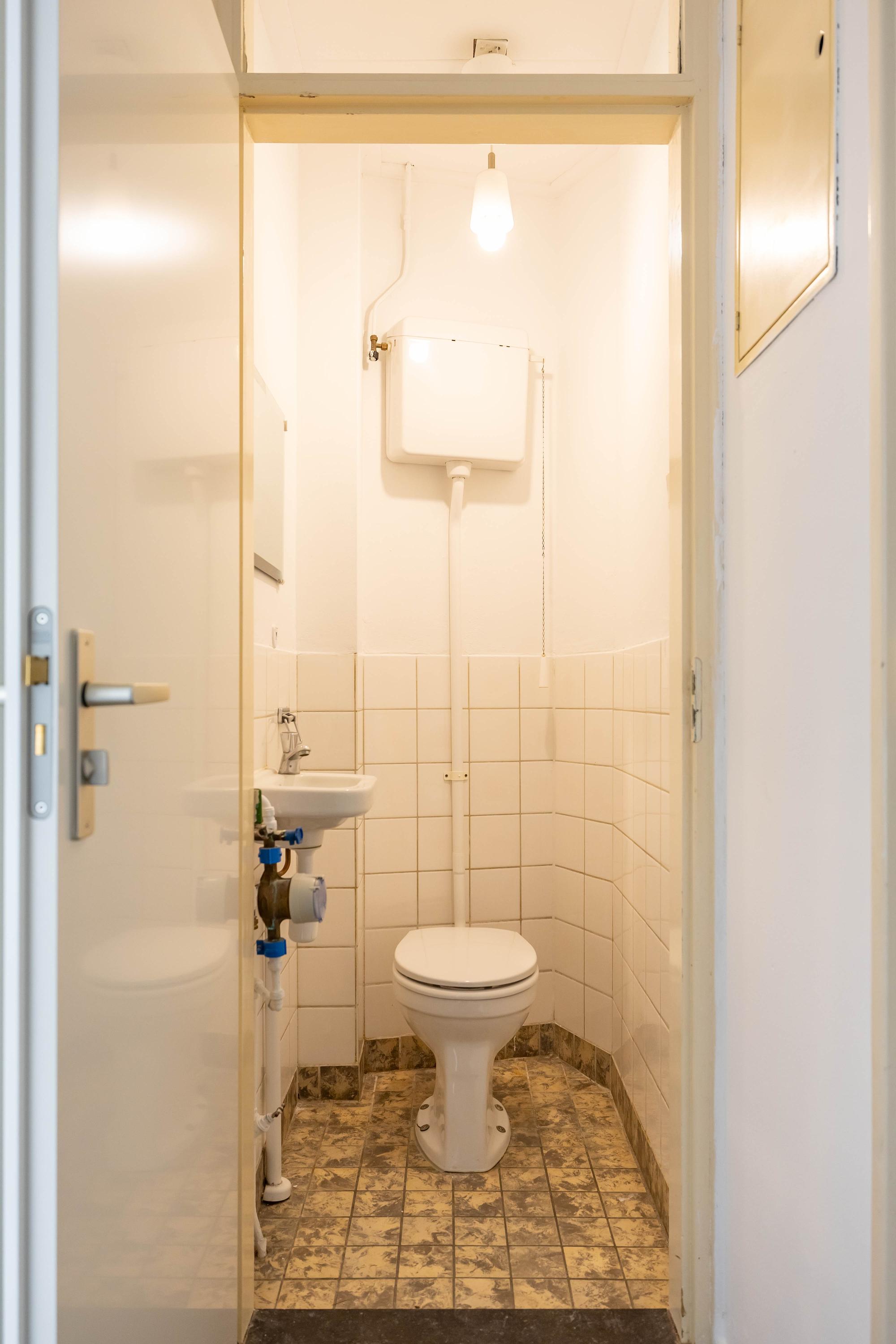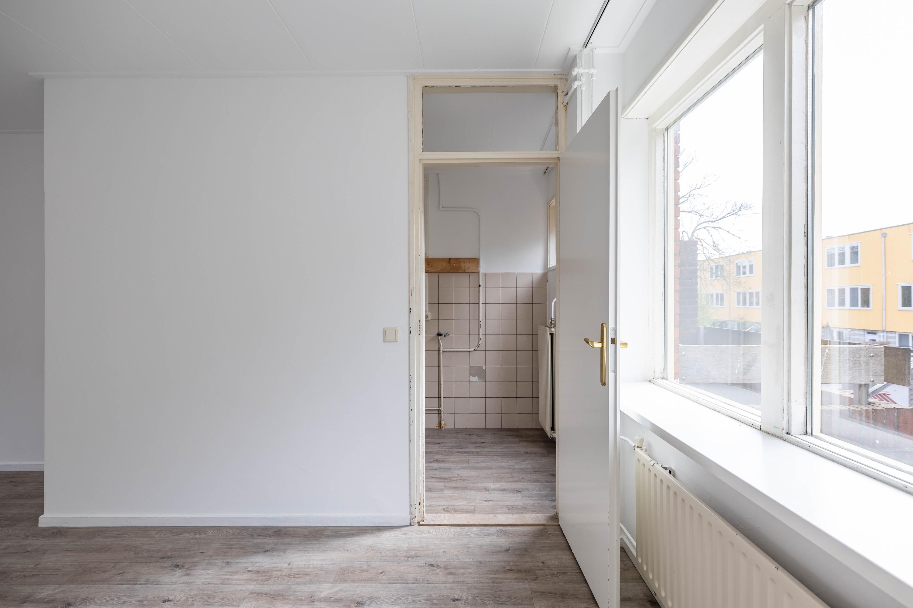 De woning is verdeeld over twee woonlagen. De trap bij de voordeur brengt je naar de eerste verdieping waar de lichte woonkamer, nette eenvoudige keuken, apart toilet, badkamer en het balkon (noord/west) zich begeven.