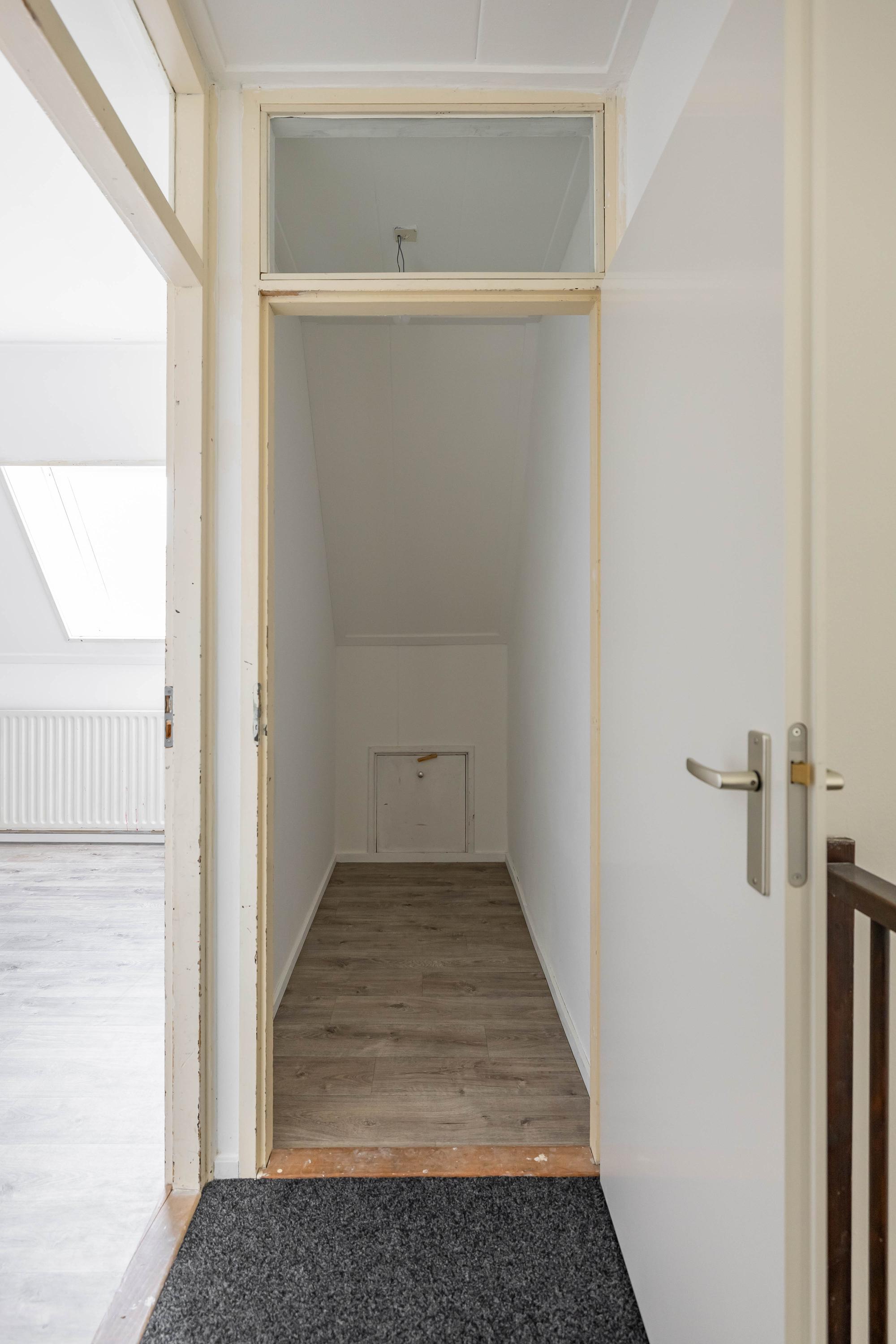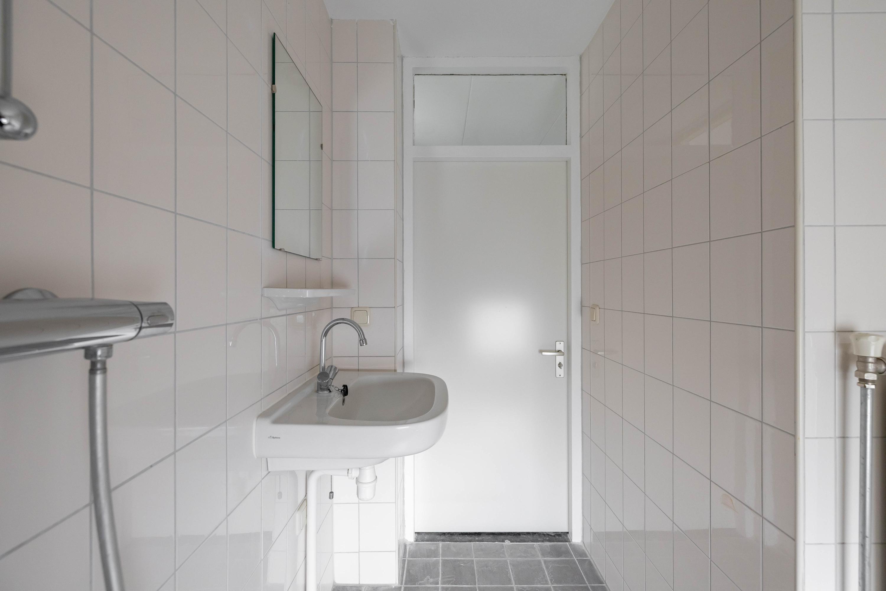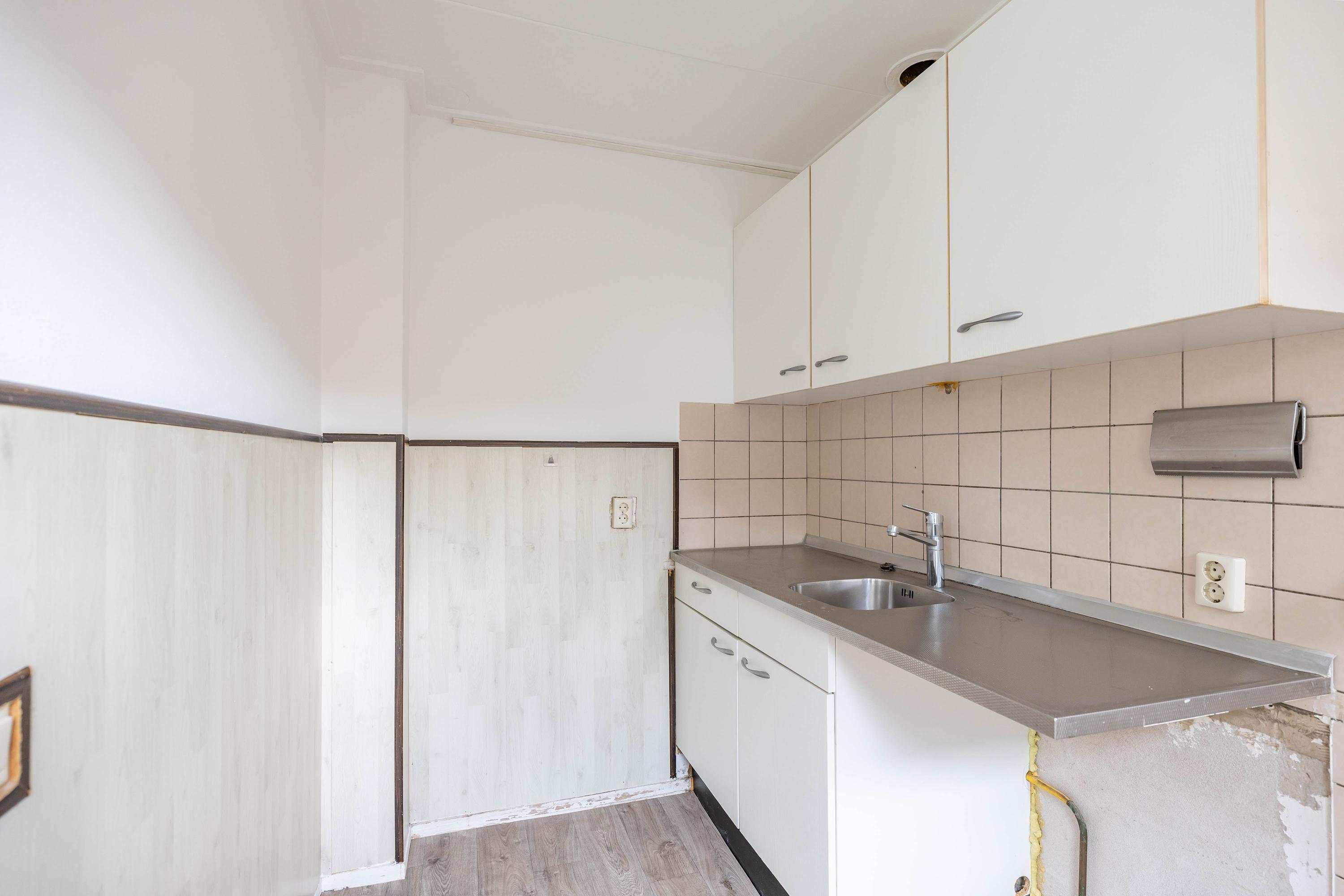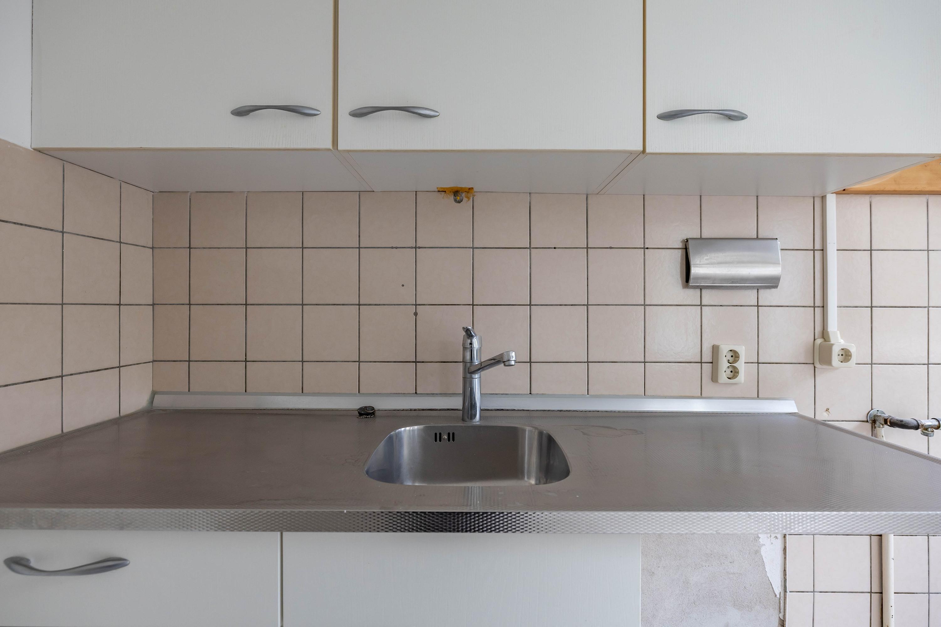De woning is verdeeld over twee woonlagen. De trap bij de voordeur brengt je naar de eerste verdieping waar de lichte woonkamer, nette eenvoudige keuken, apart toilet, badkamer en het balkon (noord/west) zich begeven.
