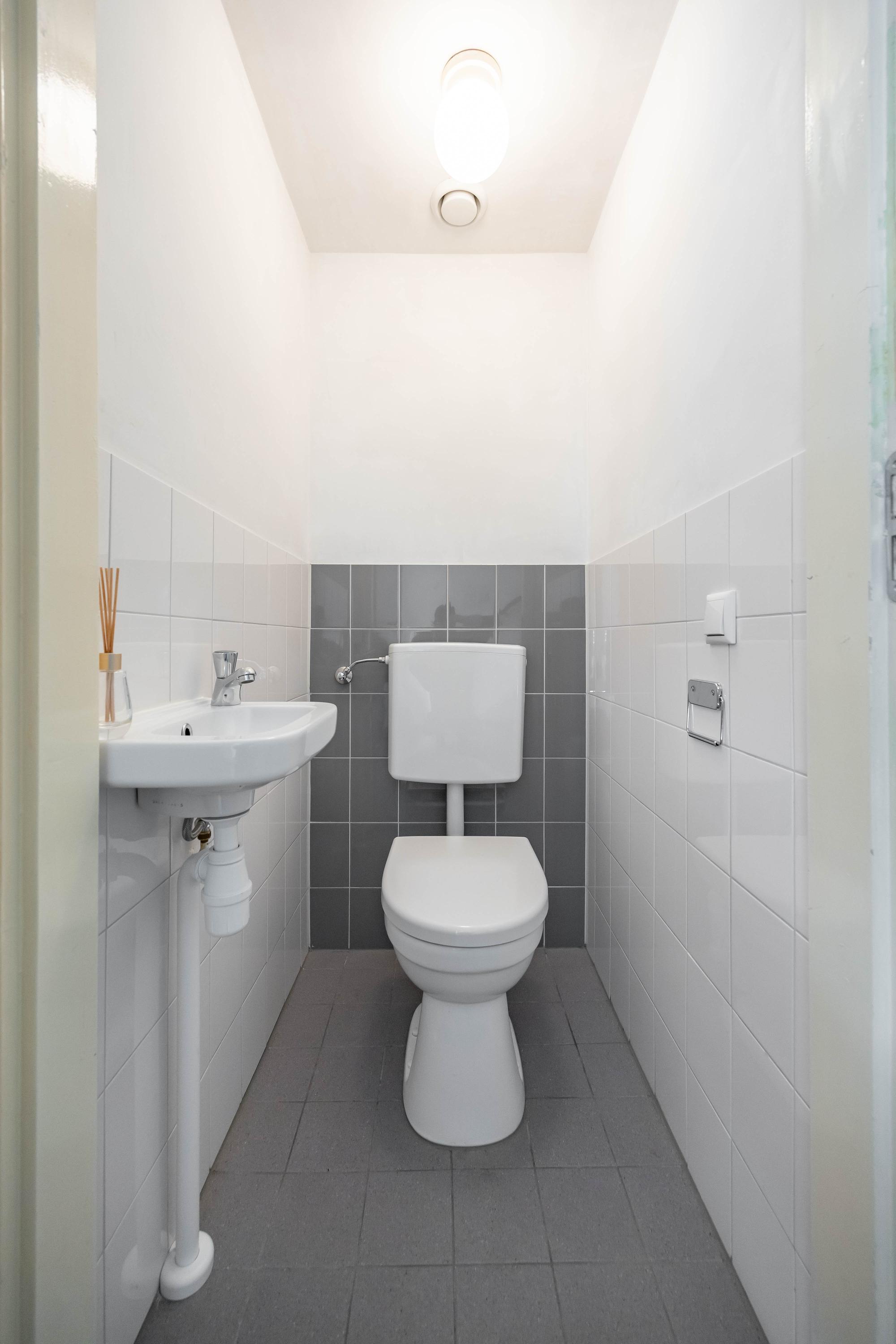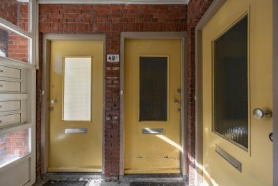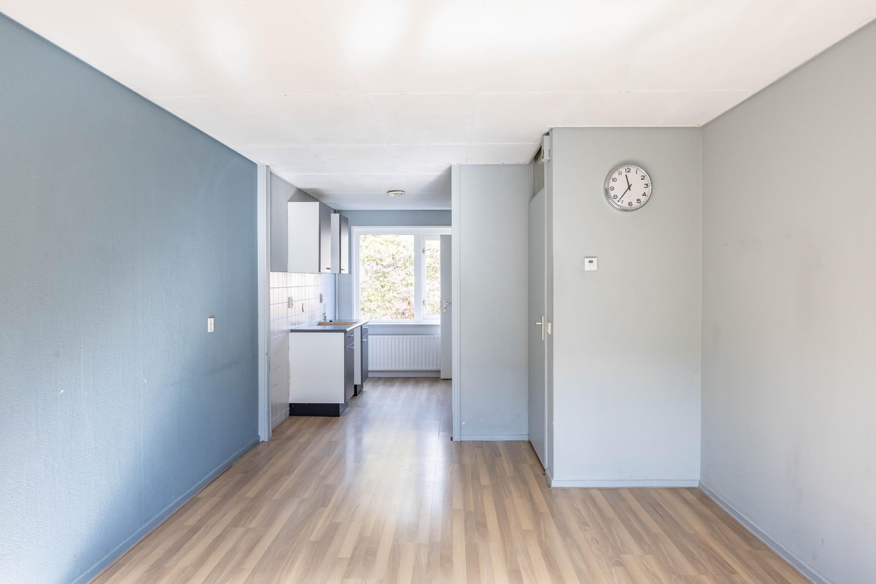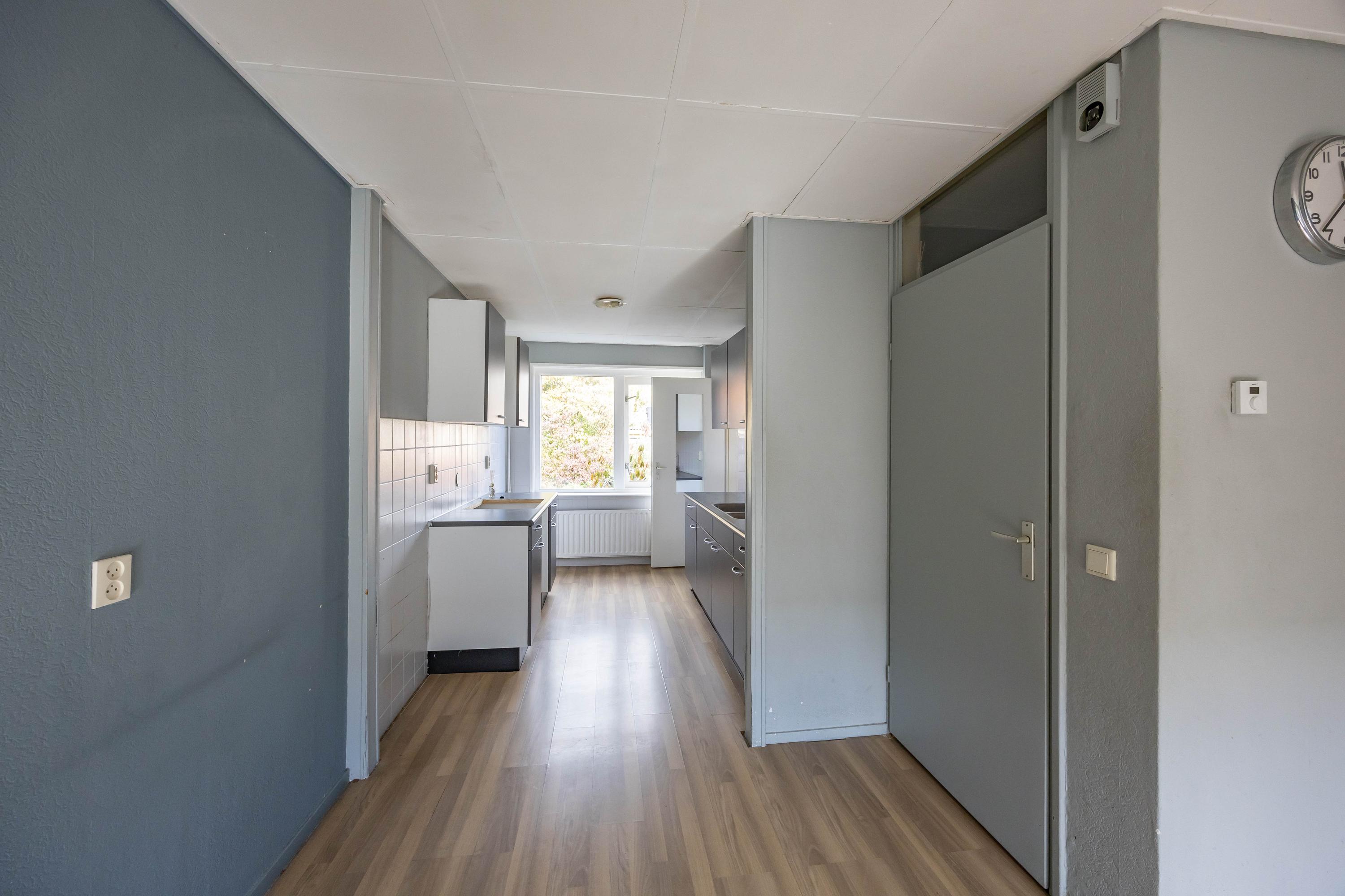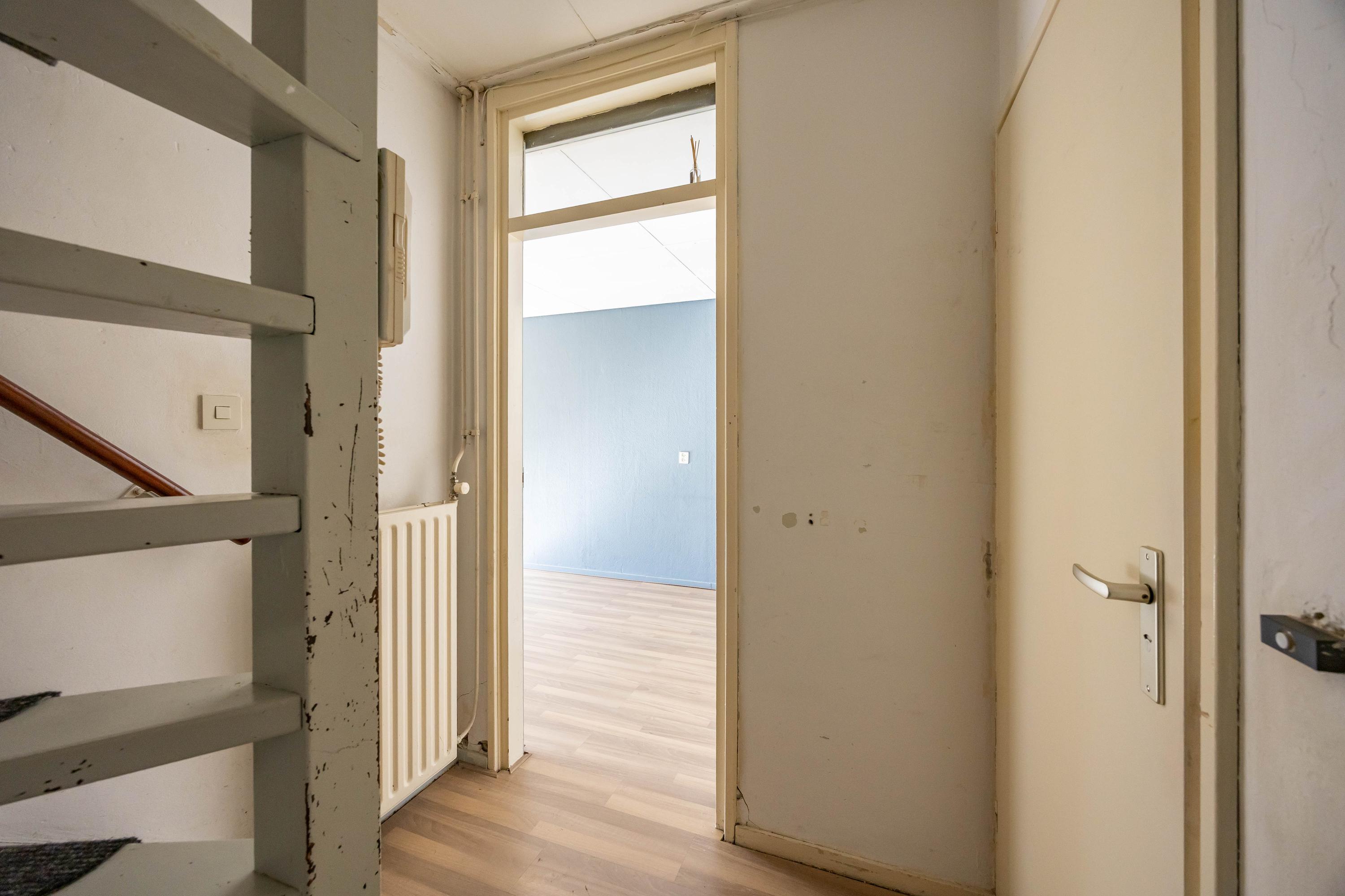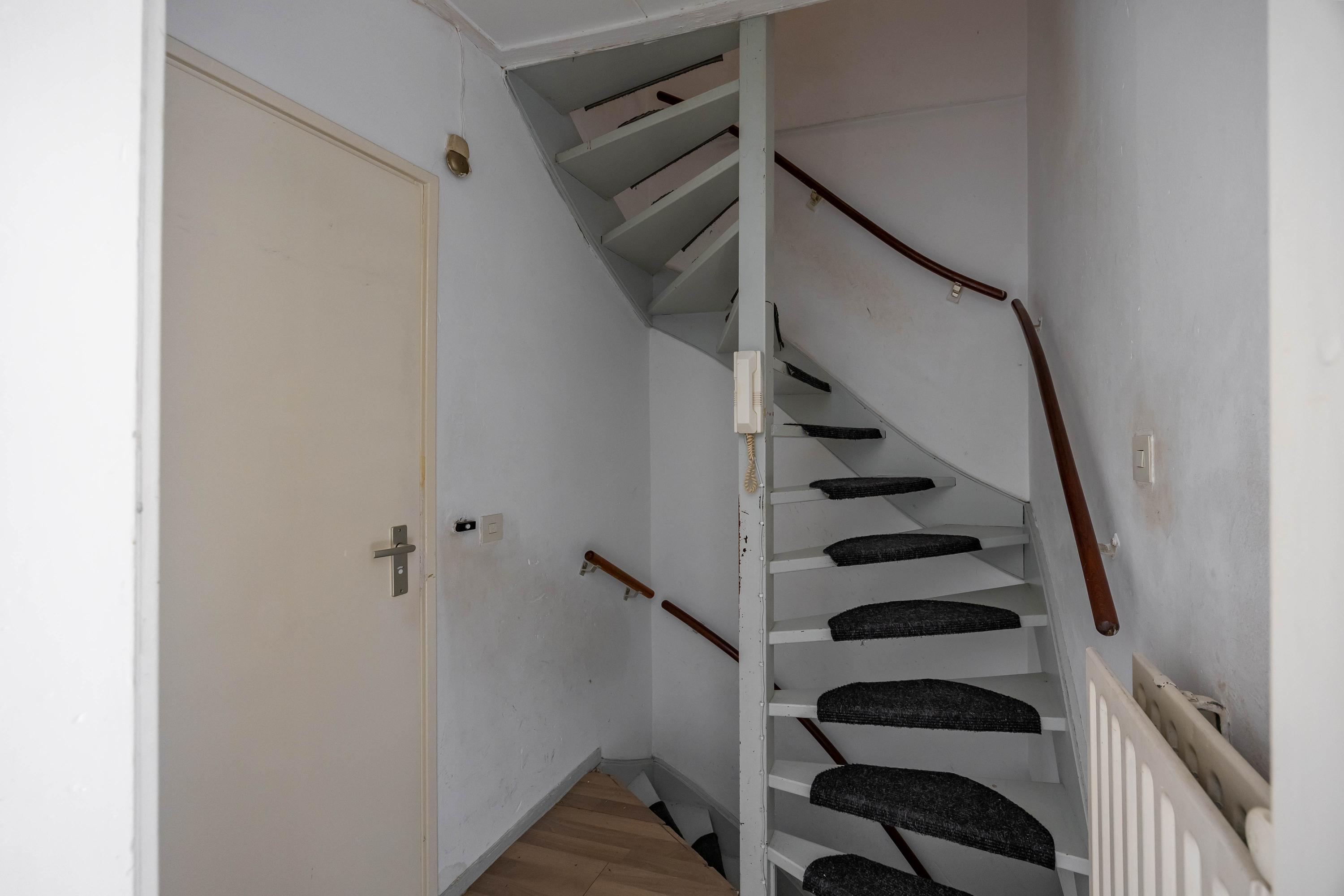 De woning is verdeeld over twee woonlagen. De trap bij de voordeur brengt je naar de eerste verdieping waar de lichte woonkamer, nette eenvoudige keuken, apart toilet, badkamer en het balkon (noord/west) zich begeven.