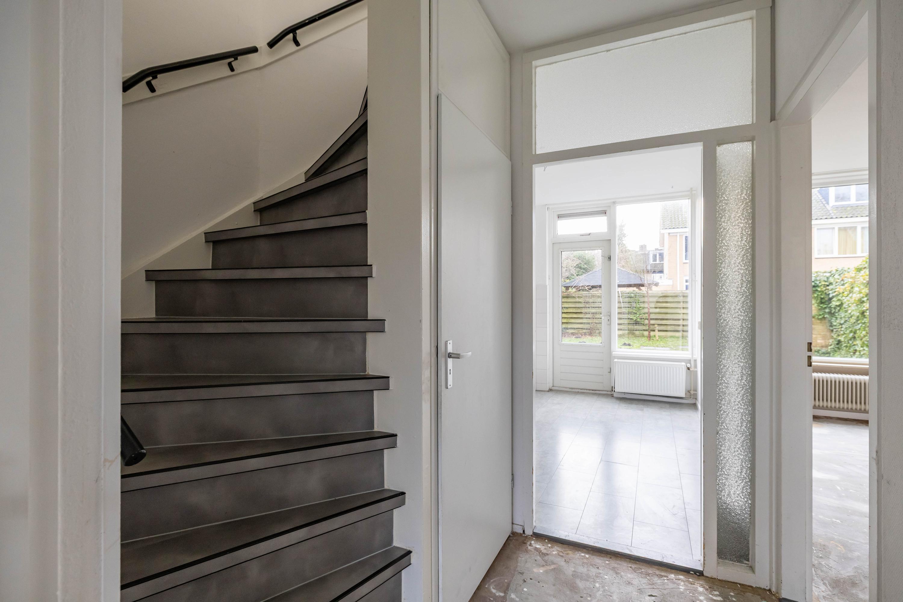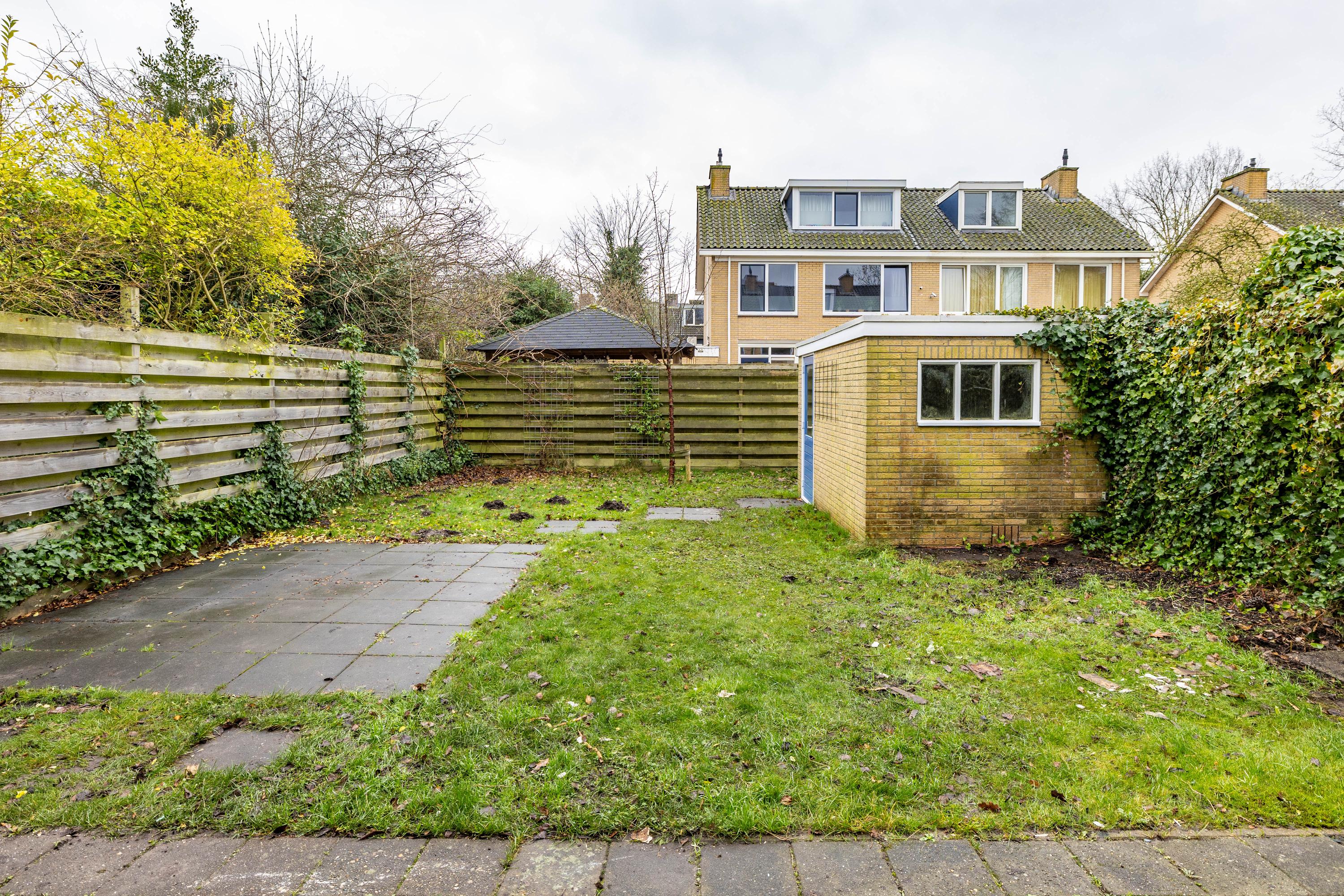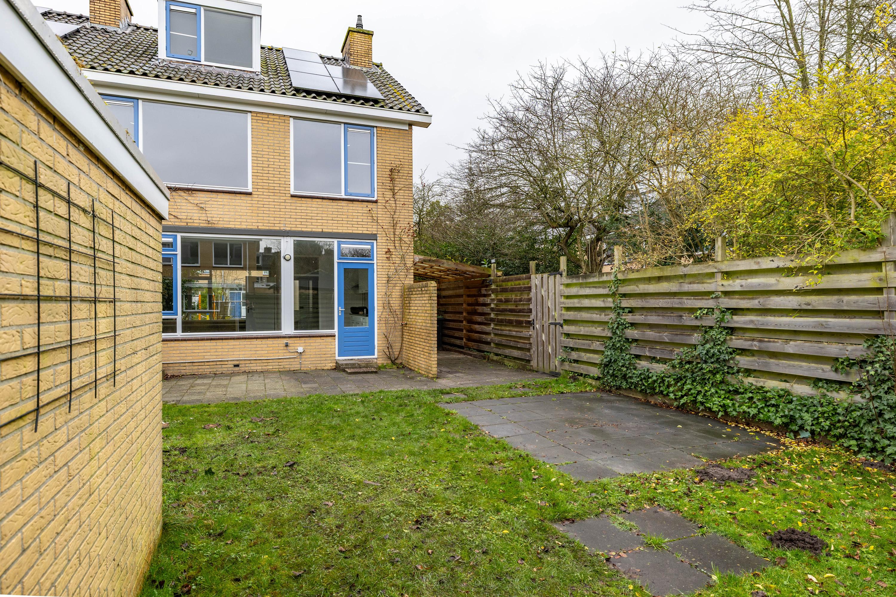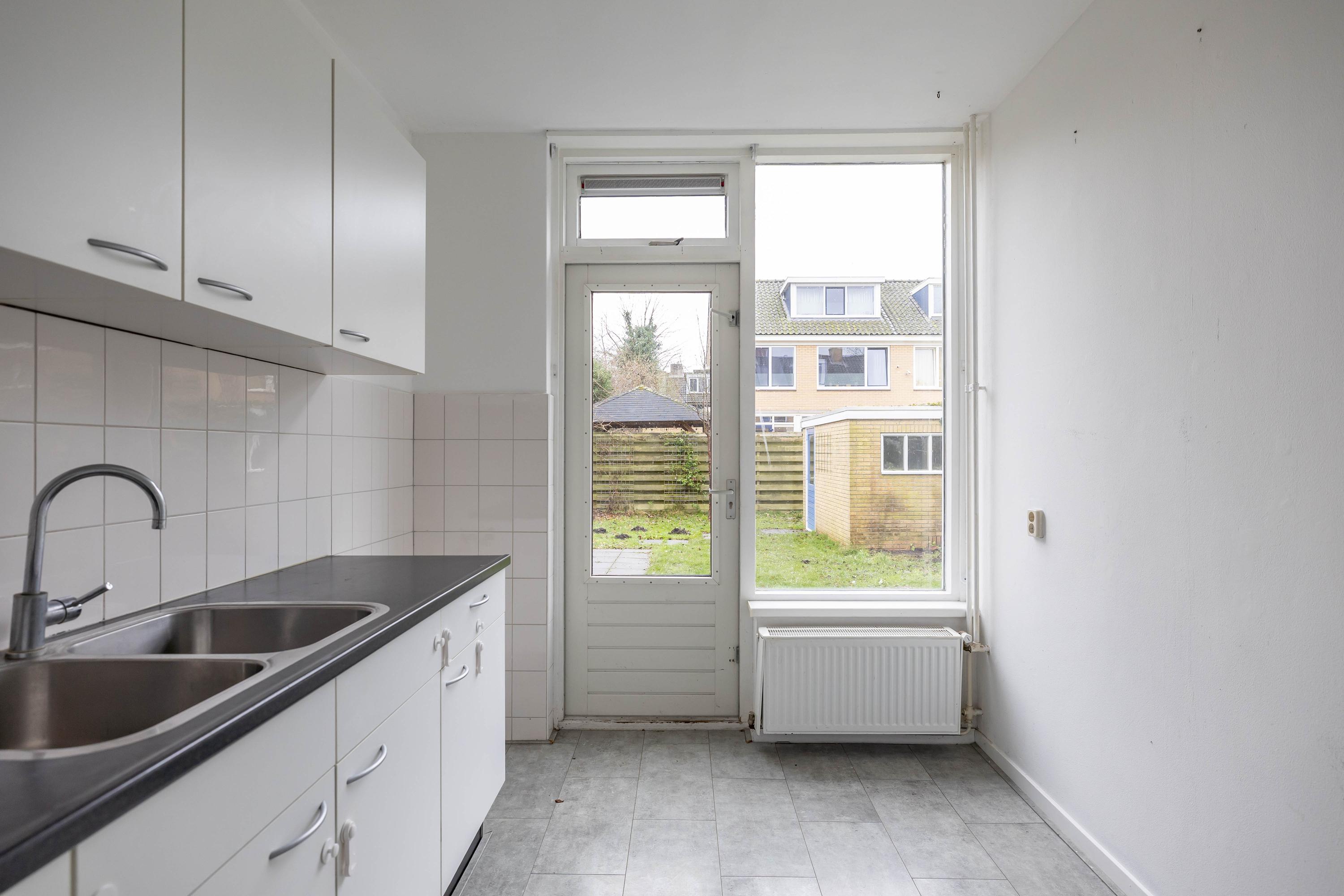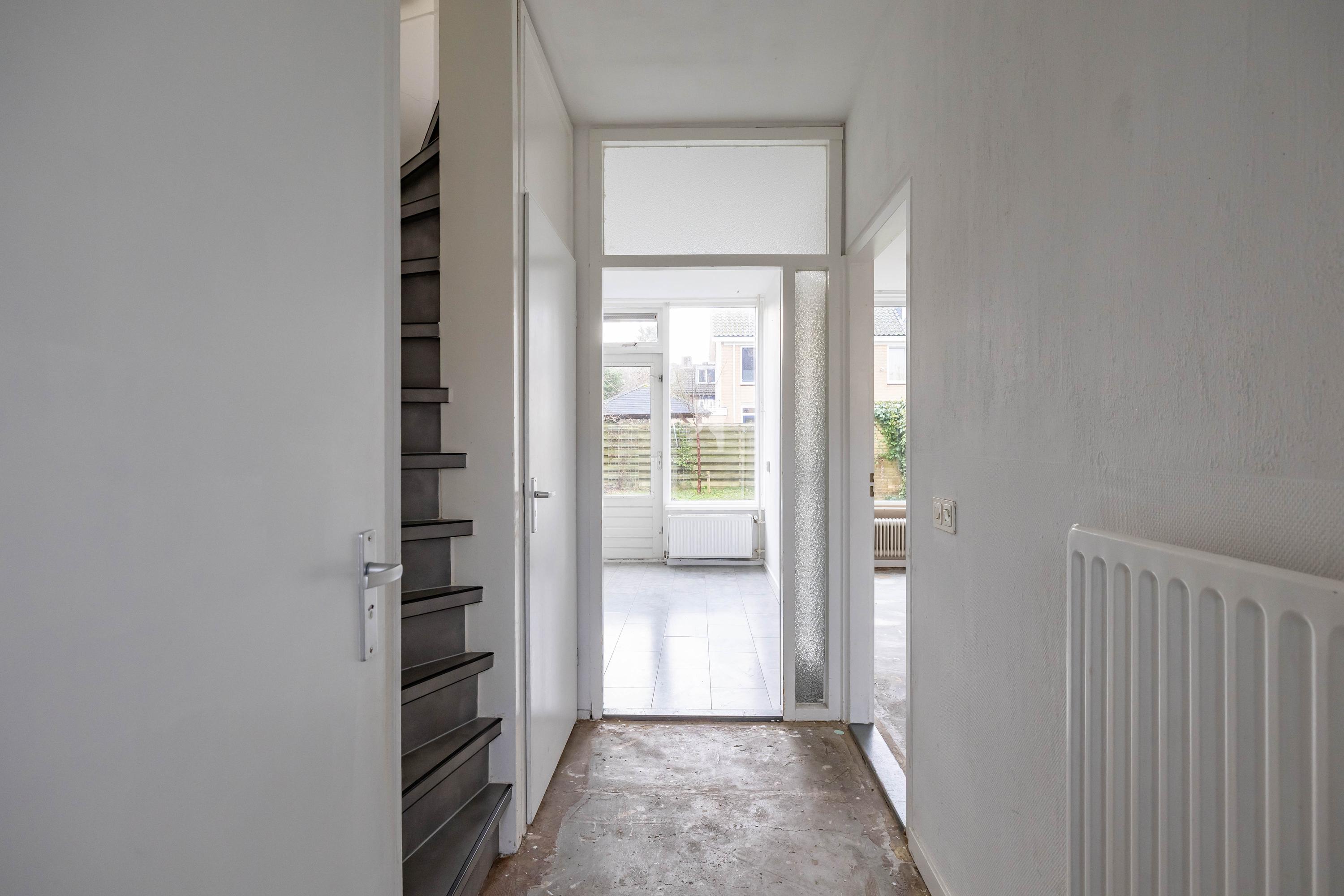 Via de entree kom je binnen in de hal, waar direct de prettige maatvoering van de woning opvalt. De woonkamer is ruim en licht en biedt volop mogelijkheden voor een gezellige zithoek en een royale eettafel. De gesloten, keuken is eenvoudig maar praktisch en geeft toegang tot de diepe tuin op het zuiden. Hier geniet je de hele dag van de zon. Achterin de tuin bevindt zich een handige berging voor fietsen en tuinspullen.