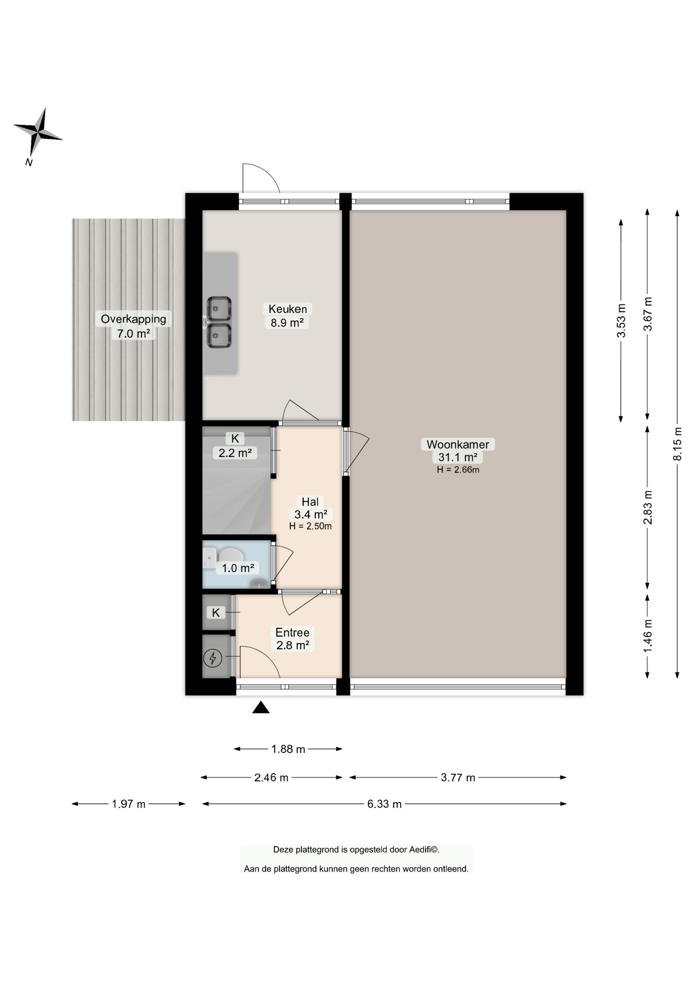 Woonkameroppervlakte: 31m2