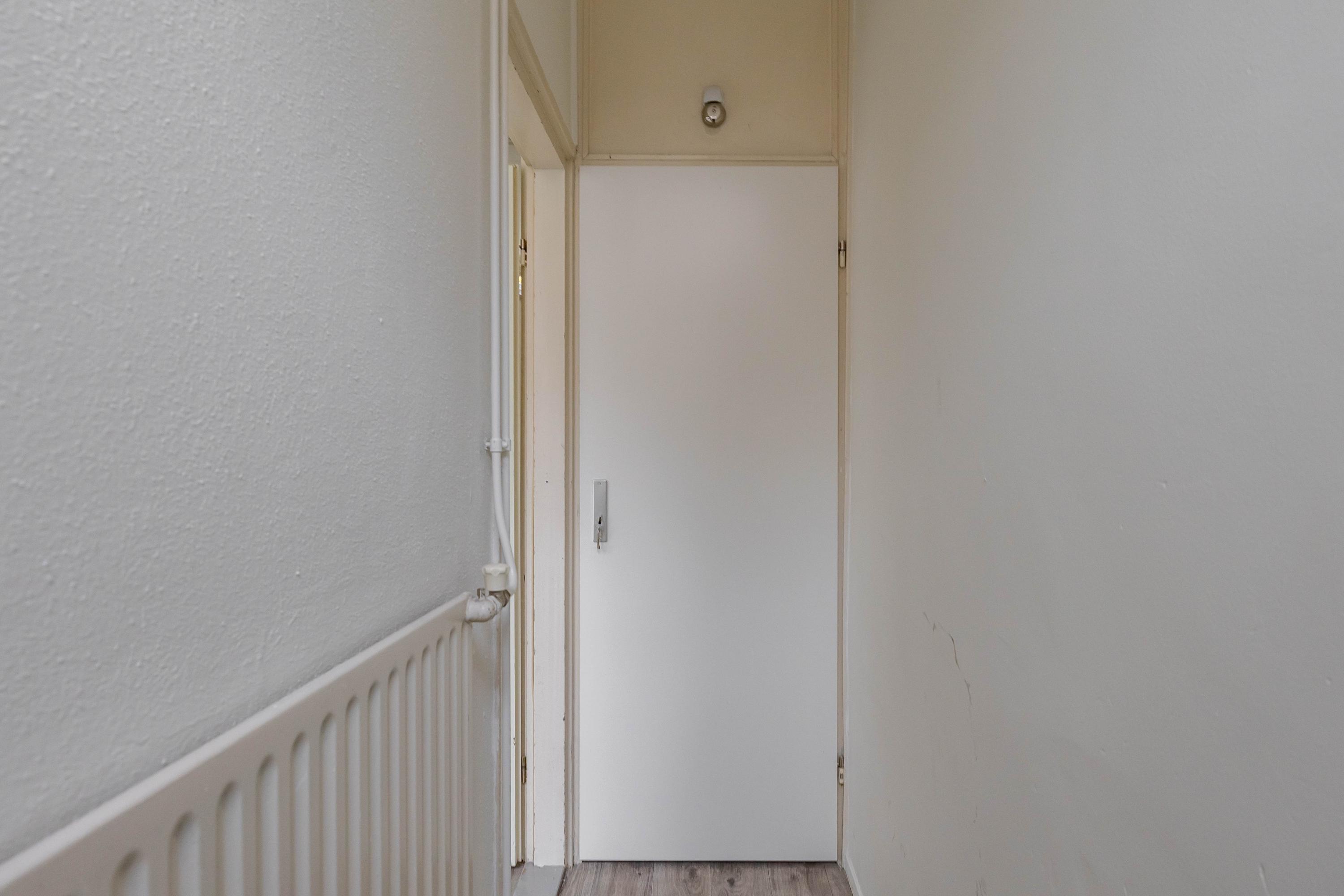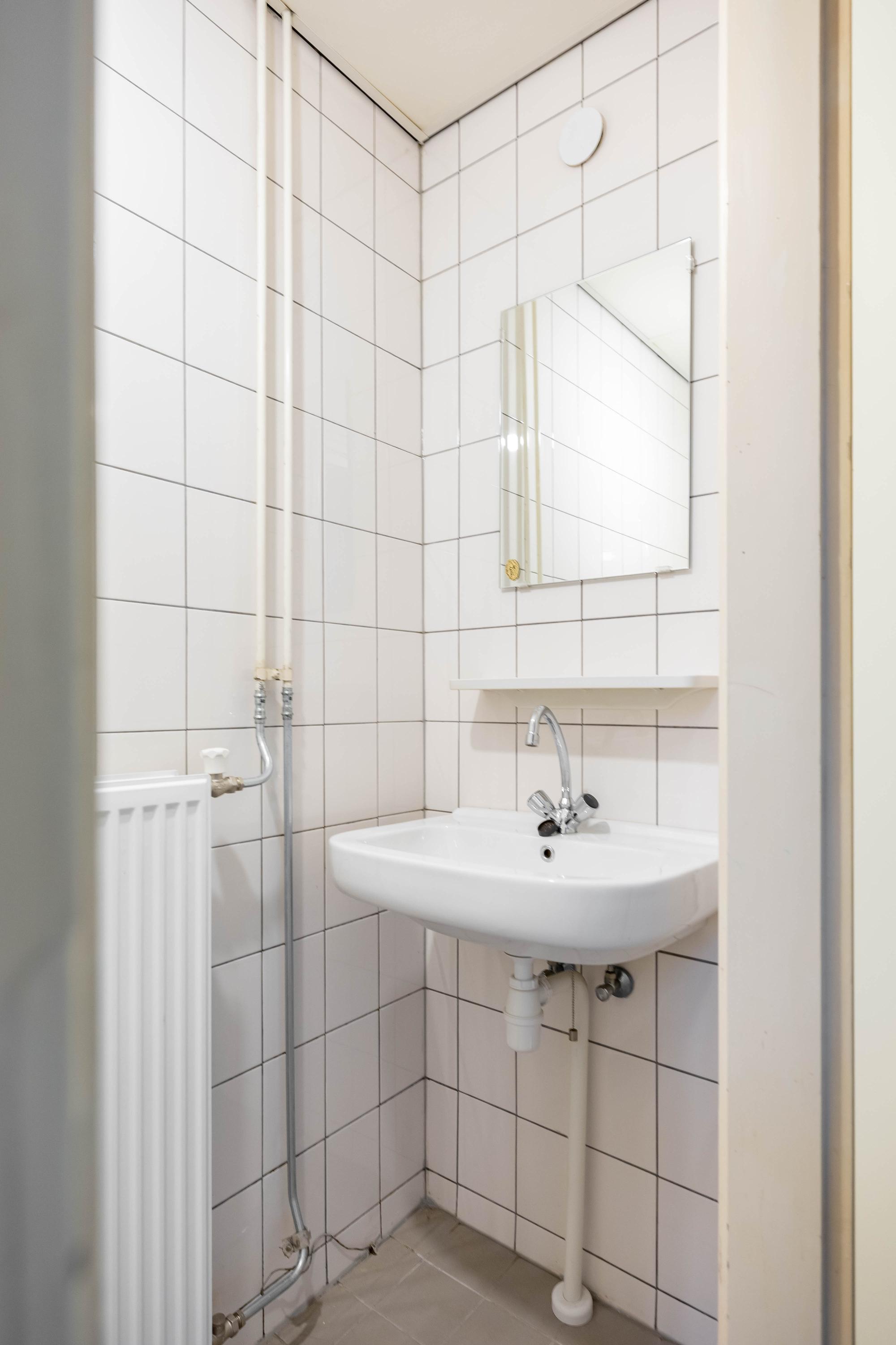 Bij binnenkomst stap je de hal in, die toegang geeft tot de lichte woonkamer. De woonkamer is praktisch ingedeeld, biedt voldoende ruimte voor een comfortabele zit- en eethoek en staat in verbinding met een tweede hal waar het toilet is gesitueerd. Vanuit de woonkamer bereik je bovendien de slaapkamer, die dankzij de ligging aan de tuinzijde een rustige plek is om je terug te trekken. De slaapkamer beschikt over een handige inbouwkast en heeft direct toegang tot de badkamer, uitgerust met een douche en een wastafel.