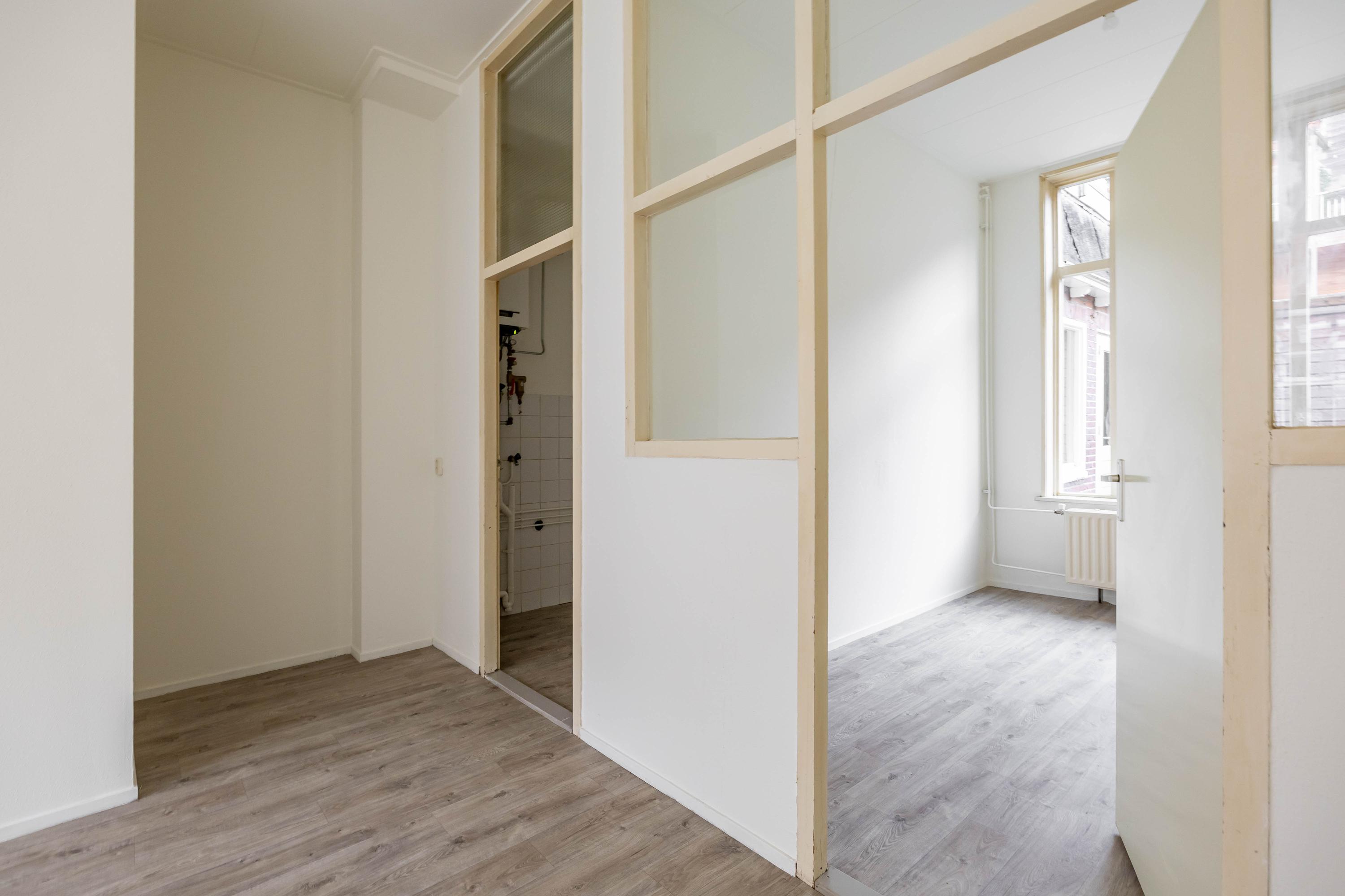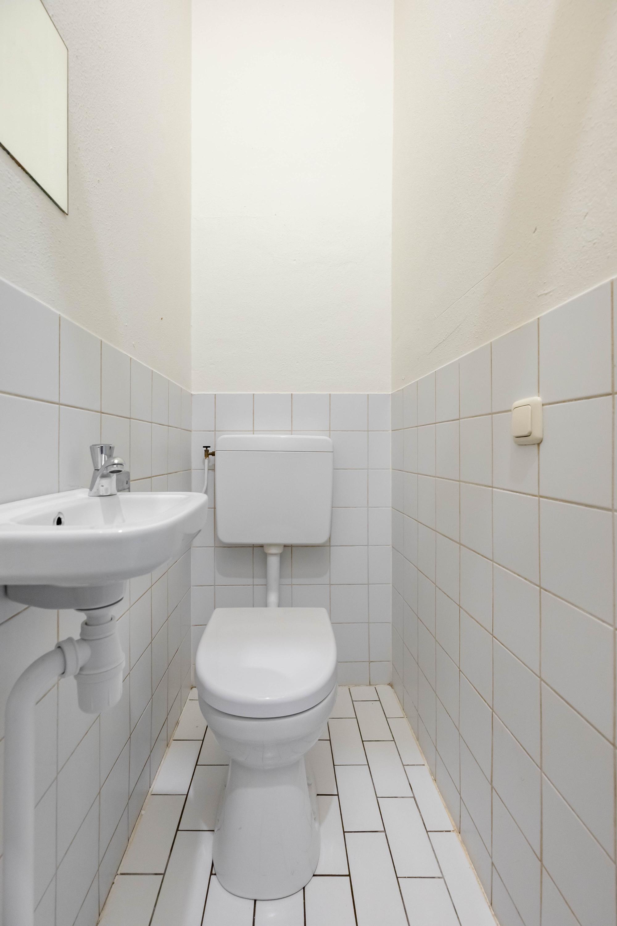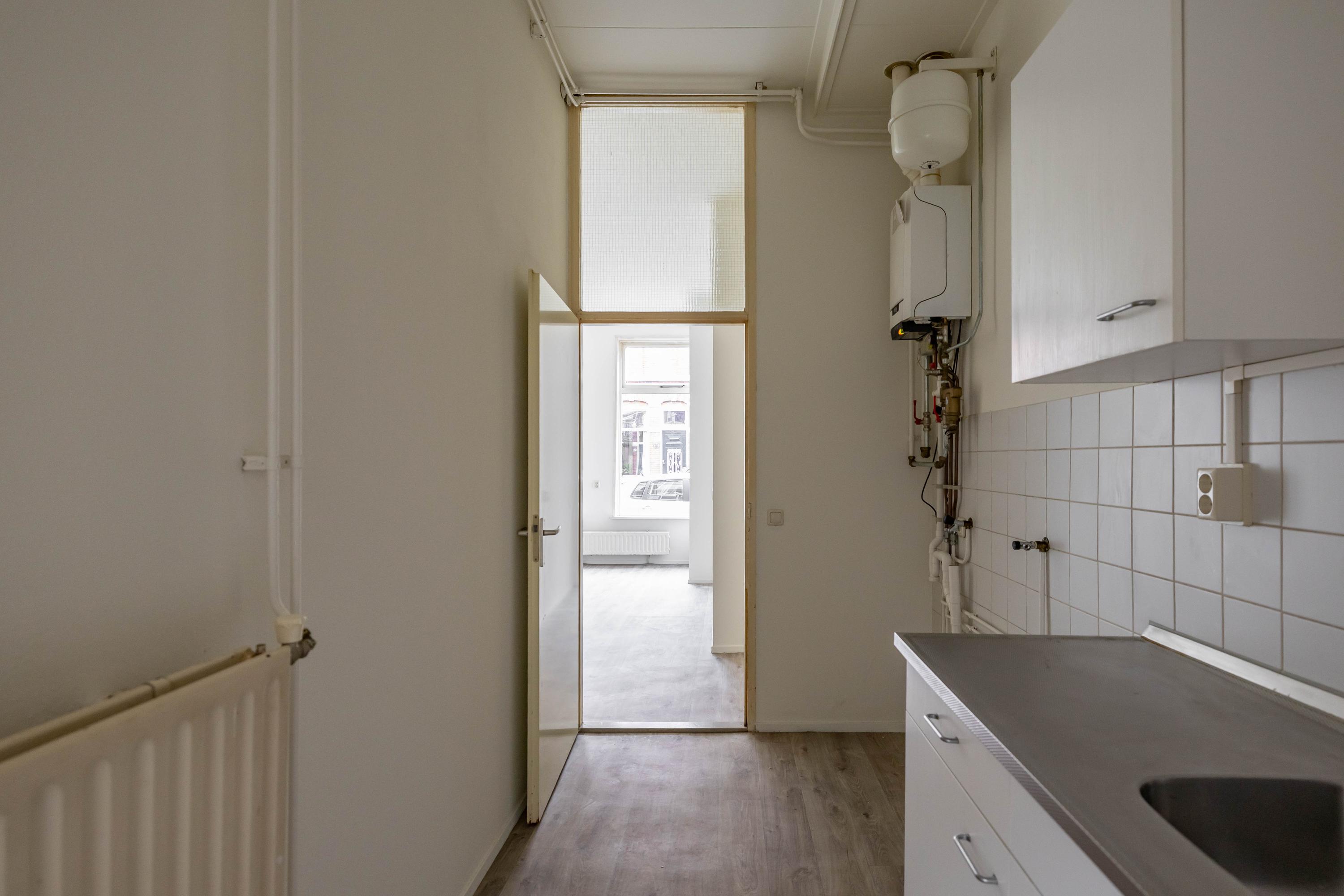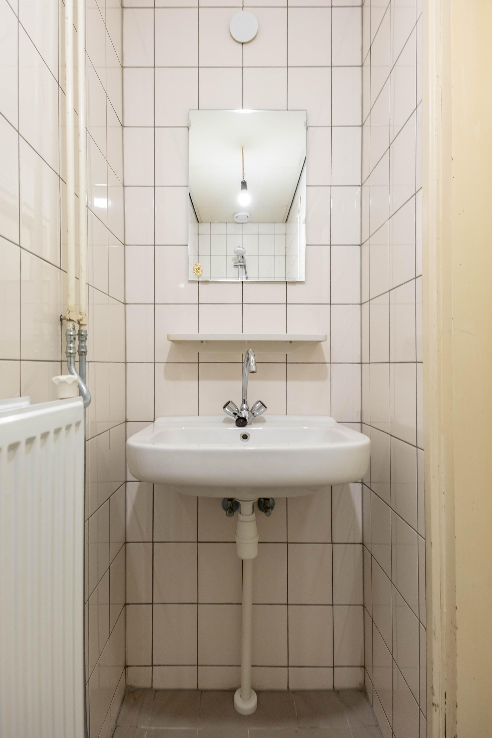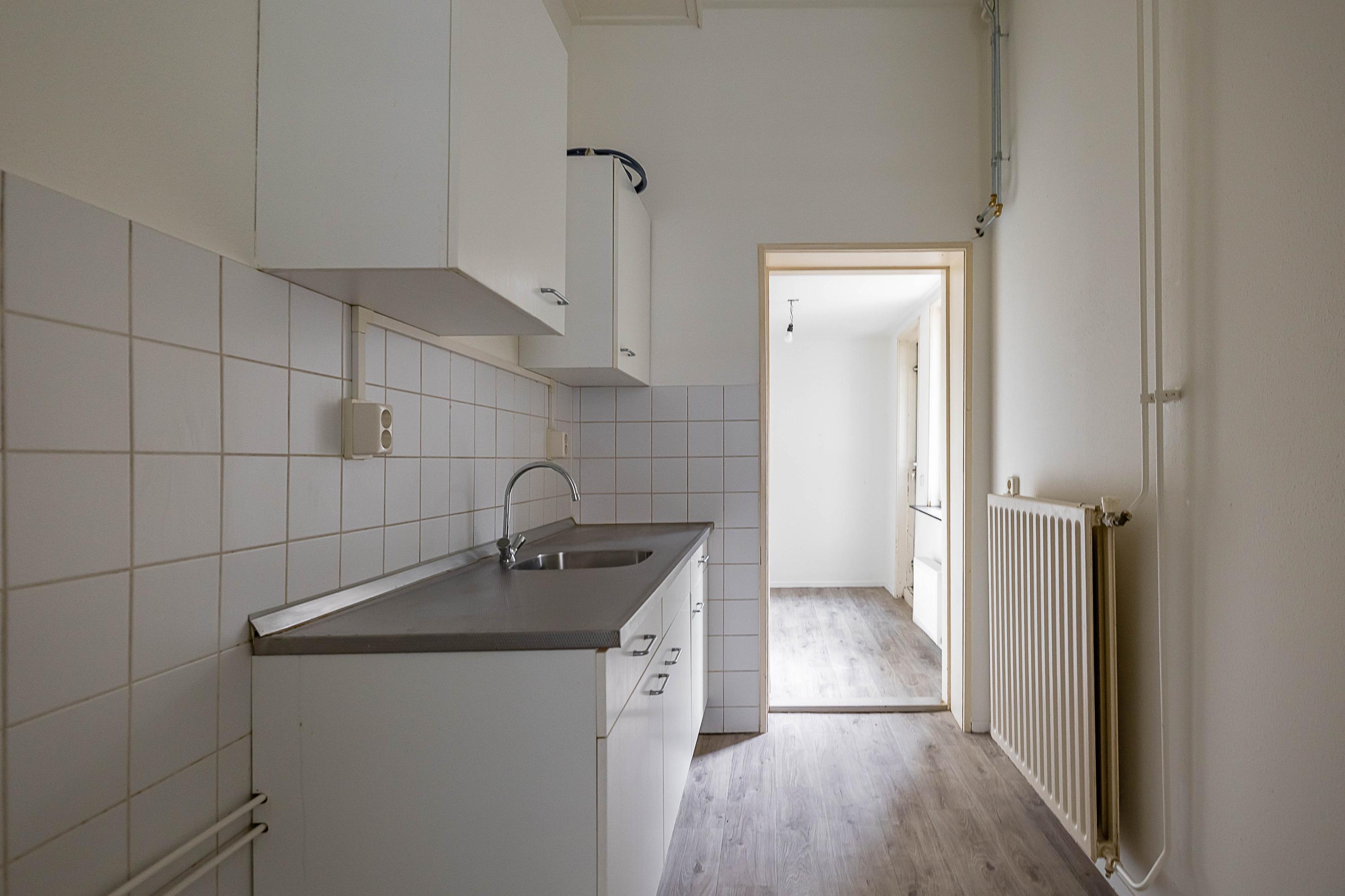 De eenvoudige keuken is eveneens via de woonkamer te bereiken. Achter de keuken bevindt zich de tweede slaapkamer die ook anders in te delen is, bijvoorbeeld een praktische ruimte voor extra opslag of witgoed, vanwaar je toegang hebt tot de gezellige stadstuin. Dankzij de achterom is deze tuin niet alleen een fijne plek om buiten te zitten, maar ook bijzonder praktisch in gebruik.
