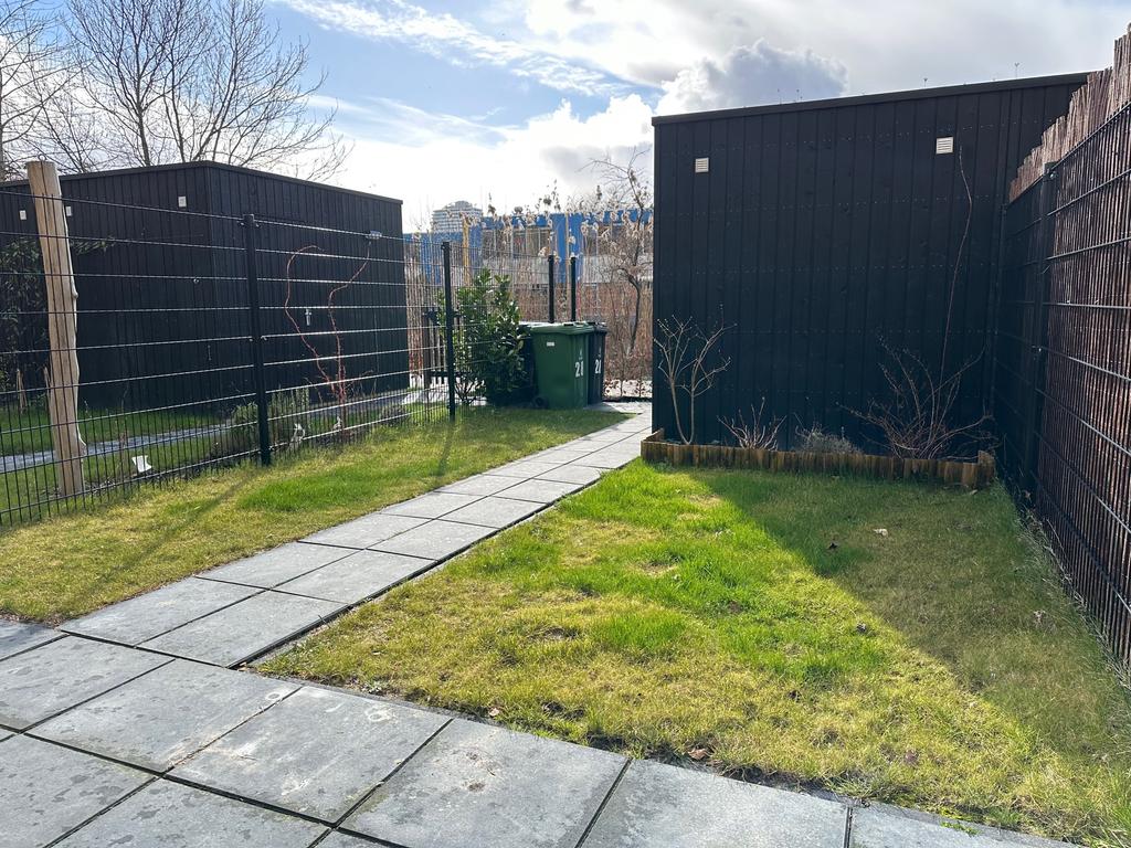Entrance to a hallway with a modern toilet room. Garden-facing living room with French doors leading to the approximately 11-metre deep and sunny south/west-facing garden. Modern open kitchen equipped with all conveniences including a composite worktop, dishwasher, induction hob, refrigerator, freezer and a combination oven. Total surface area of the living room and kitchen is approximately 32 m².