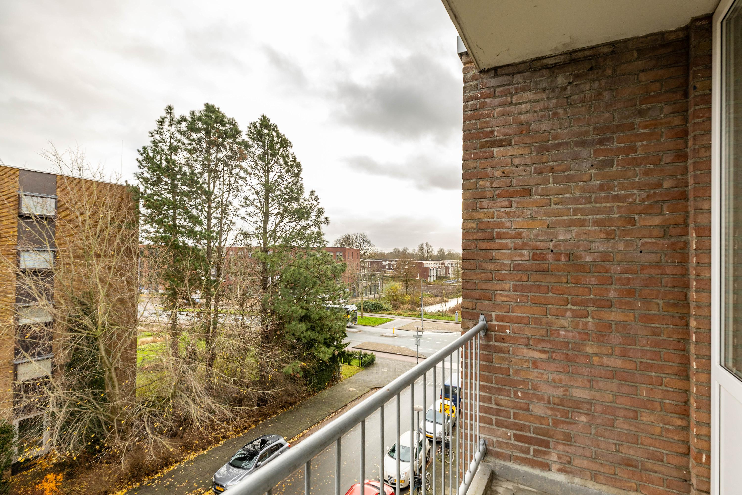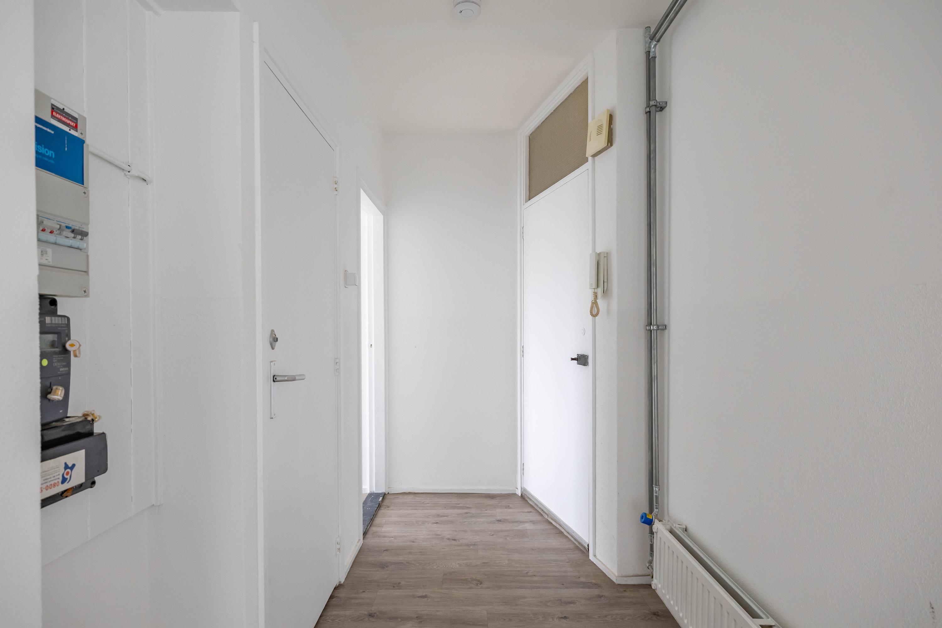 Indeling: via de centrale entree naar de woonlaag, hal, twee slaapkamers, nette badkamer, berging, lichte woonkamer met verbinding naar de keuken. Balkon aan zowel de voor- als achterzijde.