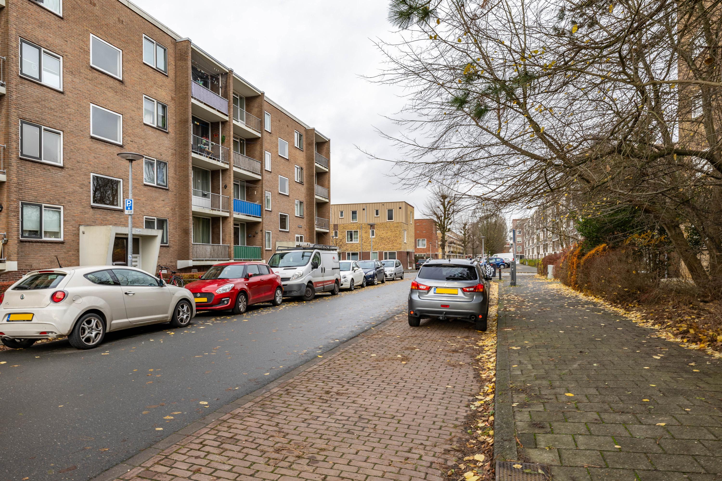 Hoewel de Van Ketwich Verschuurlaan een doorgaande weg is, ervaar je daar in het complex nauwelijks iets van door de slimme, haakse plaatsing van het gebouw. Zo geniet je wel van de bereikbaarheid, maar niet van de drukte. De directe omgeving bestaat uit rustige, groene straten met een mix van appartementen en gezinswoningen—een prettige woonomgeving voor diverse doelgroepen.