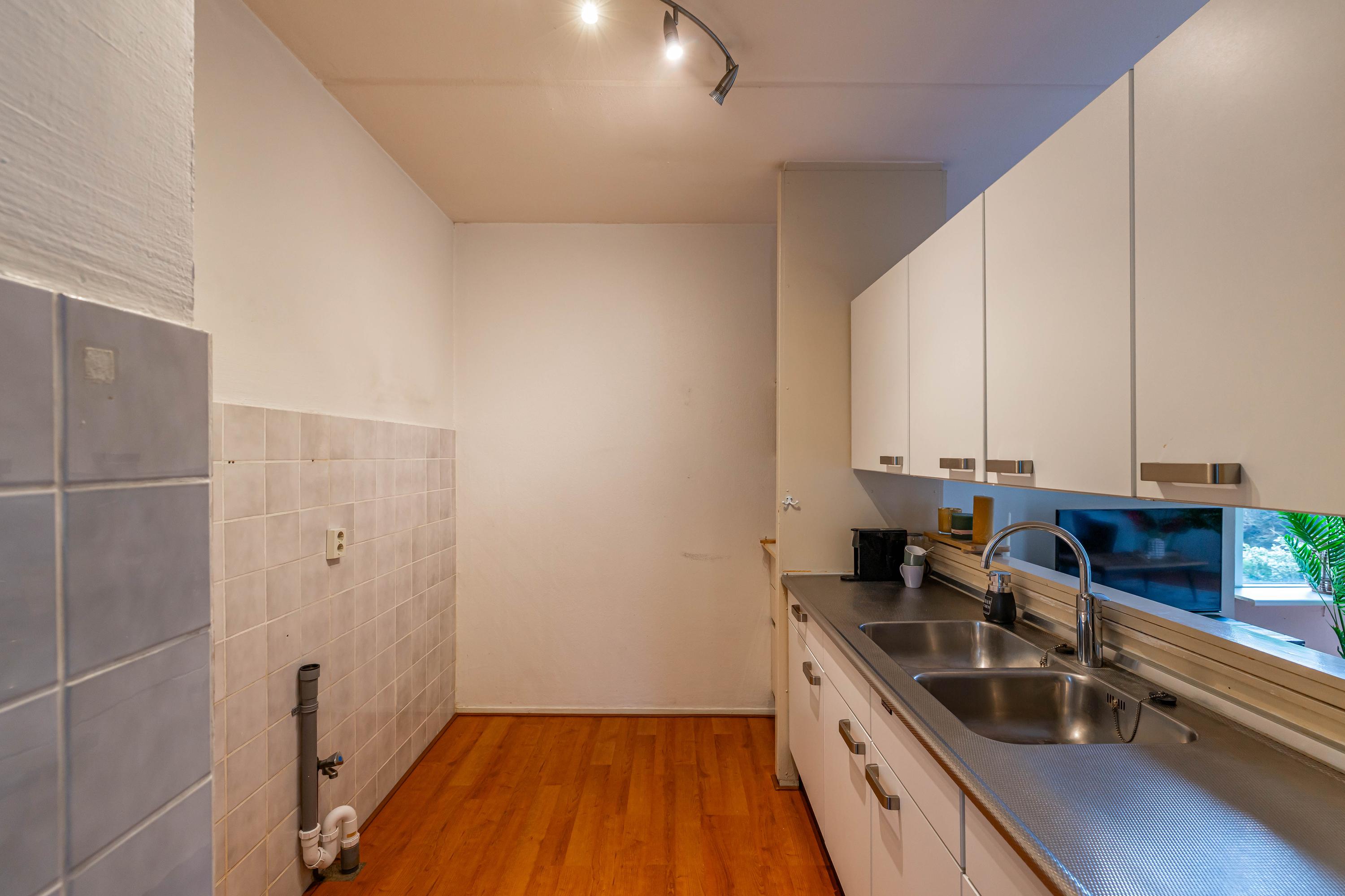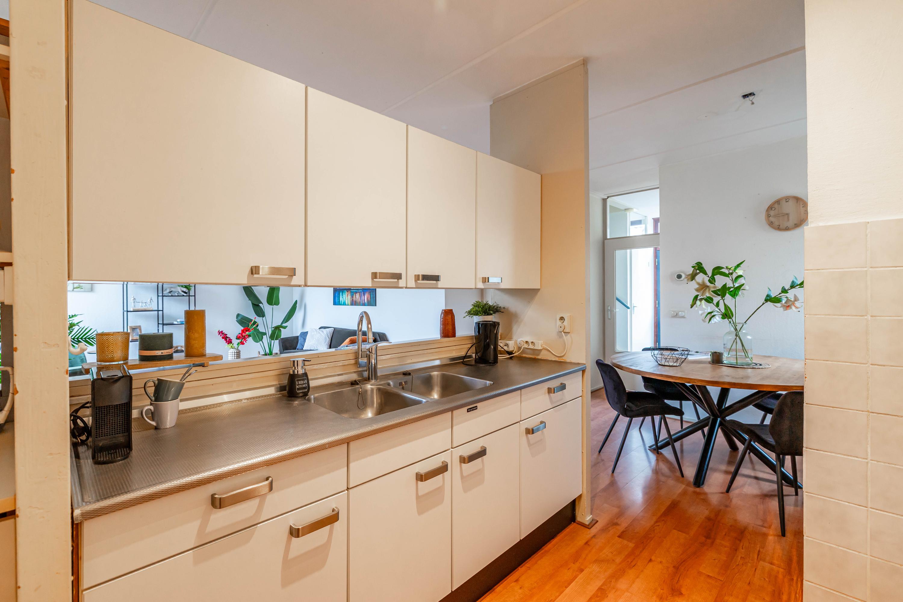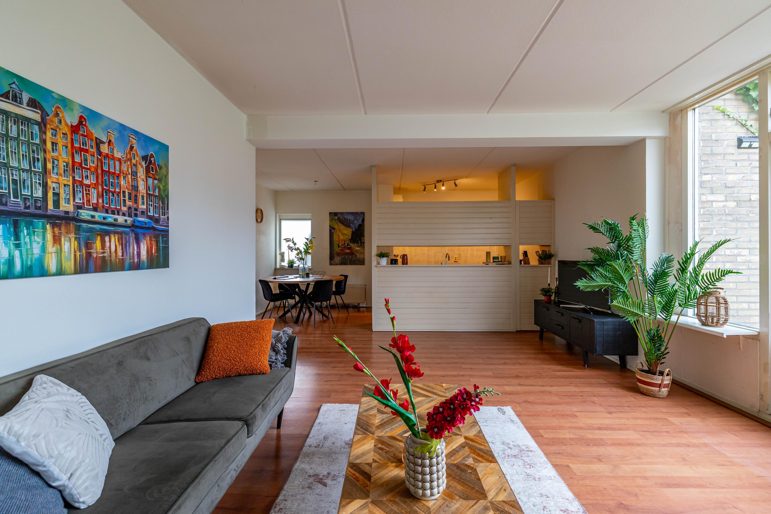 Via de entree komt u in de hal met toiletruimte en toegang tot de inpandige bijkeuken/berging. De lichte, tuingerichte woonkamer met halfopen keuken heeft een totale oppervlakte van circa 38 m². De keuken is functioneel maar gedateerd. Vanuit de woonkamer is er toegang tot de zonnige achtertuin op het westen, circa 11 meter diep en fraai gelegen aan het water.